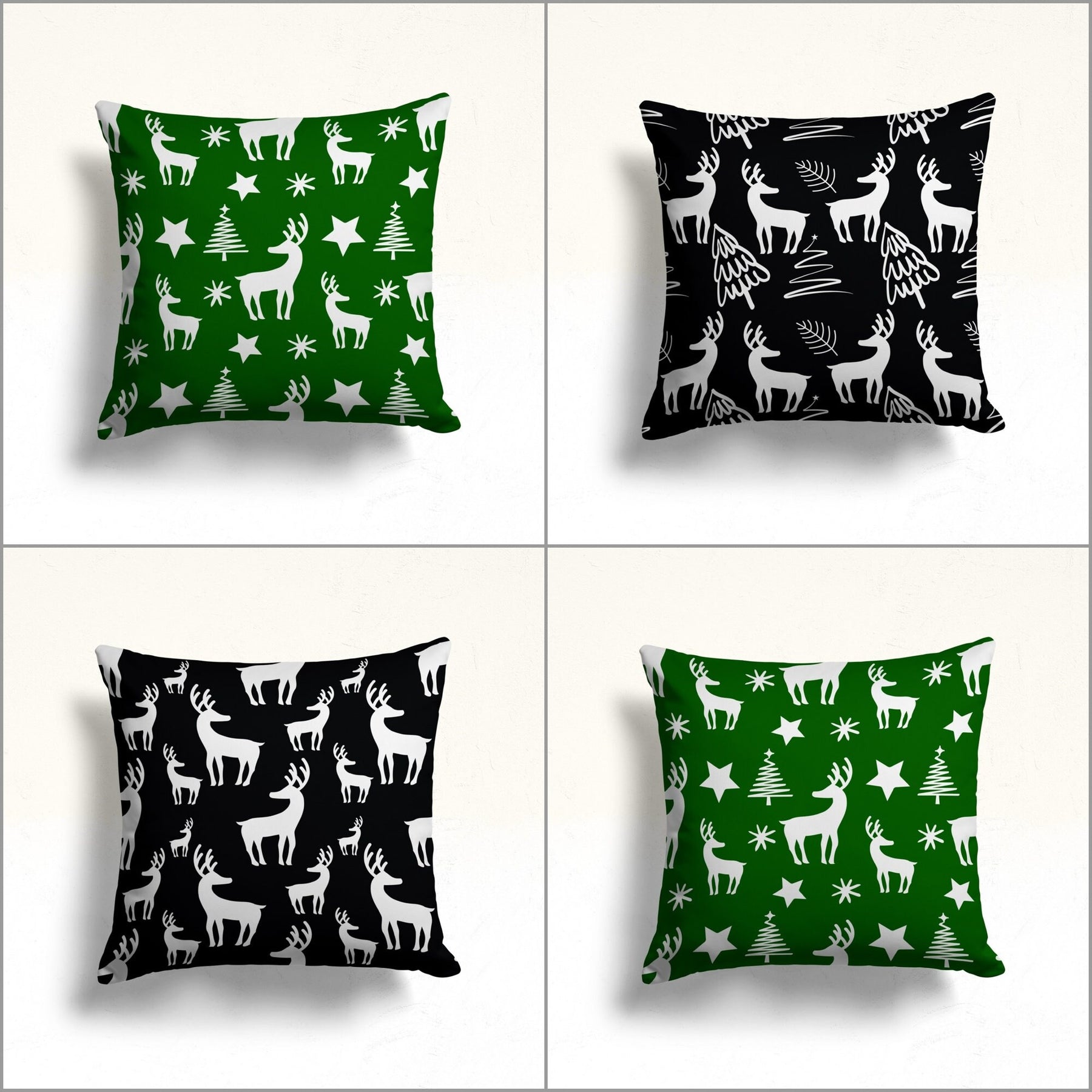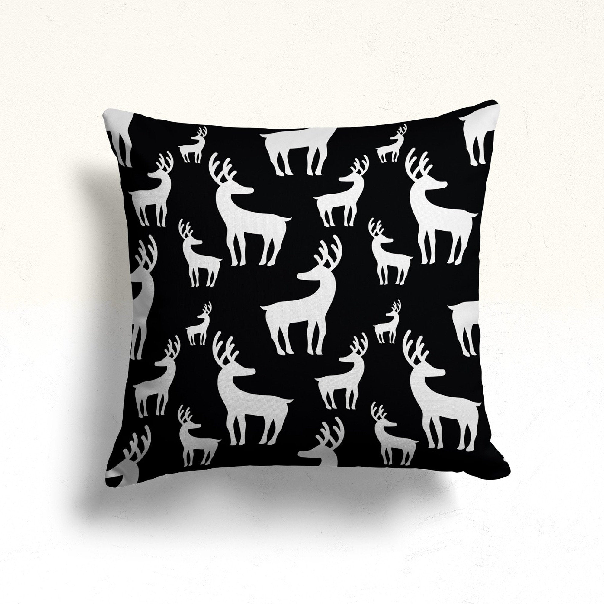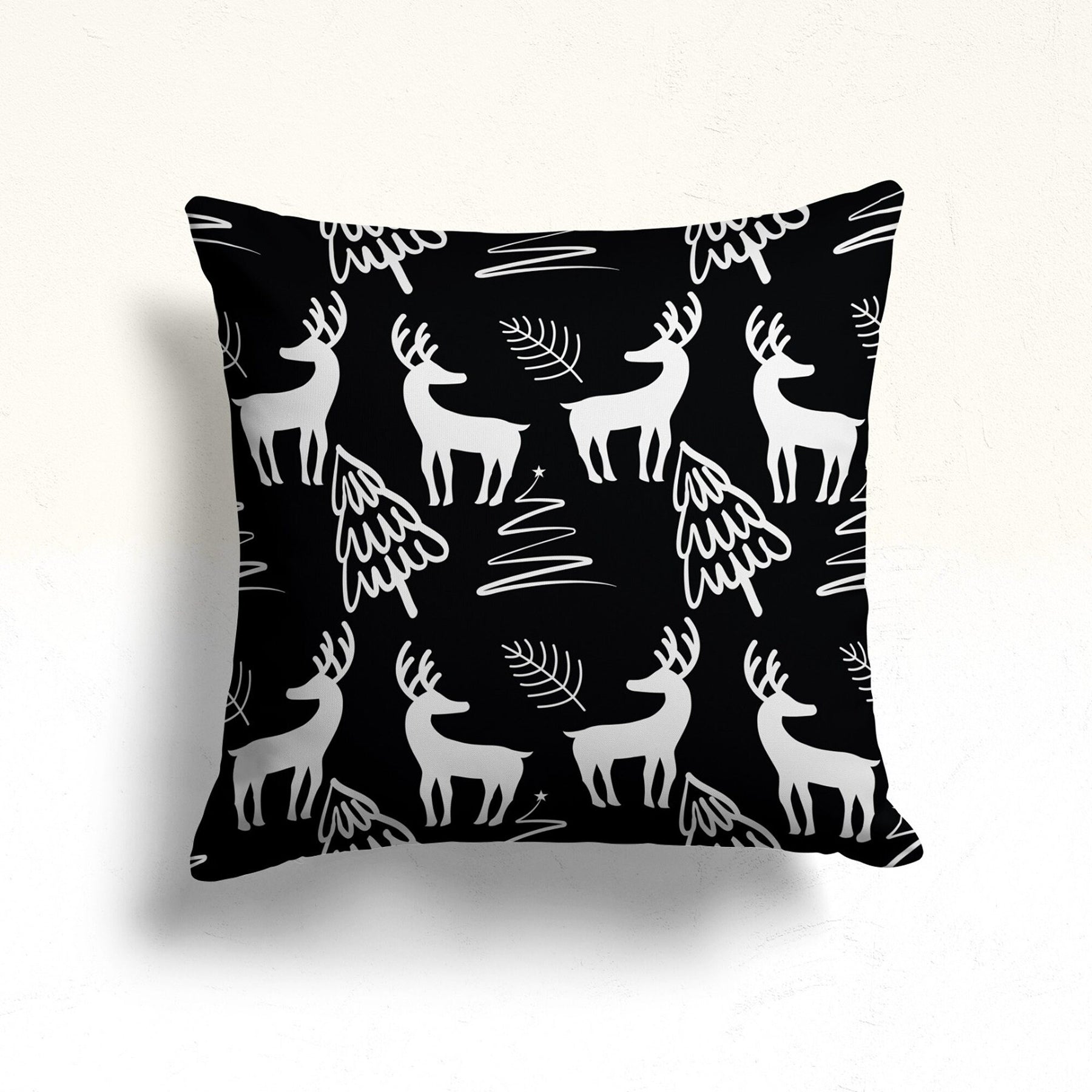These elegant square decorative throw pillow covers with Christmas theme, pine tree, winter style, deer print;