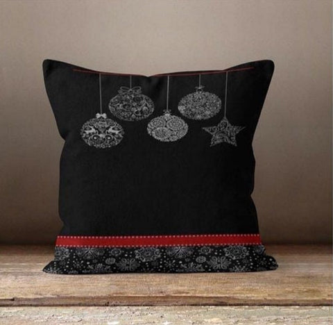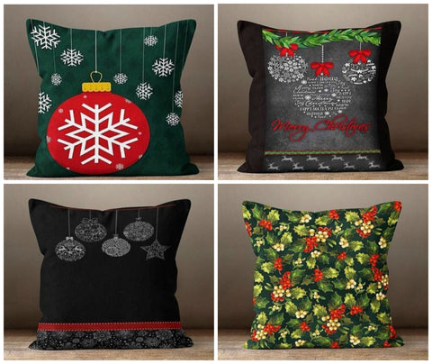 Christmas Pillow Cover|Black Christmas Decor|Decorative Winter Pillows Case|Floral Snowflake Xmas Throw Pillow|Xmas Gift|Outdoor Pillow Case