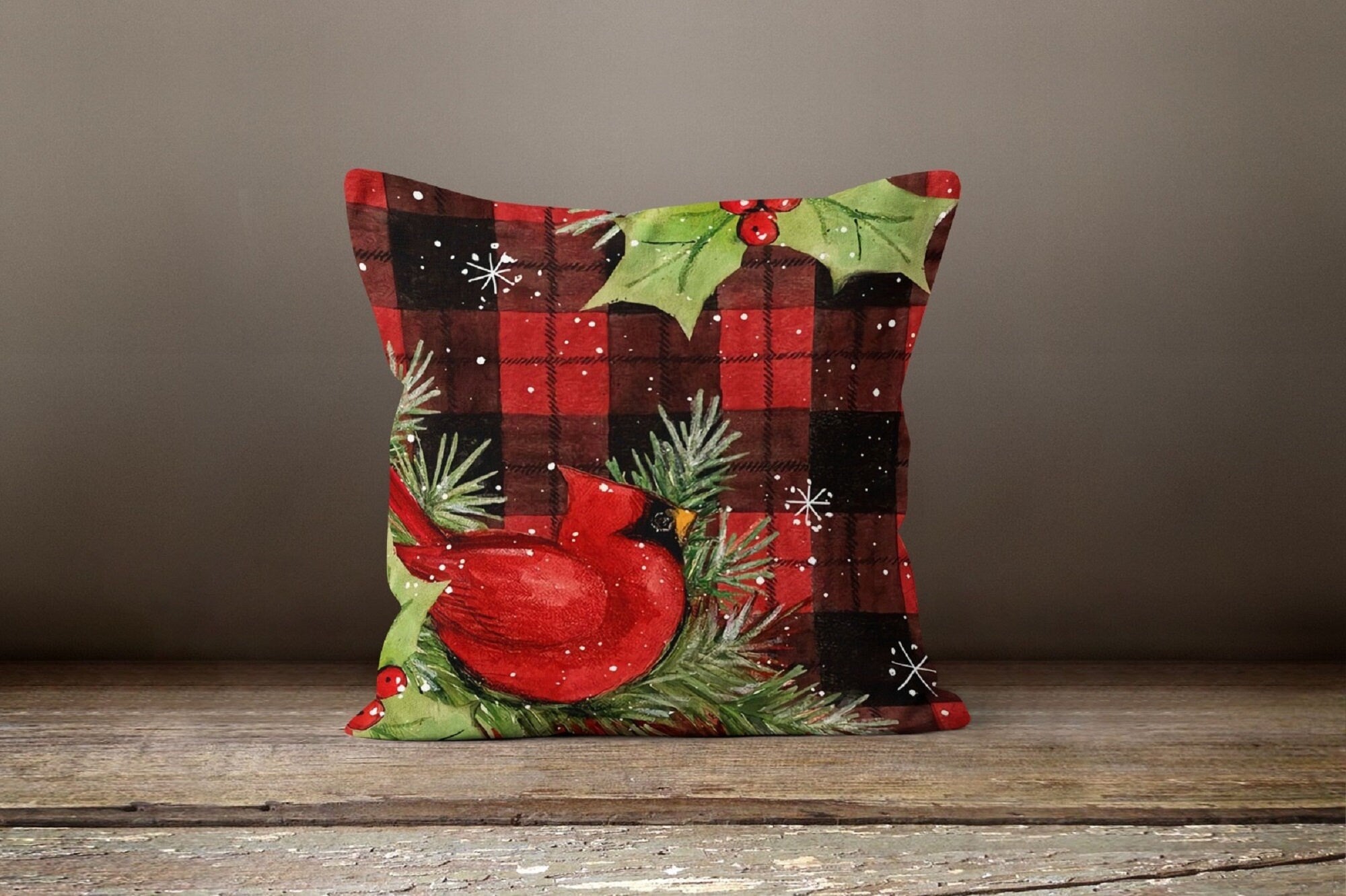 Red Cardinal Bird on Buffalo Plaid Pillow Cover