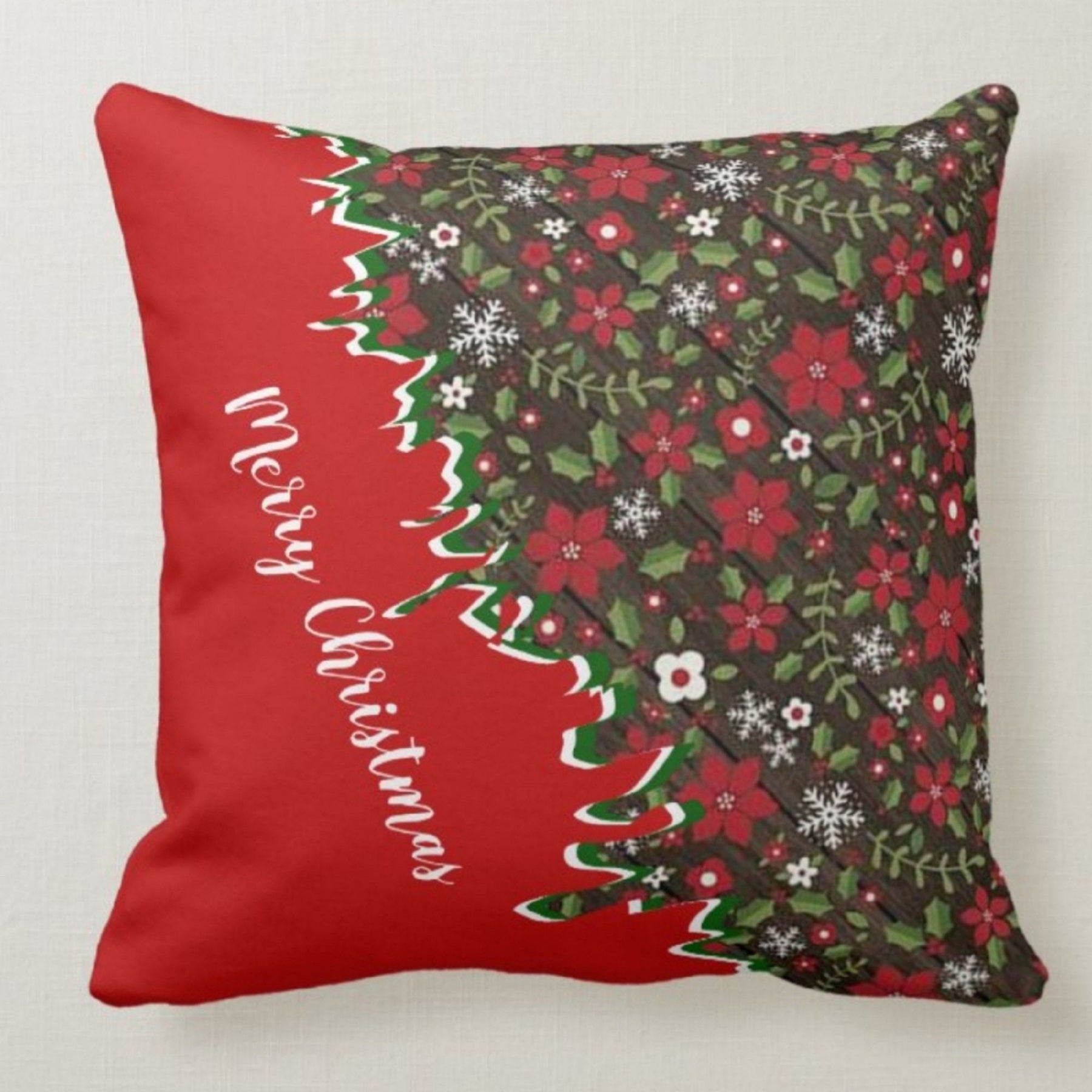 These elegant plaid pattern square decorative rustic farmhouse throw cushion covers with Xmas socks and flowers;