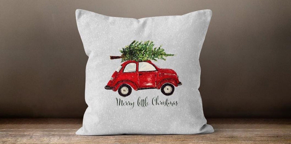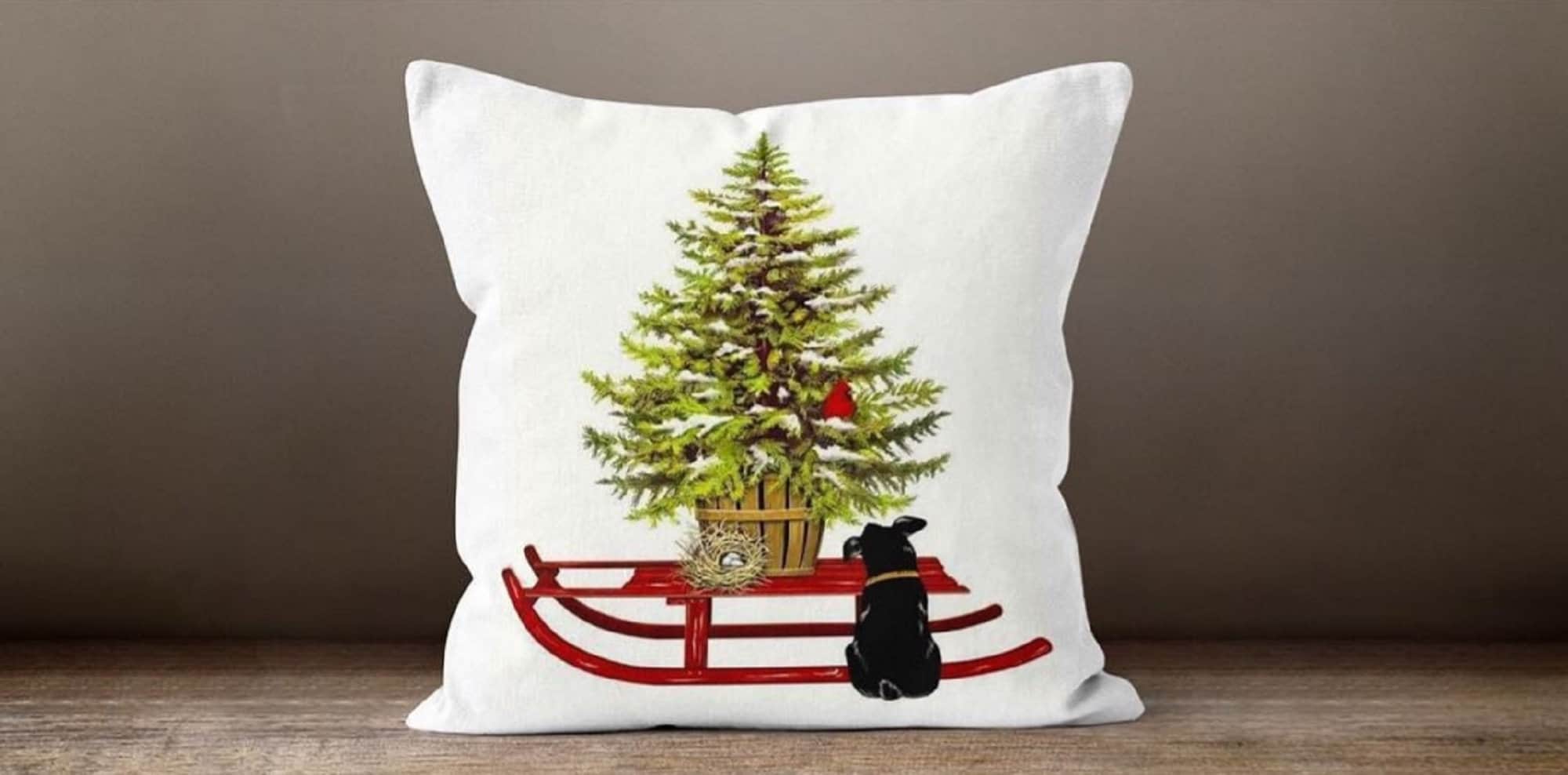 These elegant square decorative rustic farmhouse throw cushion covers with Xmas gifts and tree;