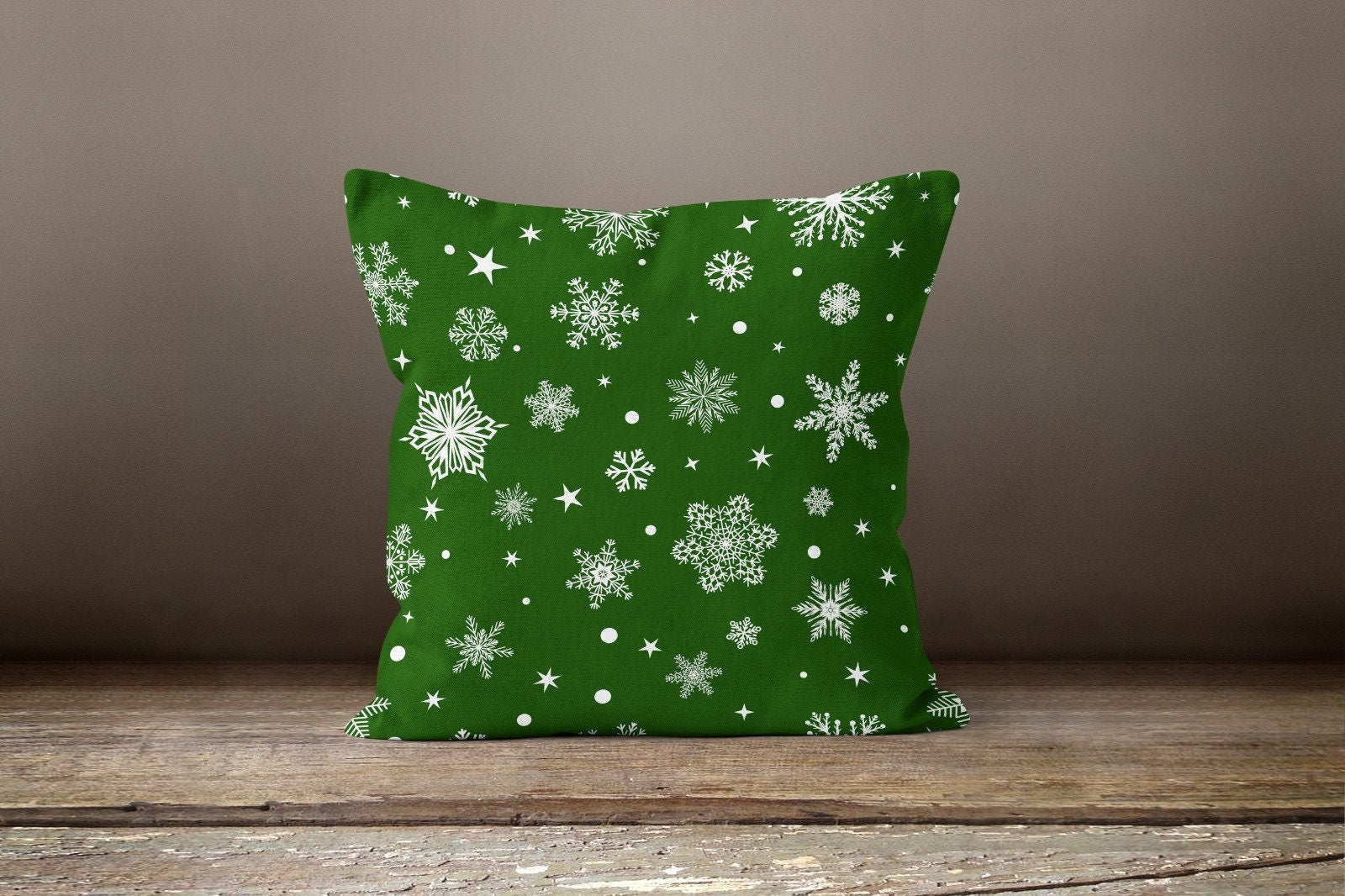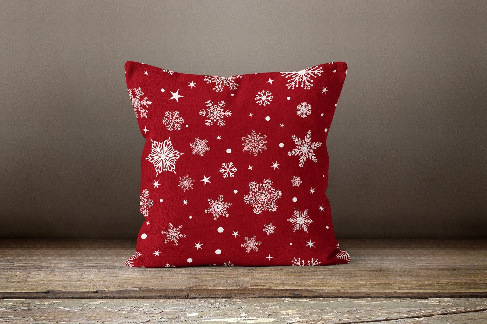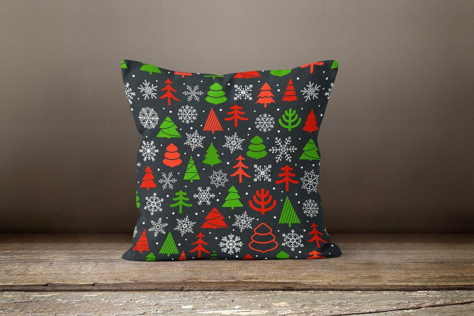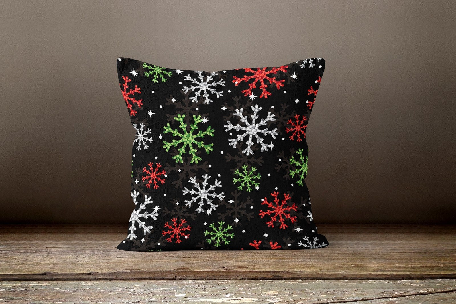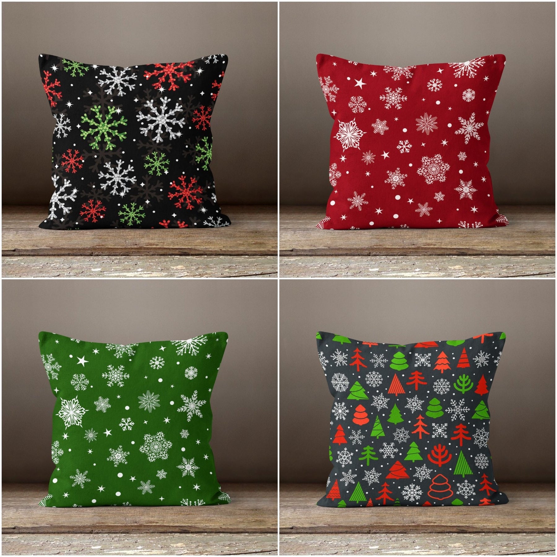 These elegant square decorative rustic farmhouse throw cushion covers with special designed snowflake prints on black/red/green backgrounds, pine tree prints ,