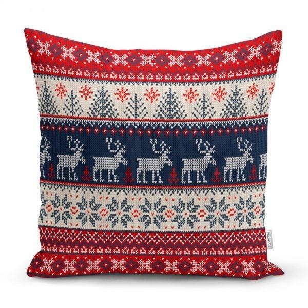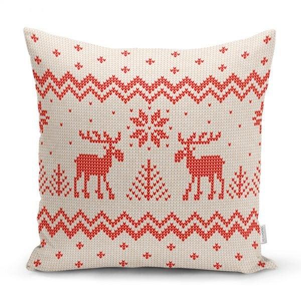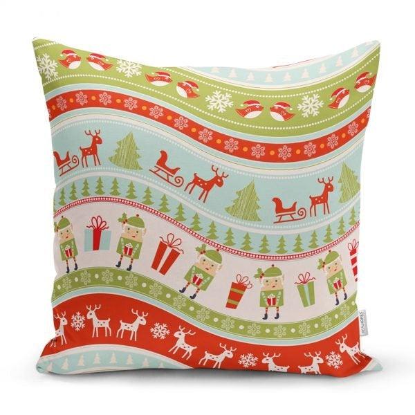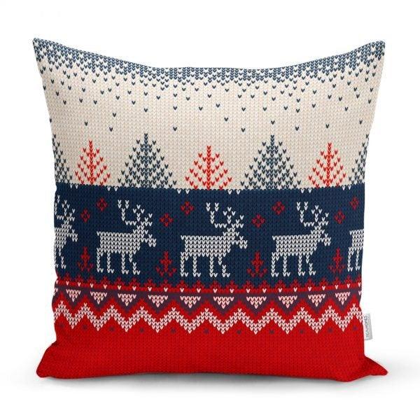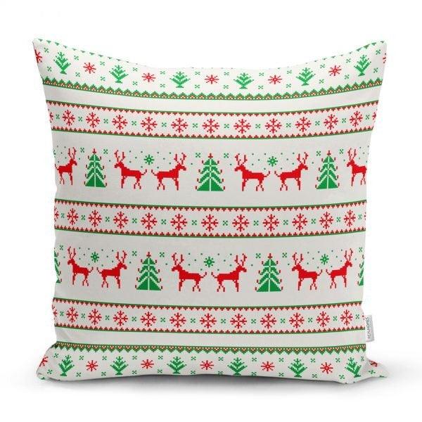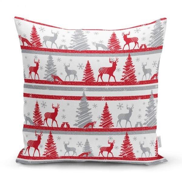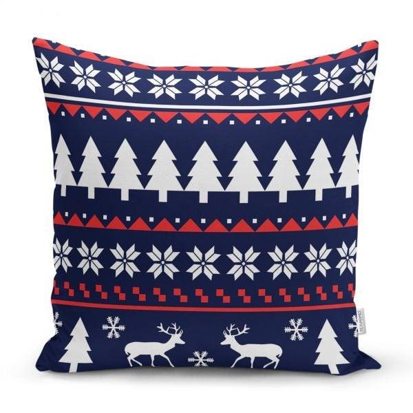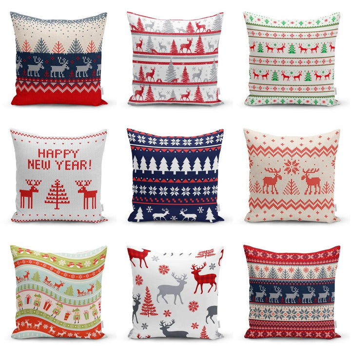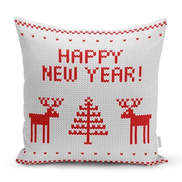 These elegant square decorative pillow covers with Xmas deer, Happy New Year print and Xmas tree;
