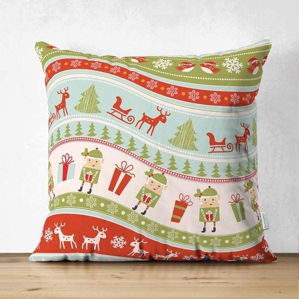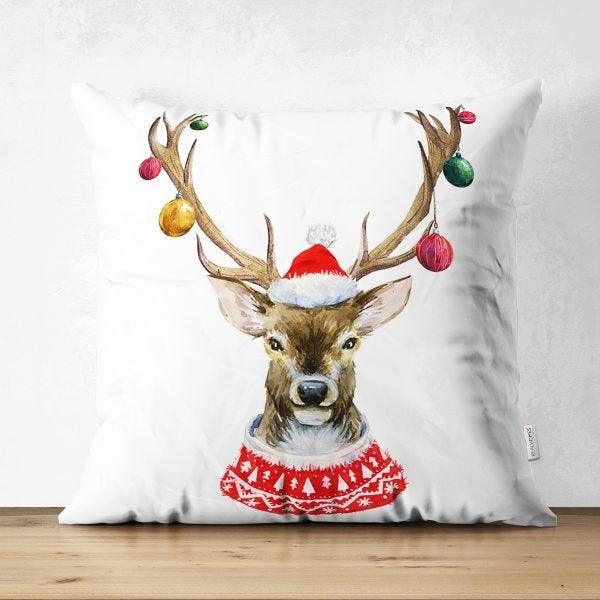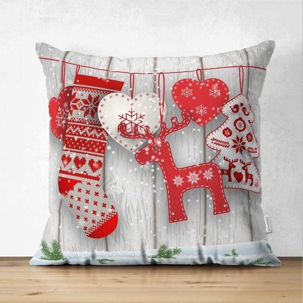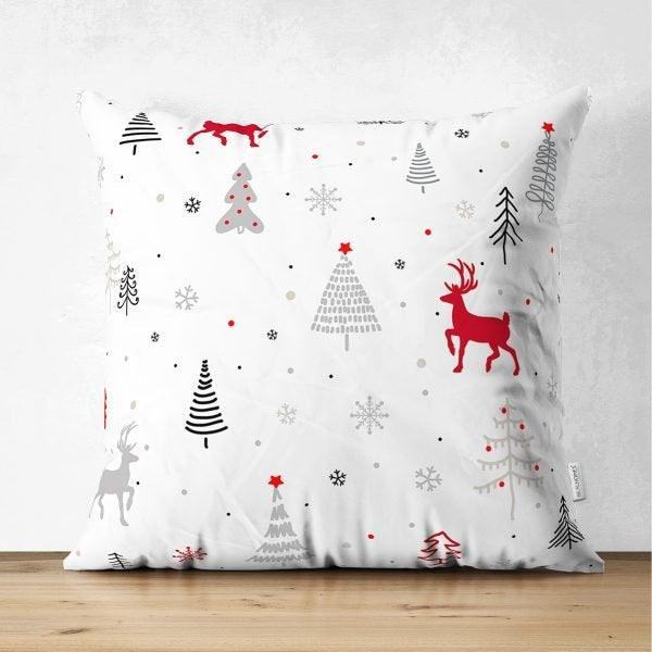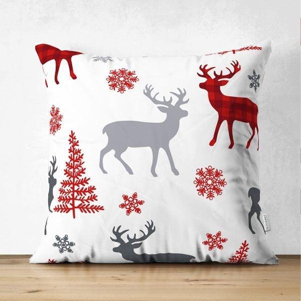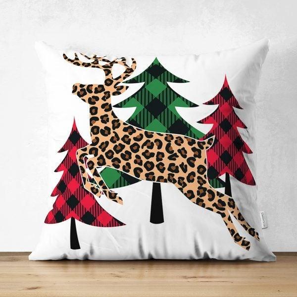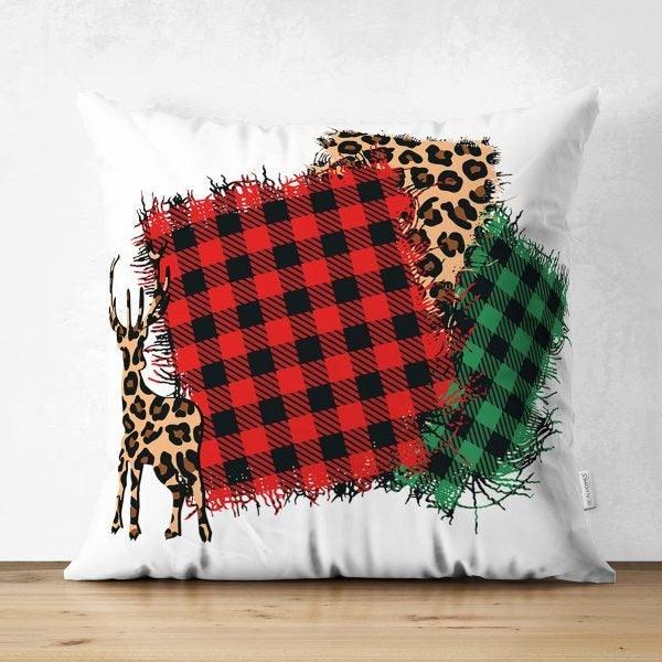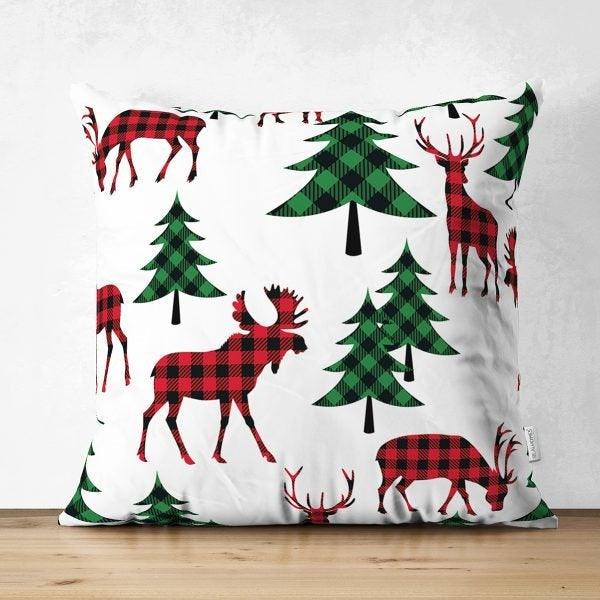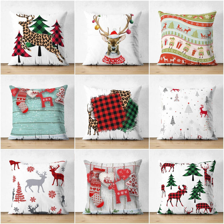 These elegant stylish and high quality suede square pillow covers with Xmas deer, Xmas tree, Xmas socks and snowflake print, red/green/black checkered design, deer head, green/black checkered Xmas tree;