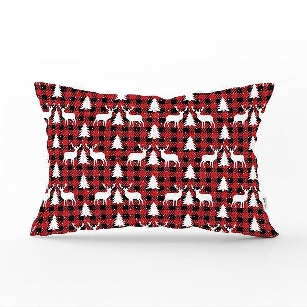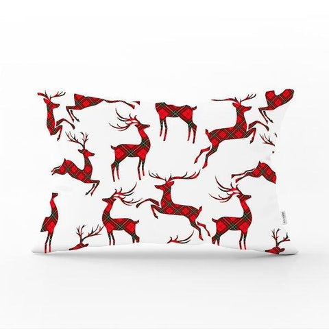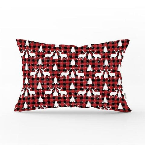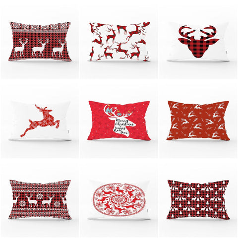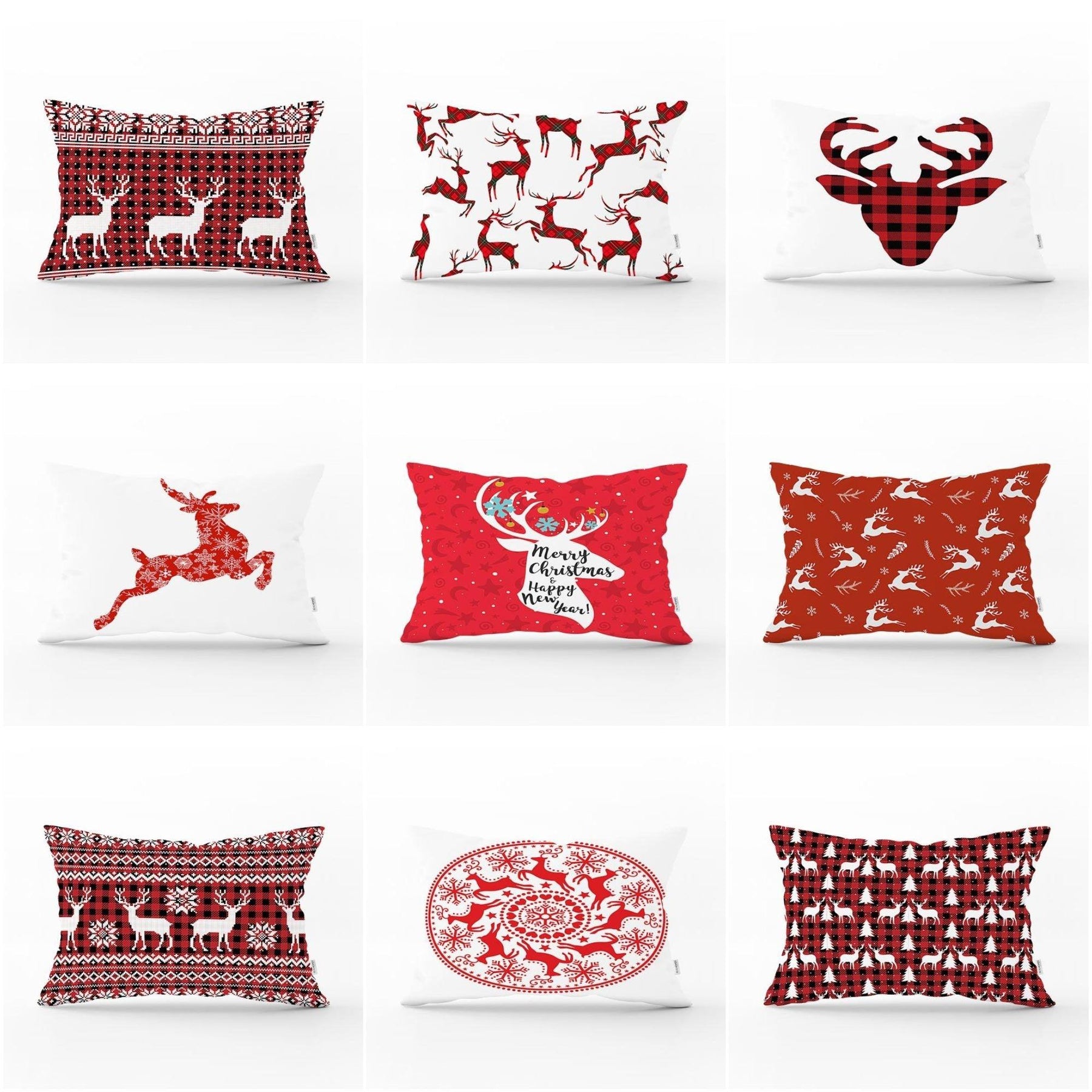 These rectangle farmhouse style pillow covers with Xmas deer, Xmas tree, Xmas design, Merry Christmas and happy new year print;