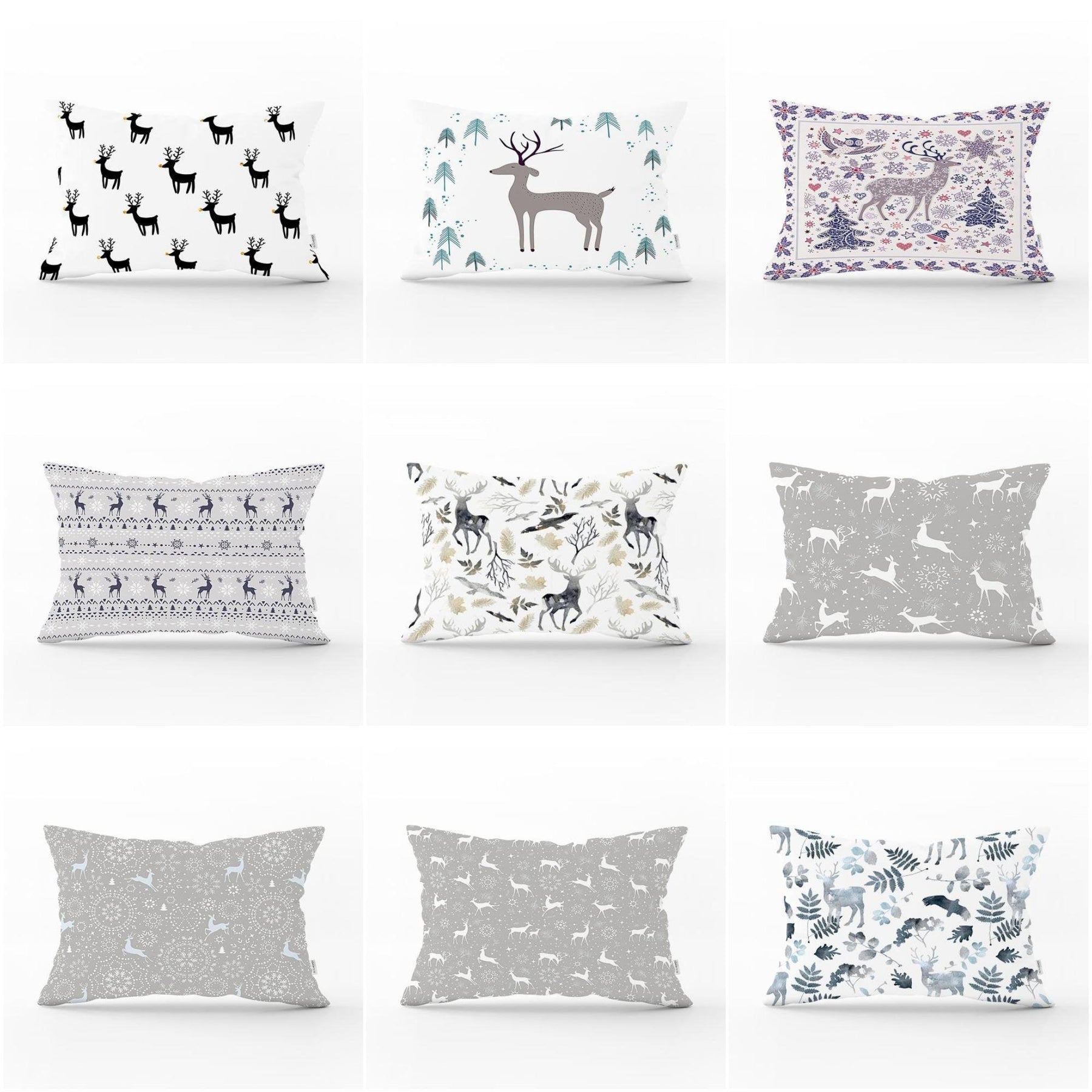 These rectangle farmhouse style pillow covers with Xmas deer, Xmas tree and leaves;