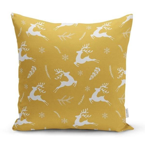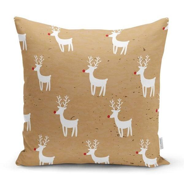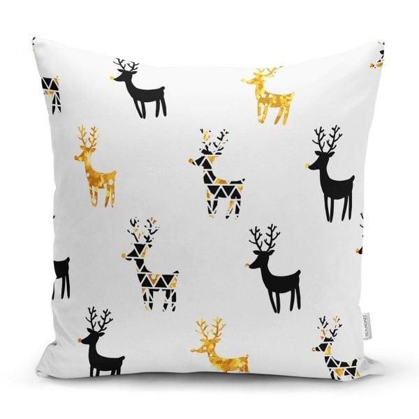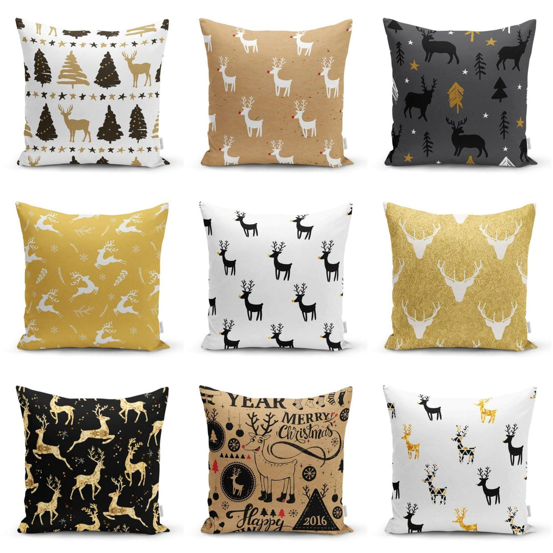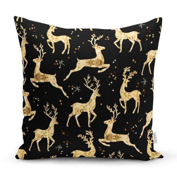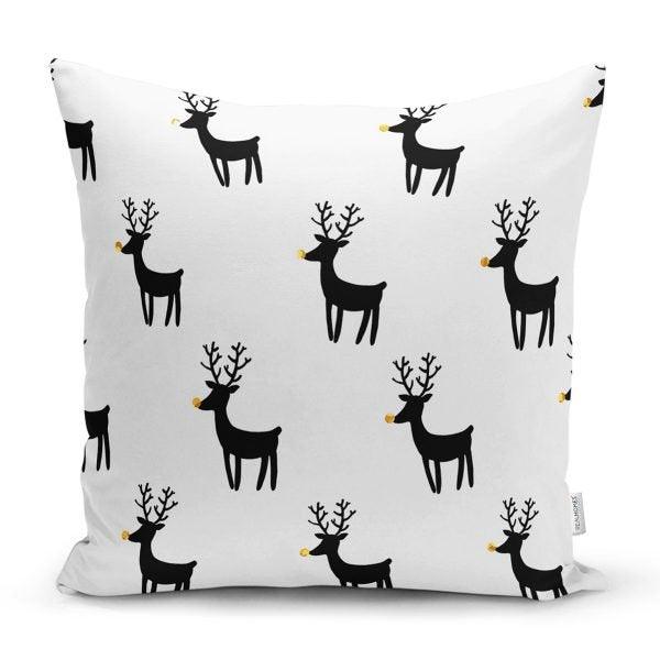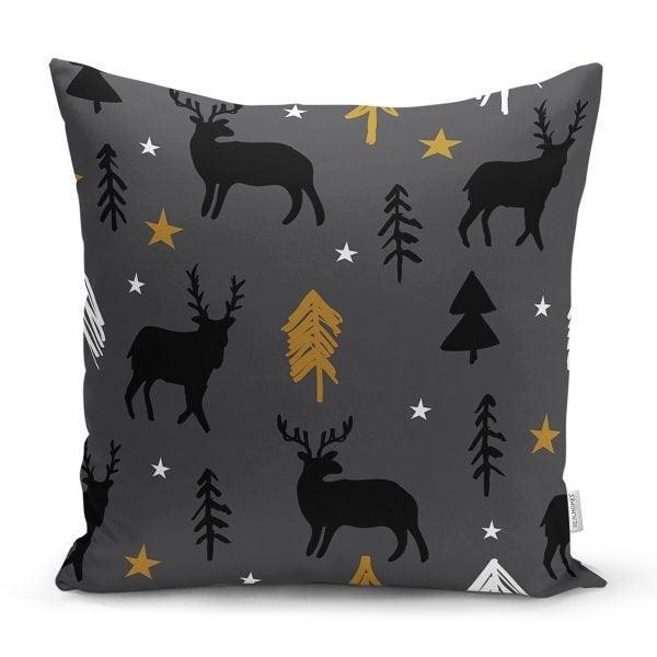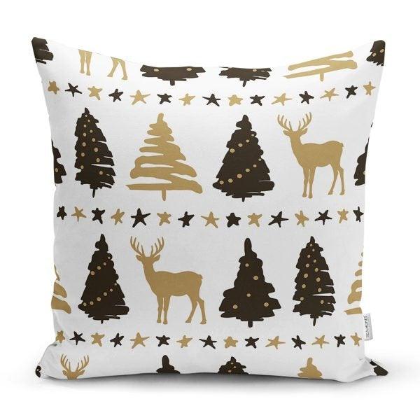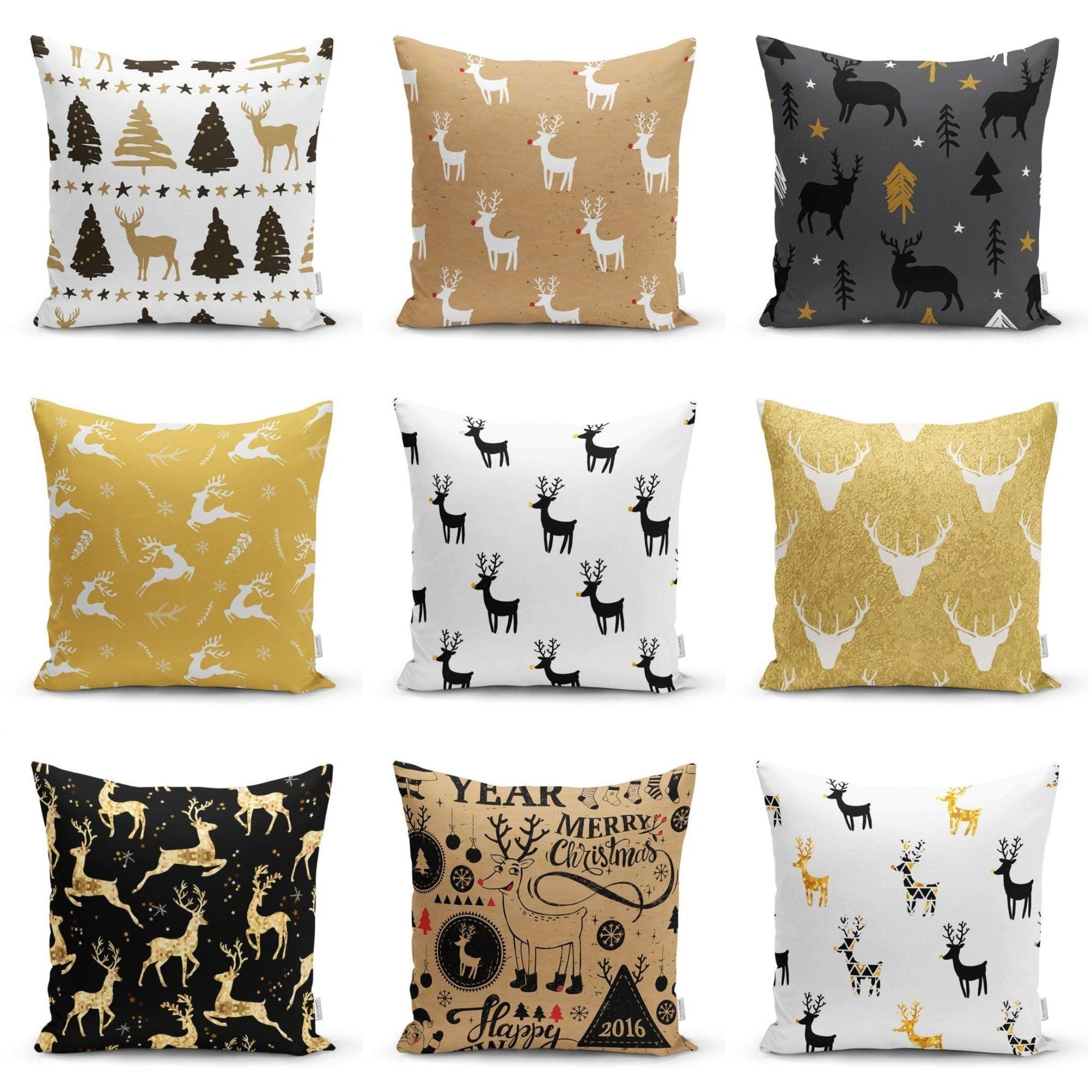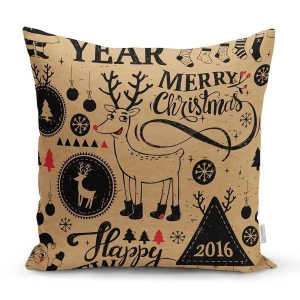 These elegant square decorative pillow covers with Xmas deer, Merry Christmas, Happy New Year print and Xmas tree;