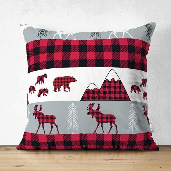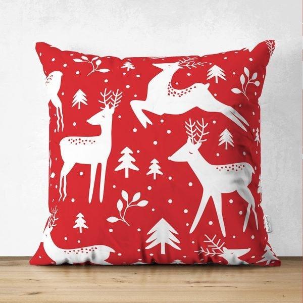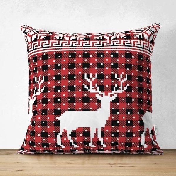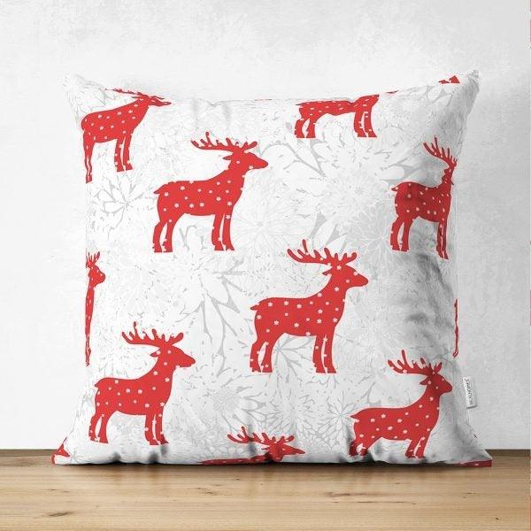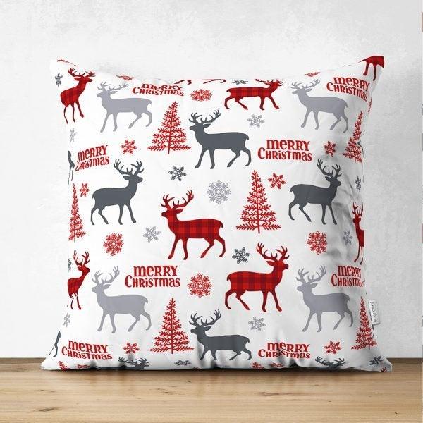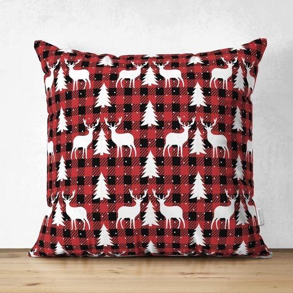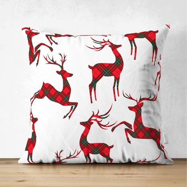 These elegant stylish and high quality suede square pillow covers with Xmas deer, Xmas tree, Xmas design and snowflake print, Merry Christmas print, plaid bear, plaid background and white deer;