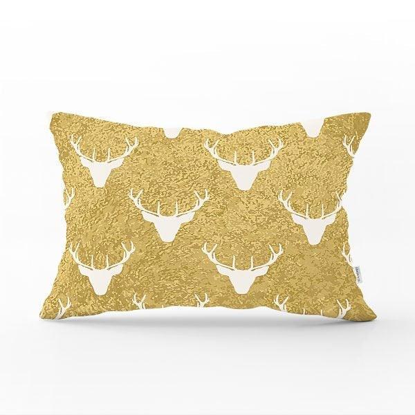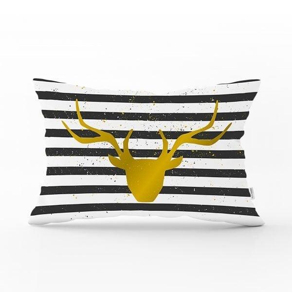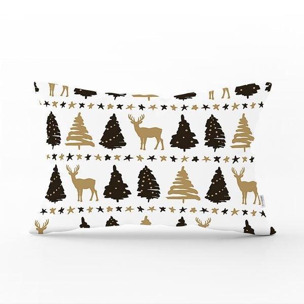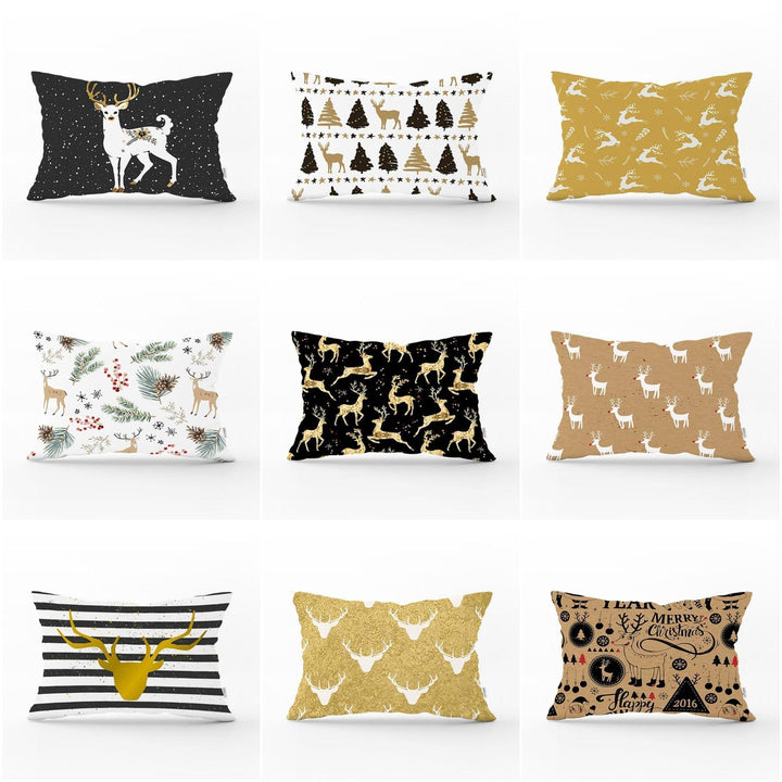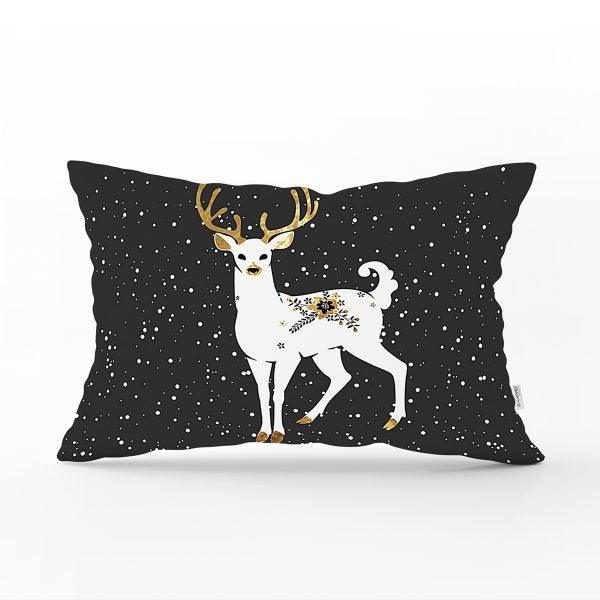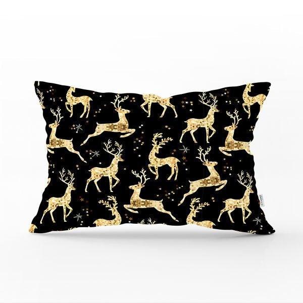 Black Gold White Rectangle Christmas Deer Pillow Cover
