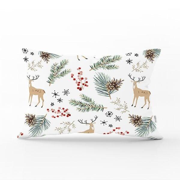 Christmas Pillow Cover|Christmas Deer Home Decor|Rectangle Winter Pillow Top|Housewarming Xmas Gift Idea|Christmas Deer Throw Pillow Cover
