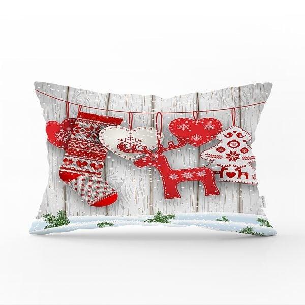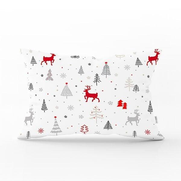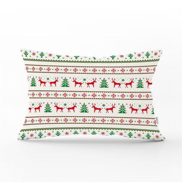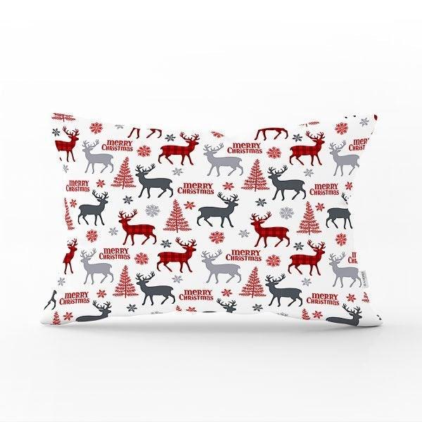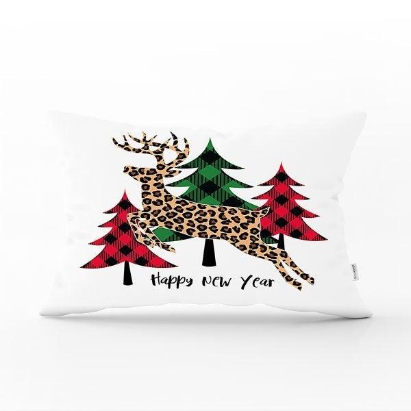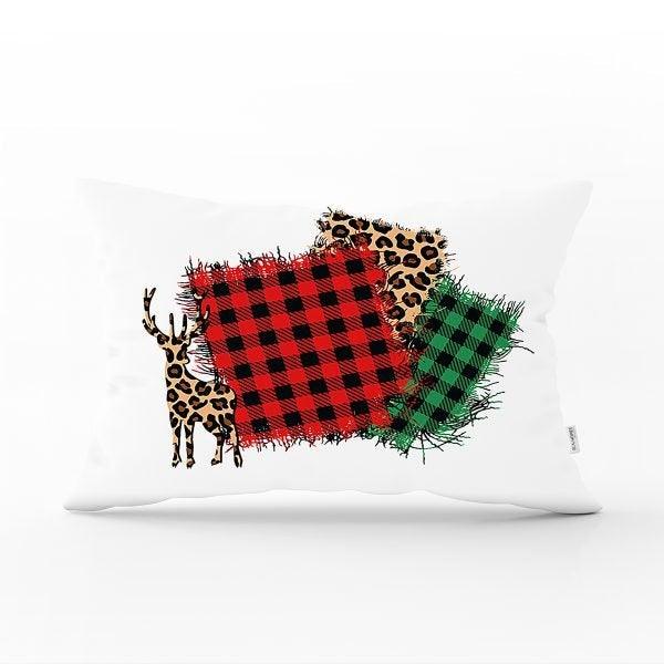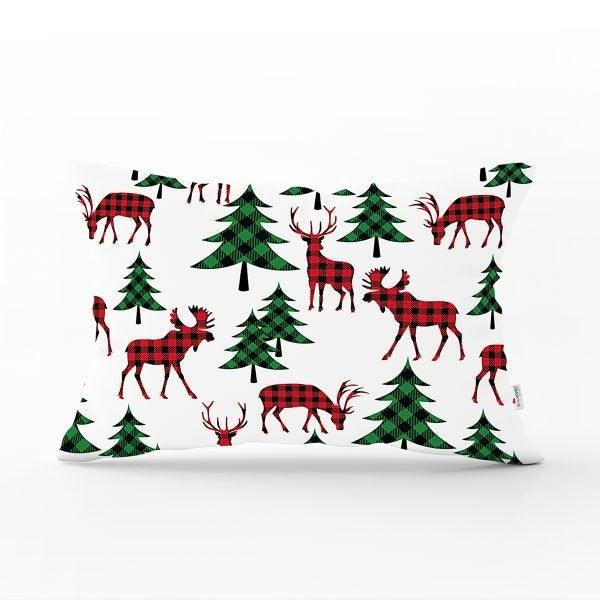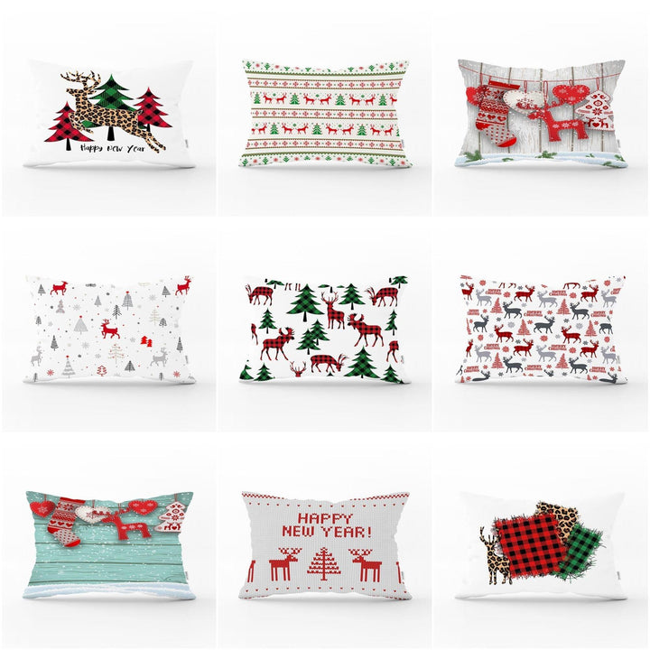 These rectangle farmhouse style pillow covers with Xmas deer, Xmas tree, Xmas design and snowflake print, Merry Christmas print, happy new year print, plaid design;