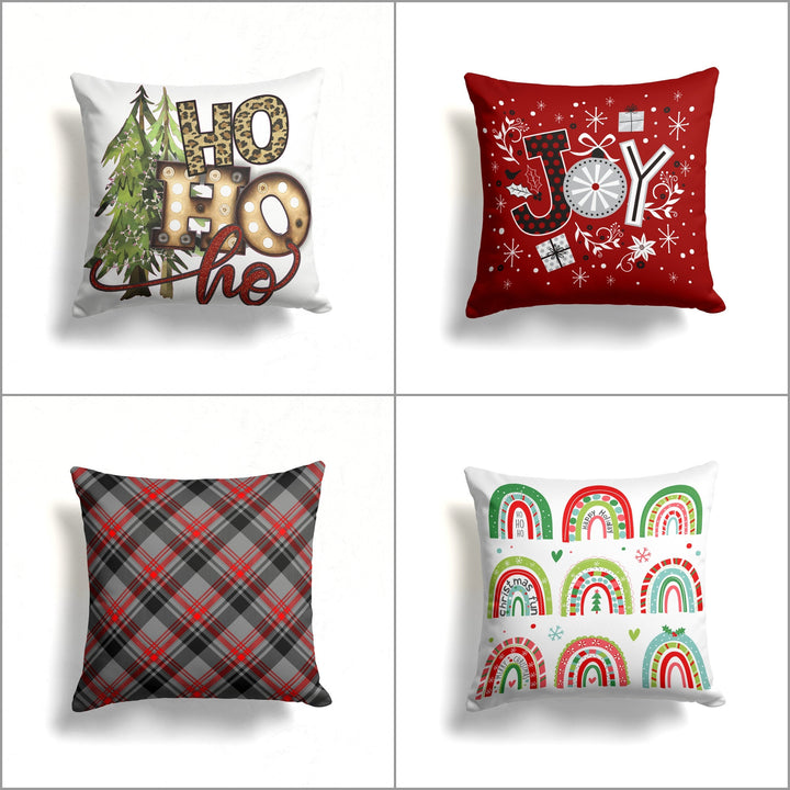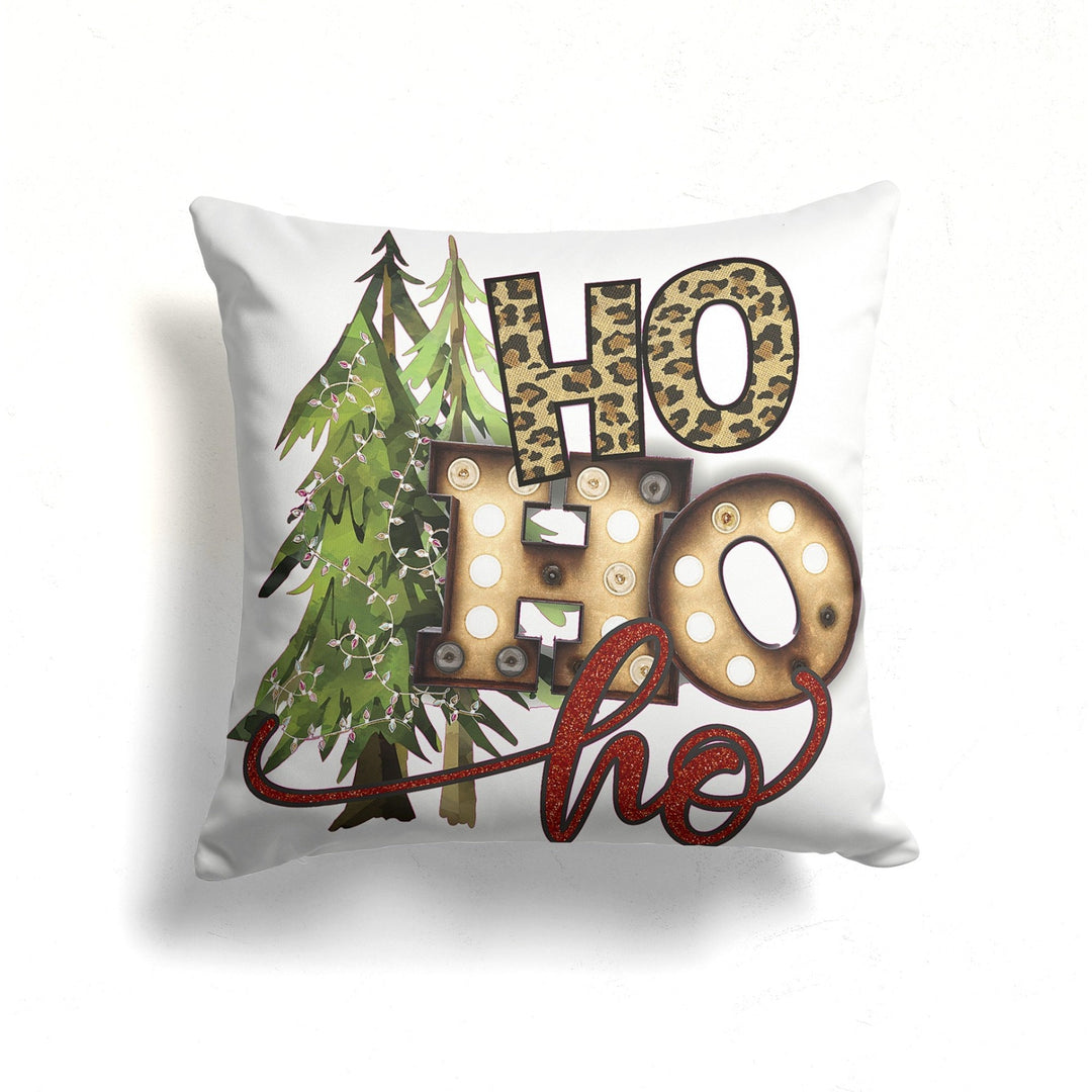 These elegant square decorative rustic farmhouse throw cushion covers with Ho Ho Ho, Joy and Happy Holiday prints;