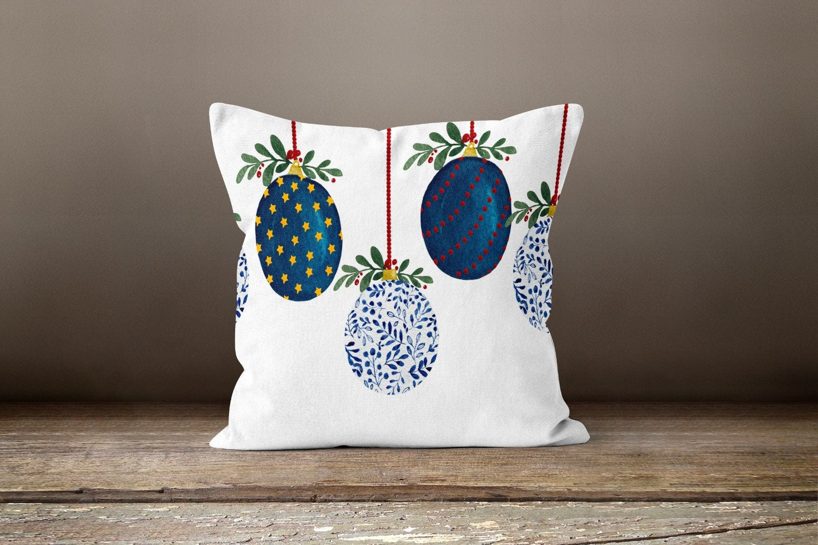 These elegant square decorative rustic farmhouse throw cushion covers with Merry Christmas print, cute owl family, Xmas deer, snowflake prints, Xmas ornaments and Xmas socks;