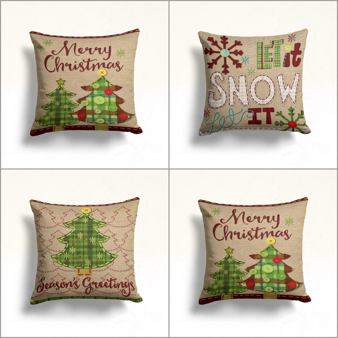 These elegant square decorative rustic farmhouse throw cushion covers with Pine Tree, Merry Xmas, Let it Snow prints ;