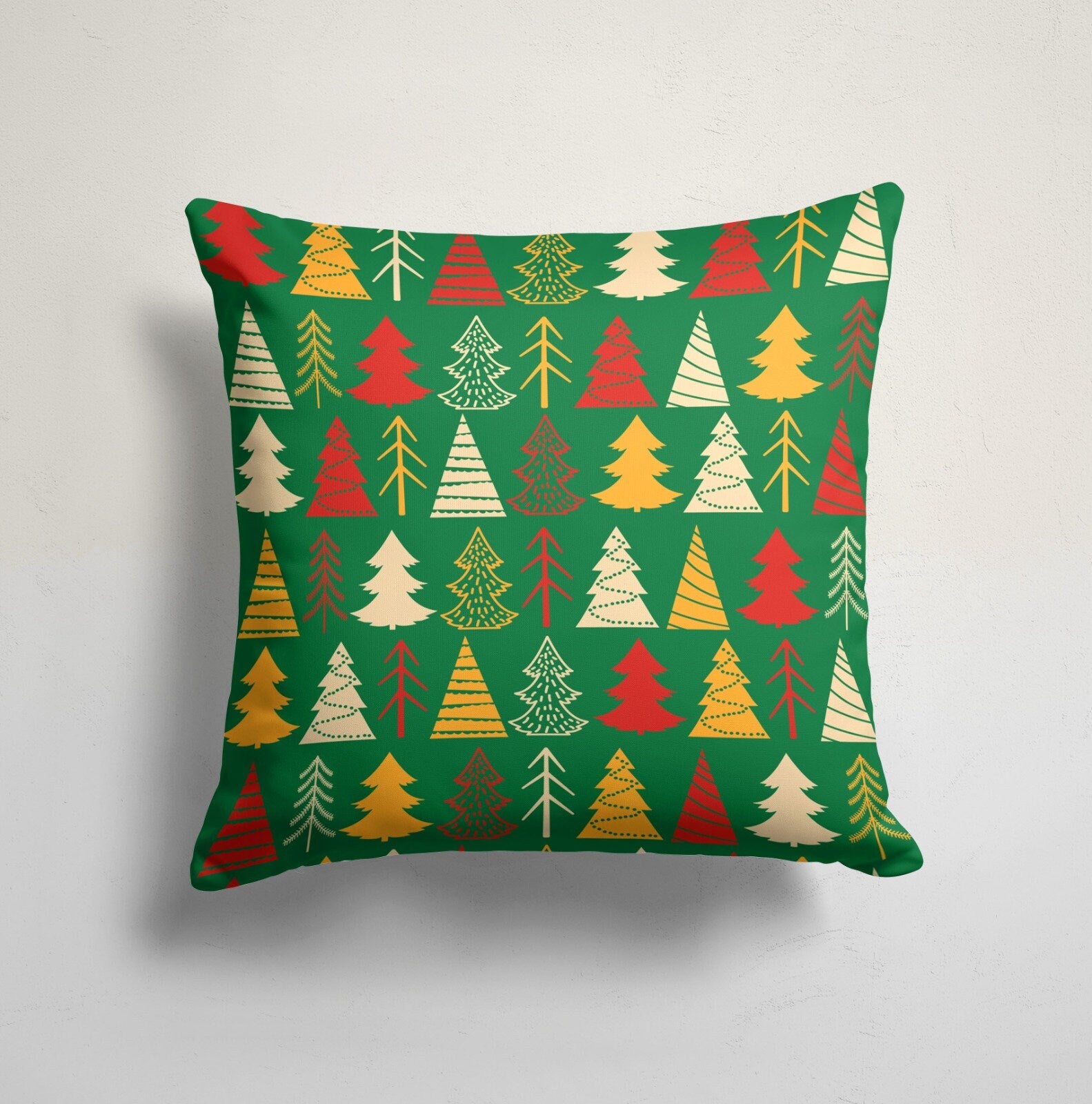 These elegant square decorative rustic farmhouse throw cushion covers with Red and Green design, Pine Tree and Merry Christmas Print;