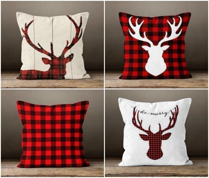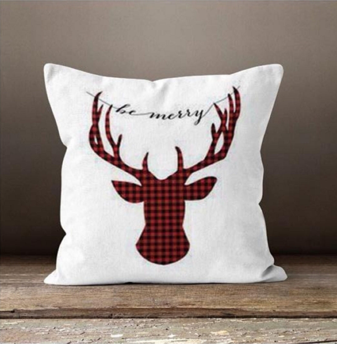 These decorative rustic home decor red Xmas cushion covers with deer design;