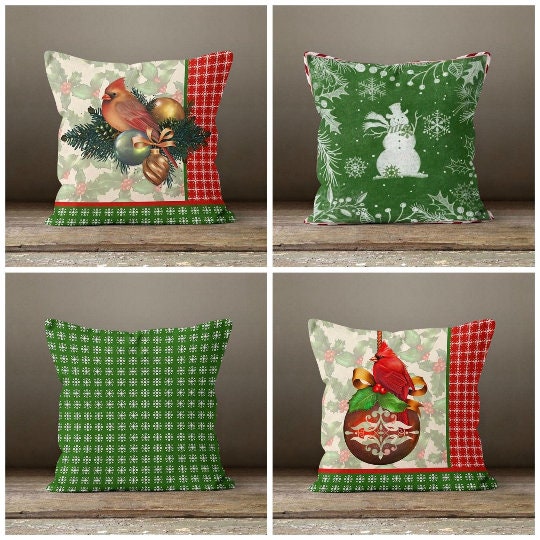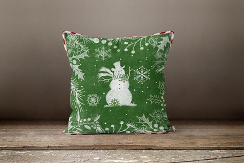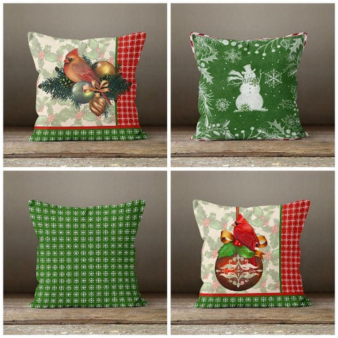 These elegant square decorative rustic farmhouse throw cushion covers with birds, snowman and snowflakes;