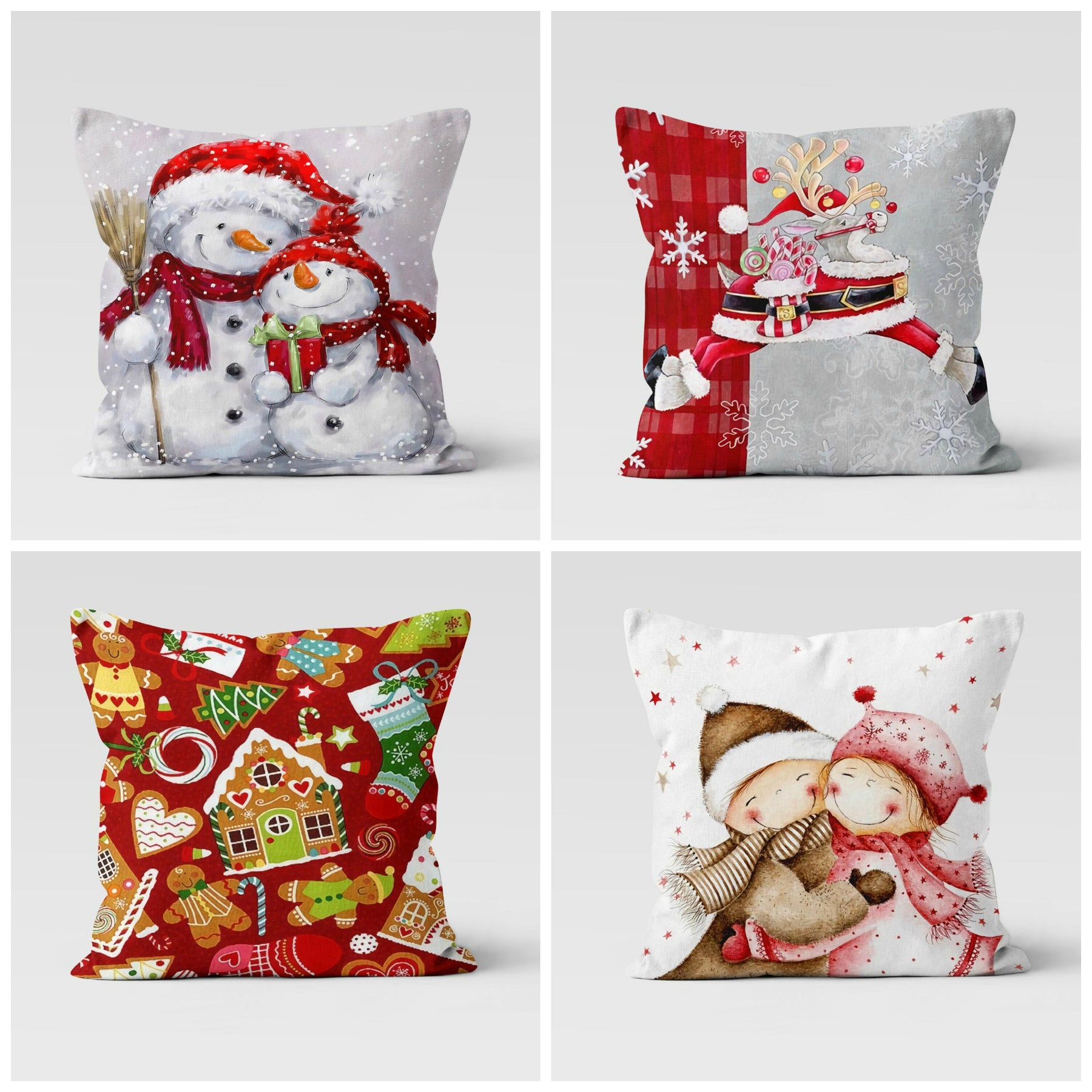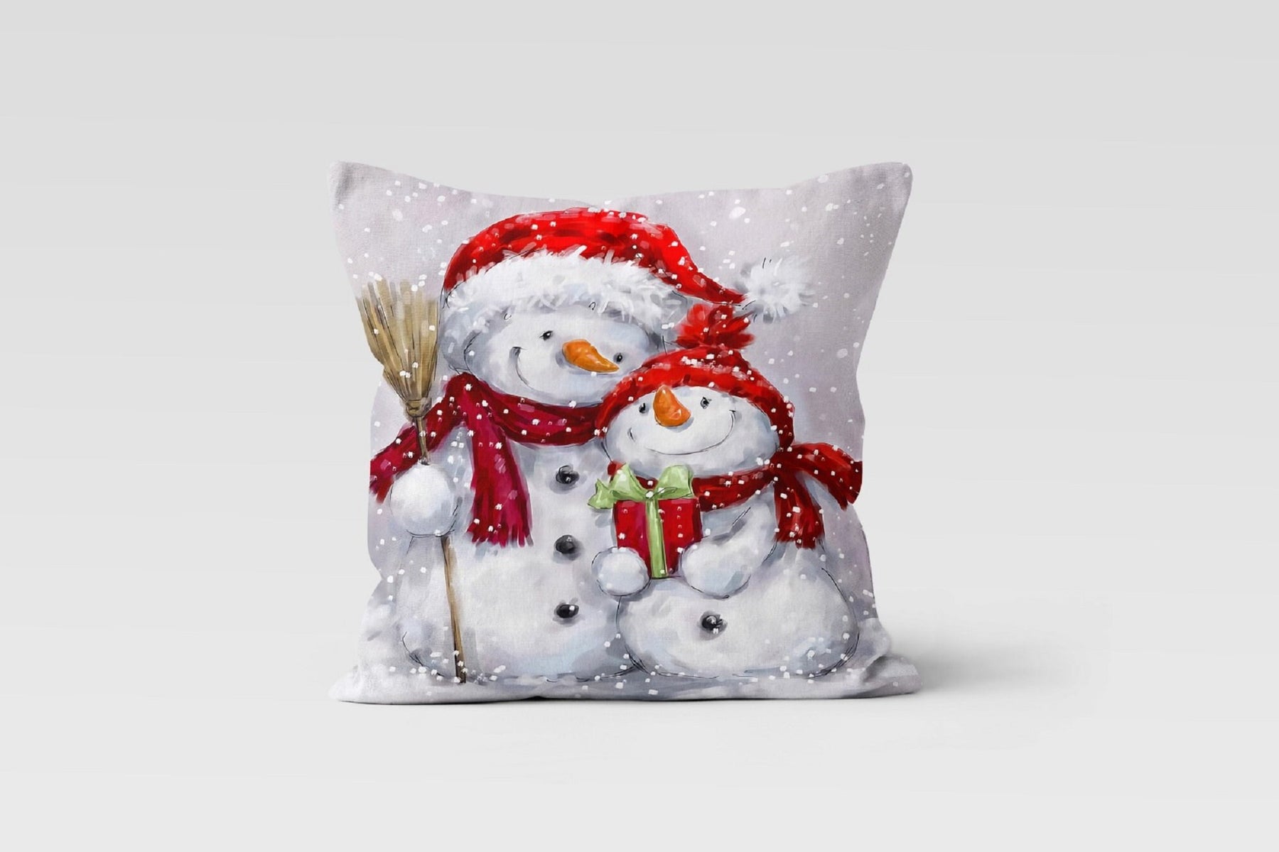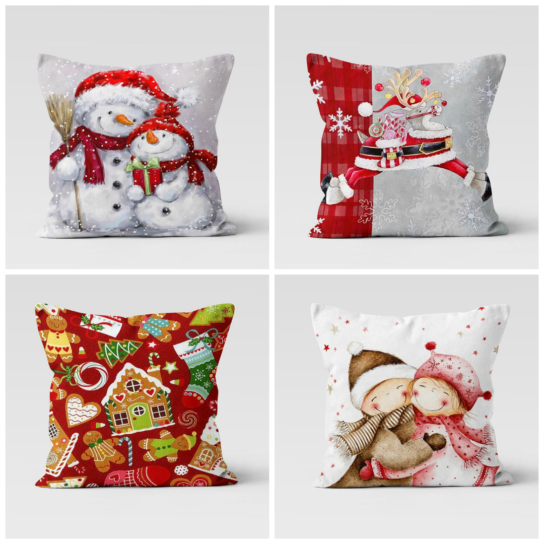 These elegant square decorative farmhouse style throw cushion covers with cute snowmen;
