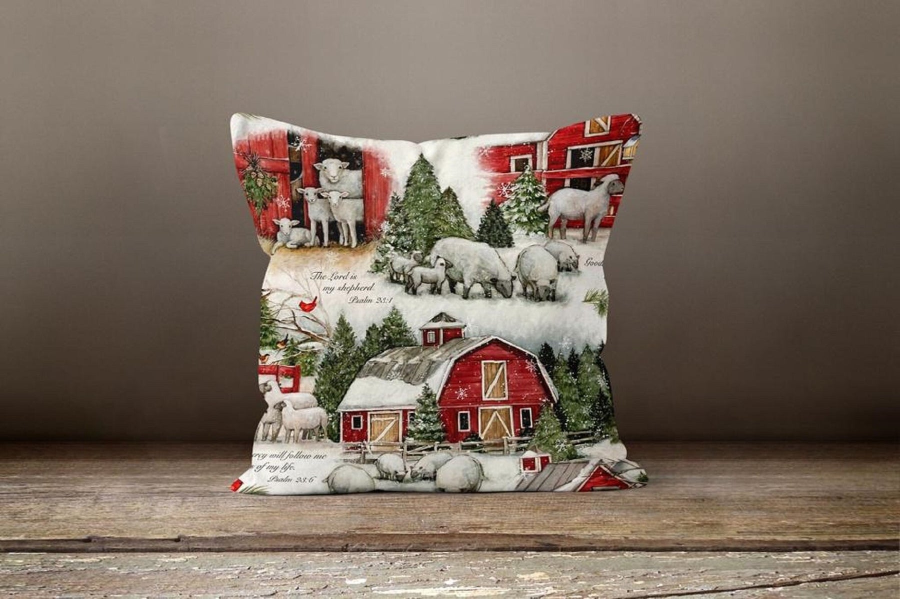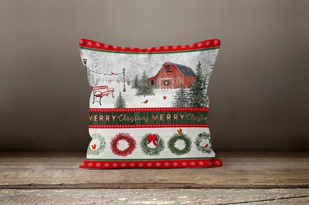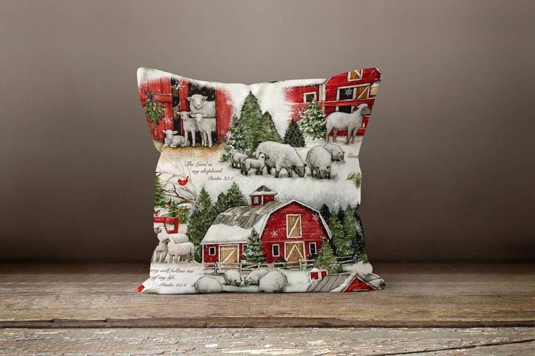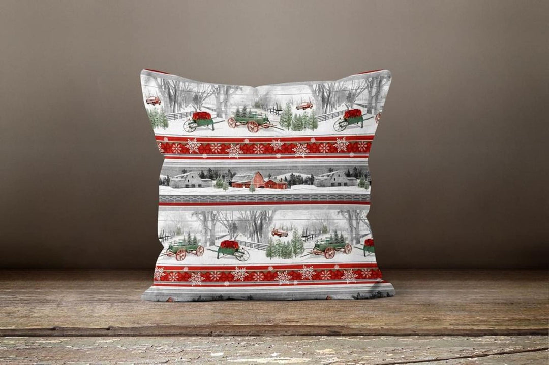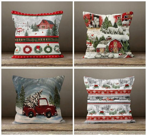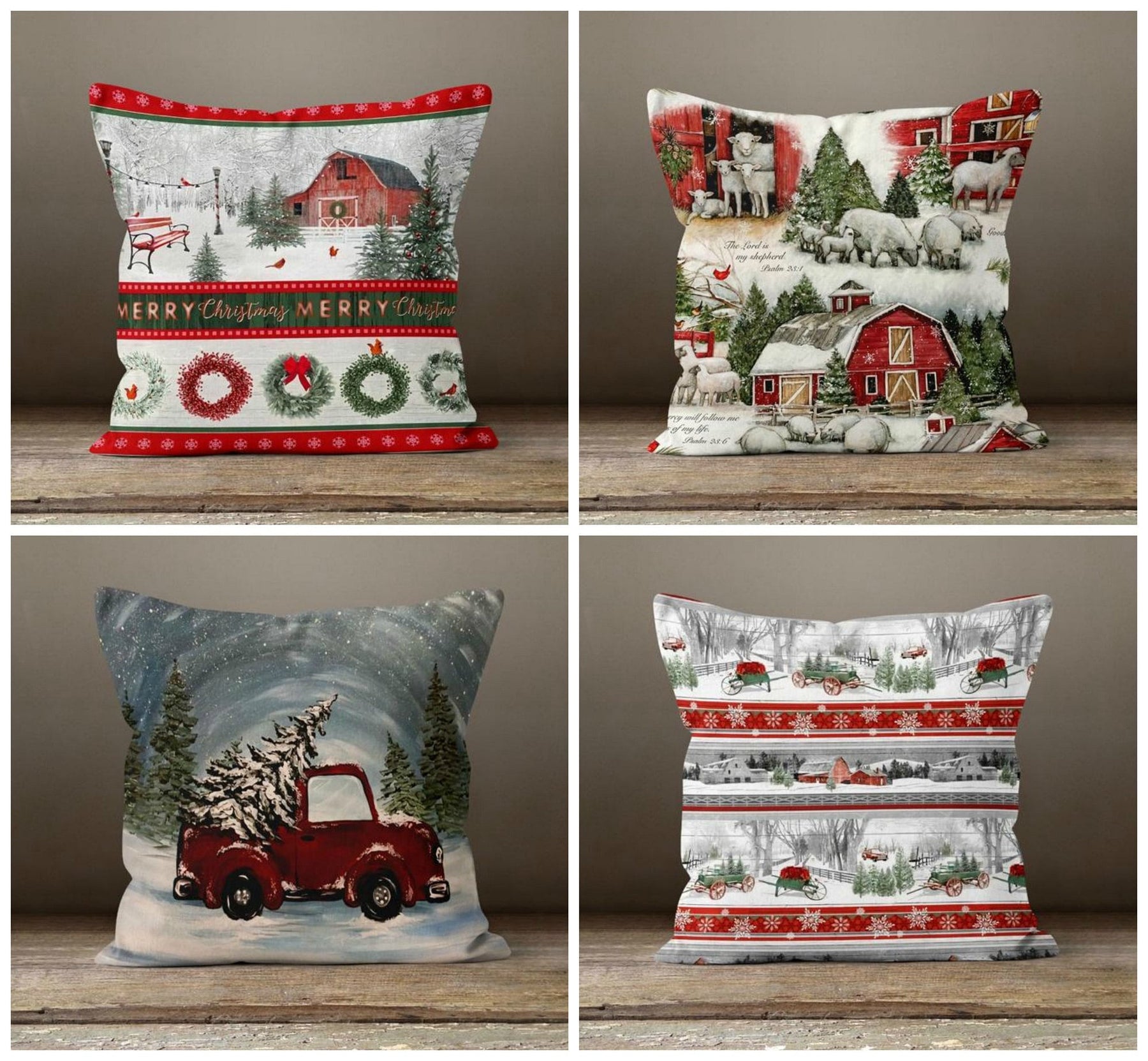 These decorative rustic home decor red Xmas cushion covers with farmhouse design;