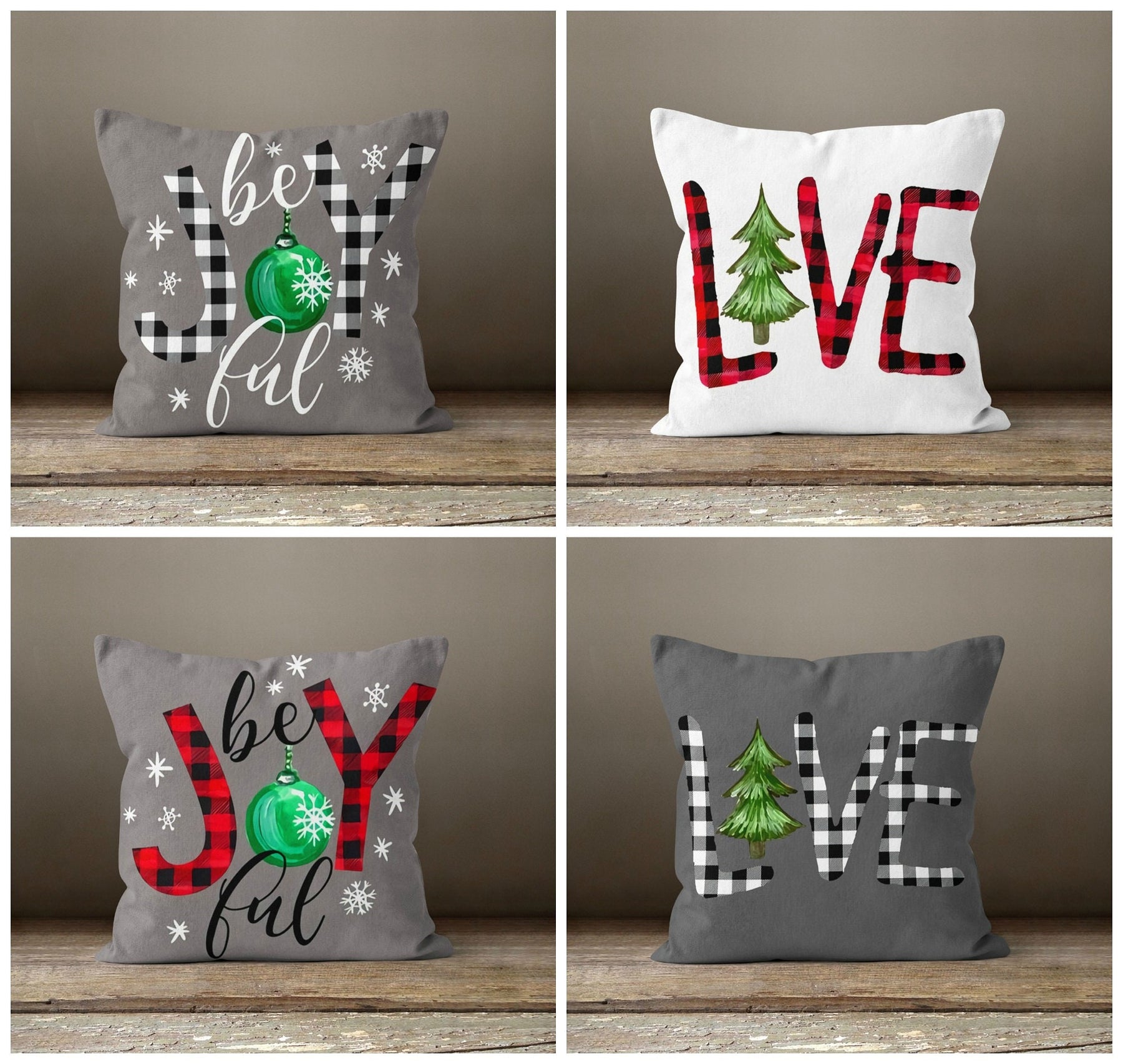 These elegant square decorative rustic farmhouse throw cushion covers with Xmas "be joyful" and "love" theme;