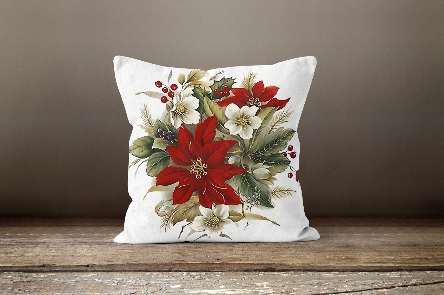 These elegant square decorative farmhouse throw cushion covers with Xmas trees, ice skates, snowflakes, decorated Xmas trees and cute deer;