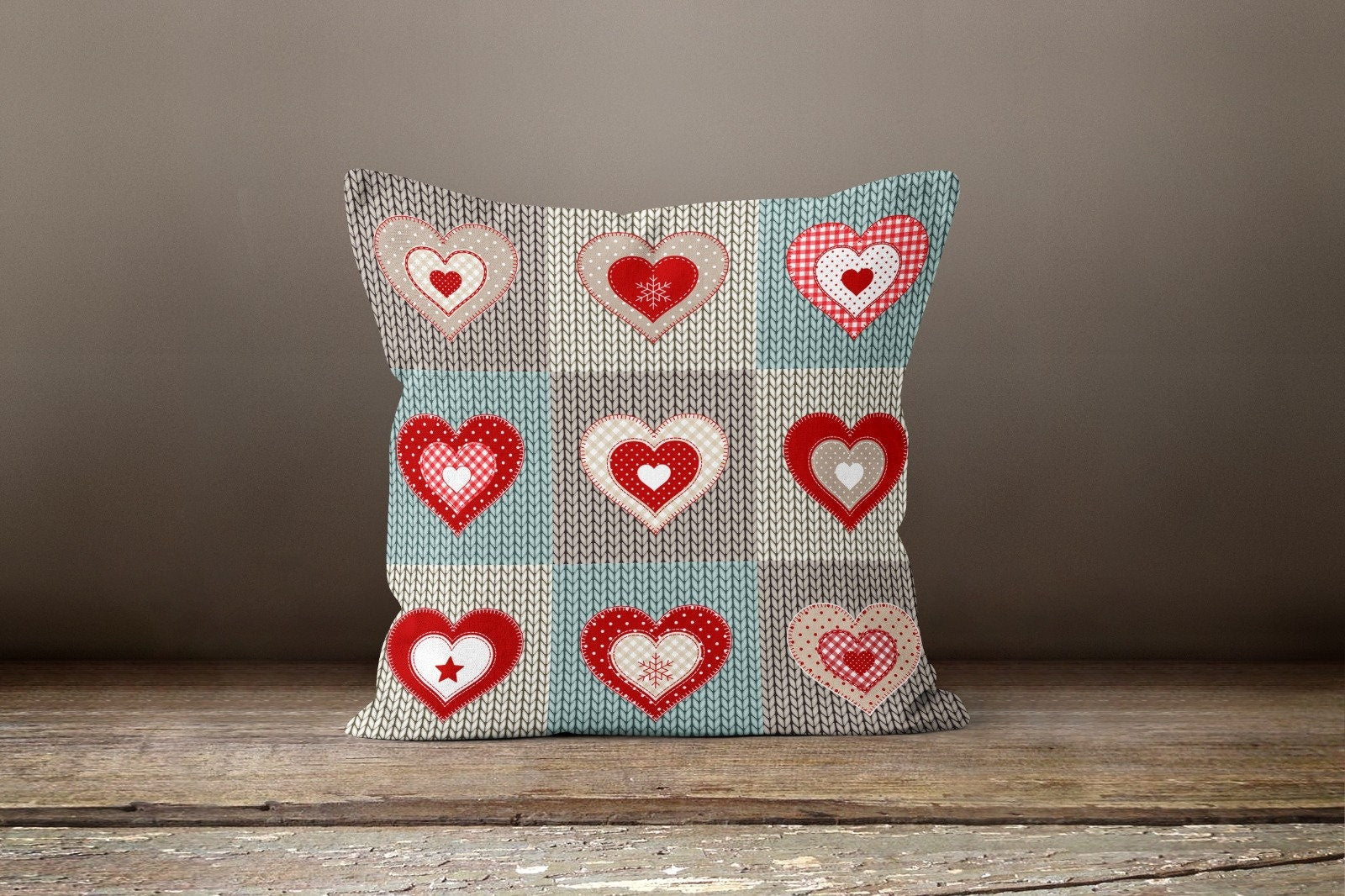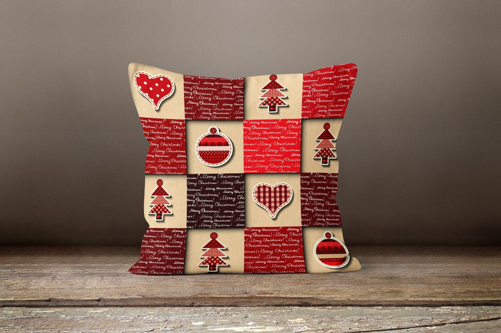 These elegant square decorative rustic farmhouse throw cushion covers with Xmas ornaments, Xmas tree, Xmas deer and heart prints;
