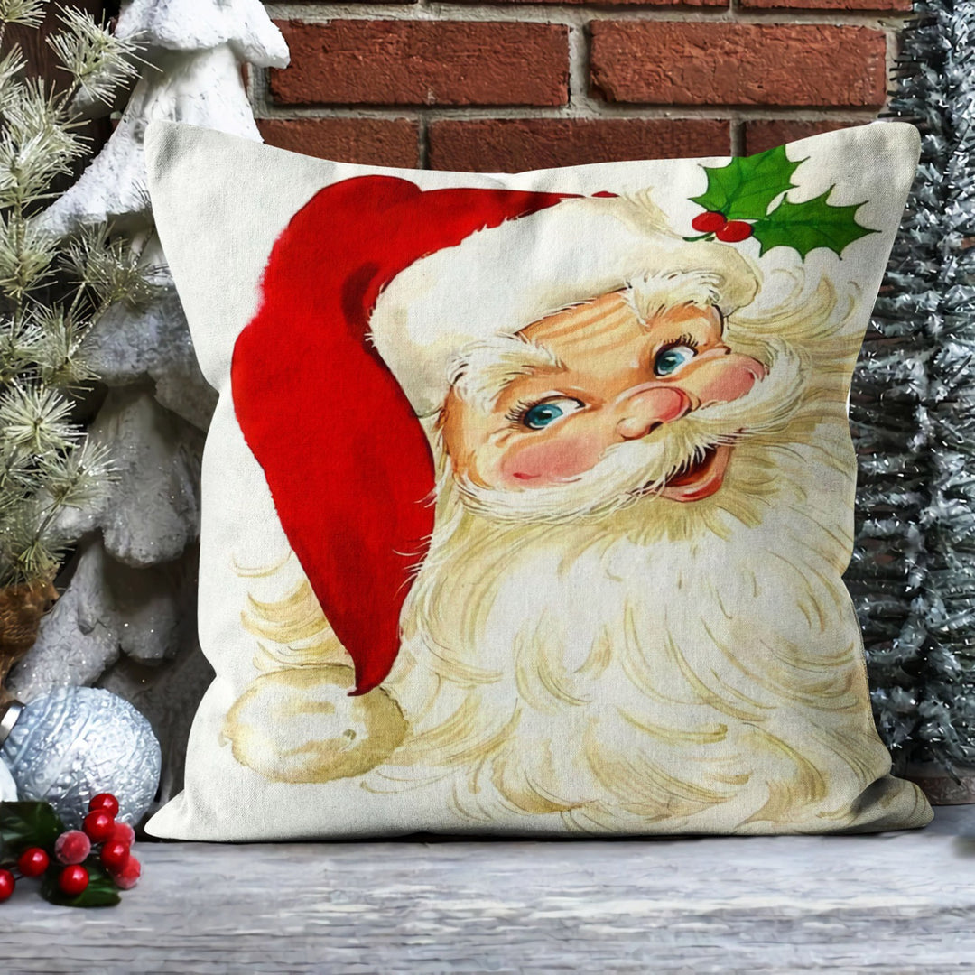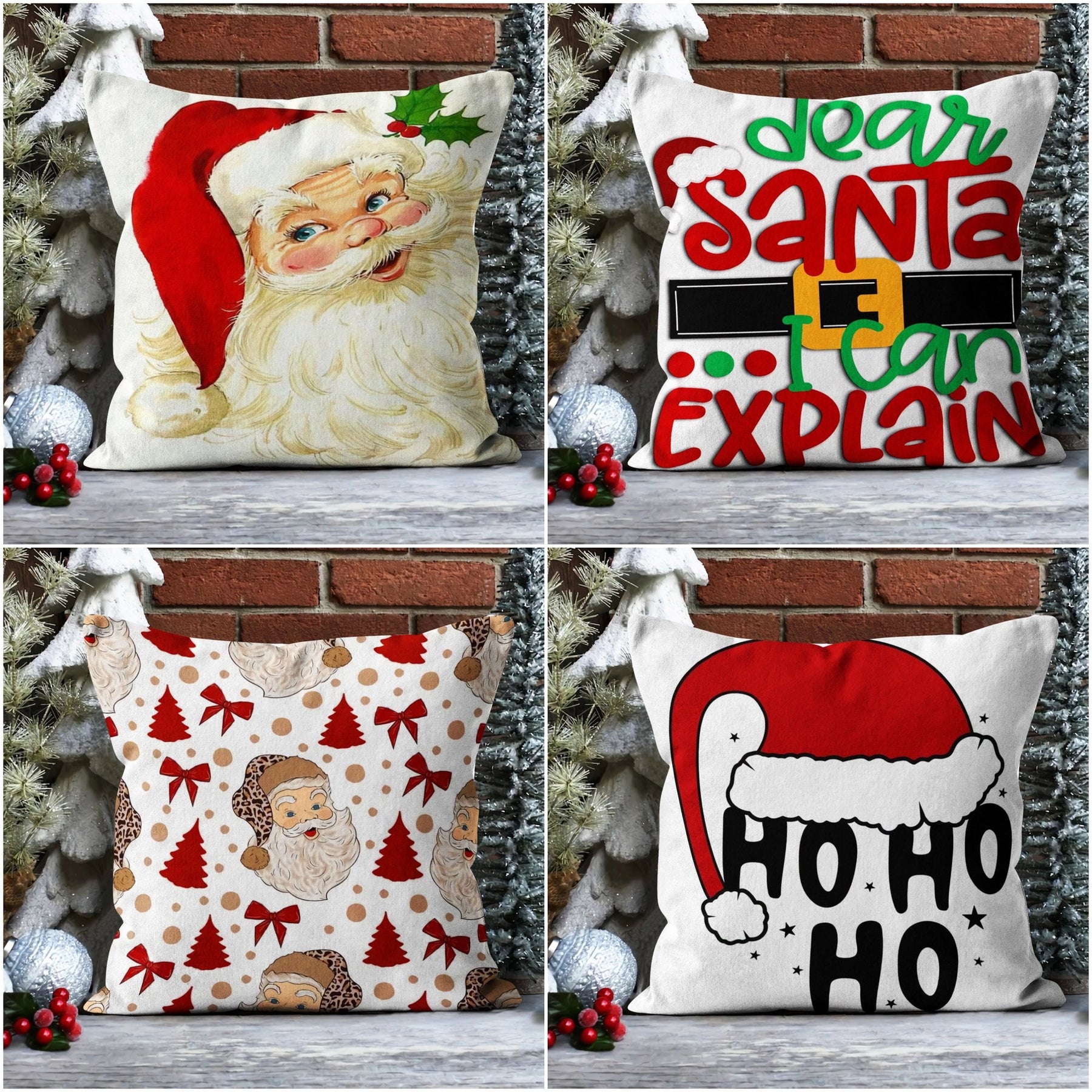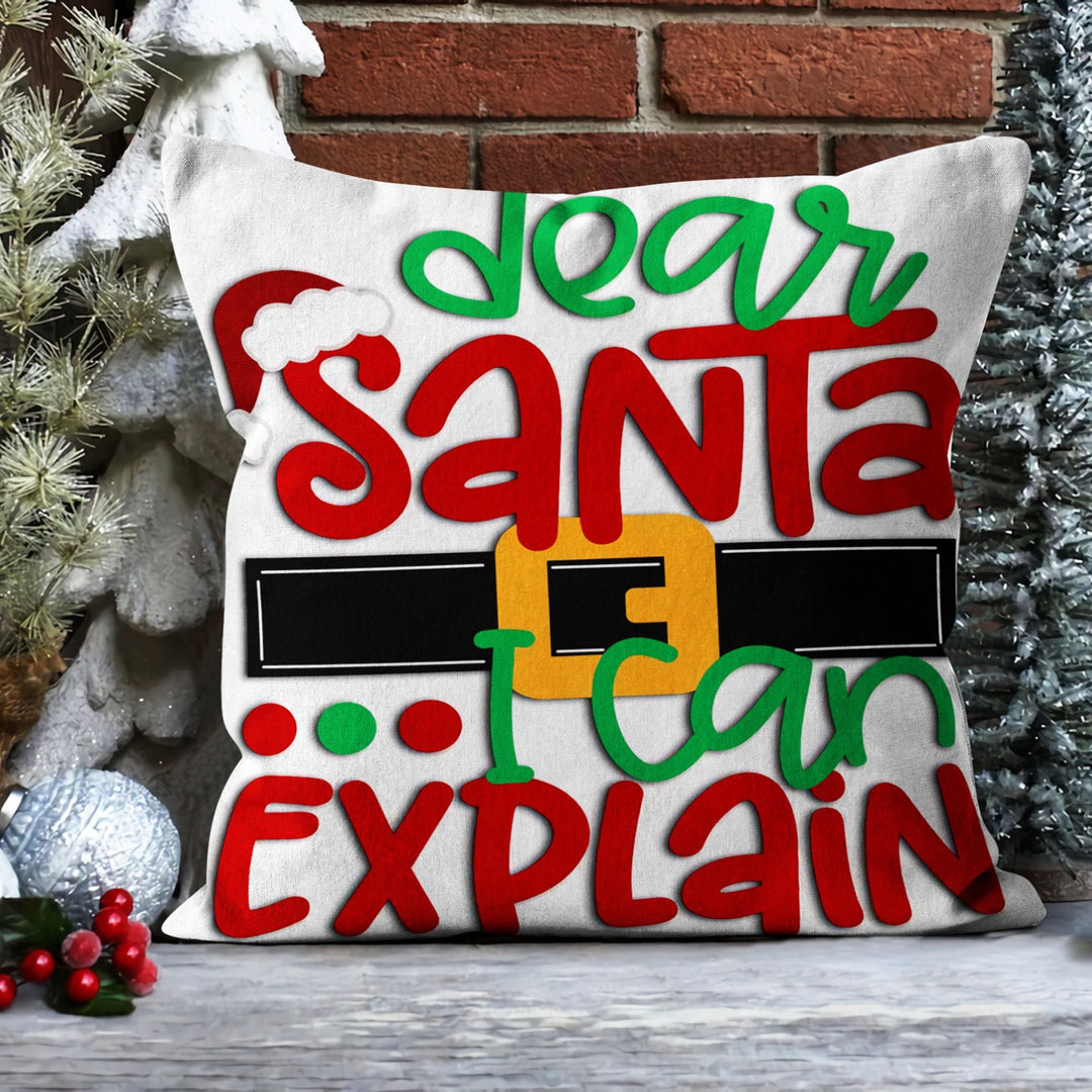 These elegant square decorative rustic farmhouse throw cushion covers with Santa Claus, Dear Santa I Can Explain and Ho Ho Ho prints;