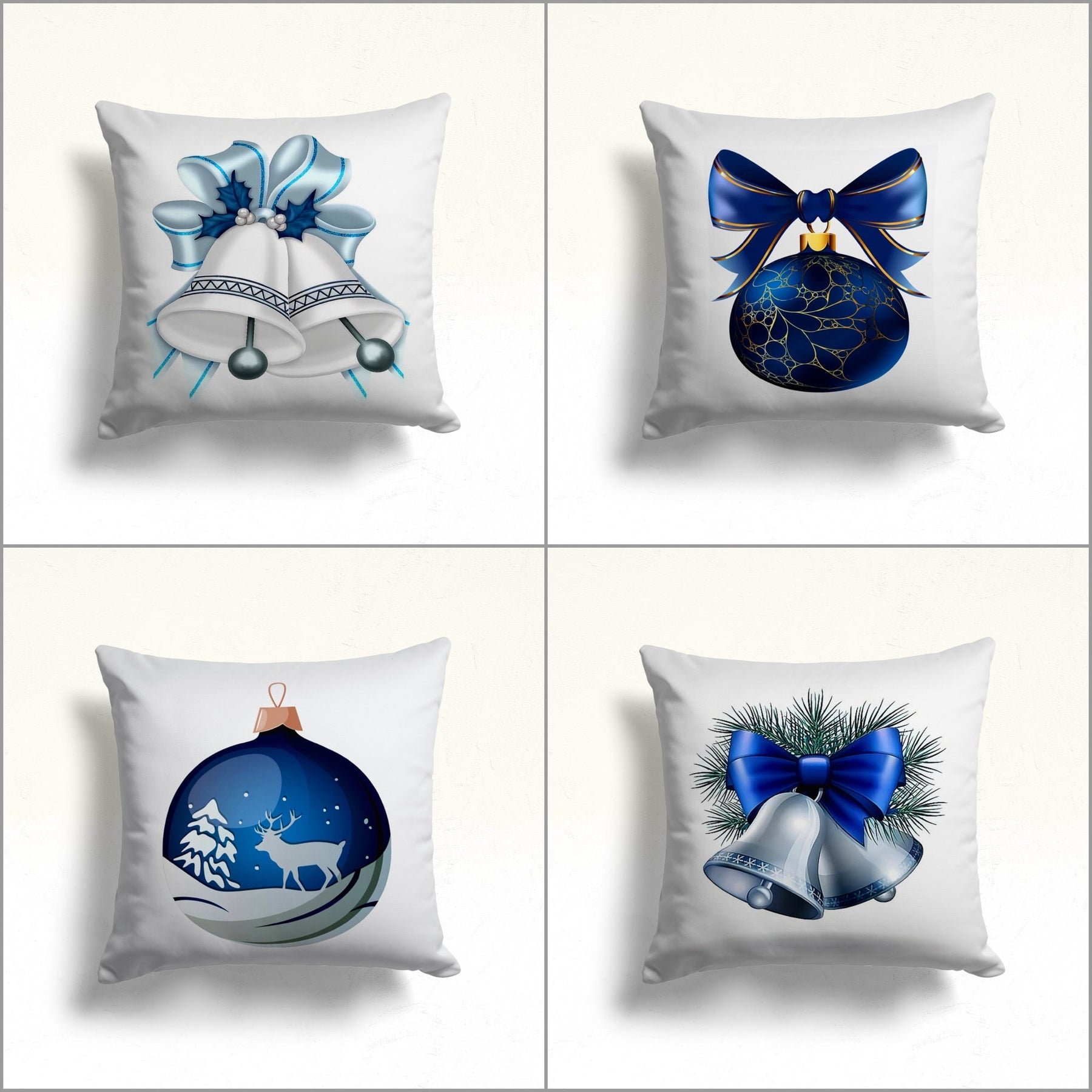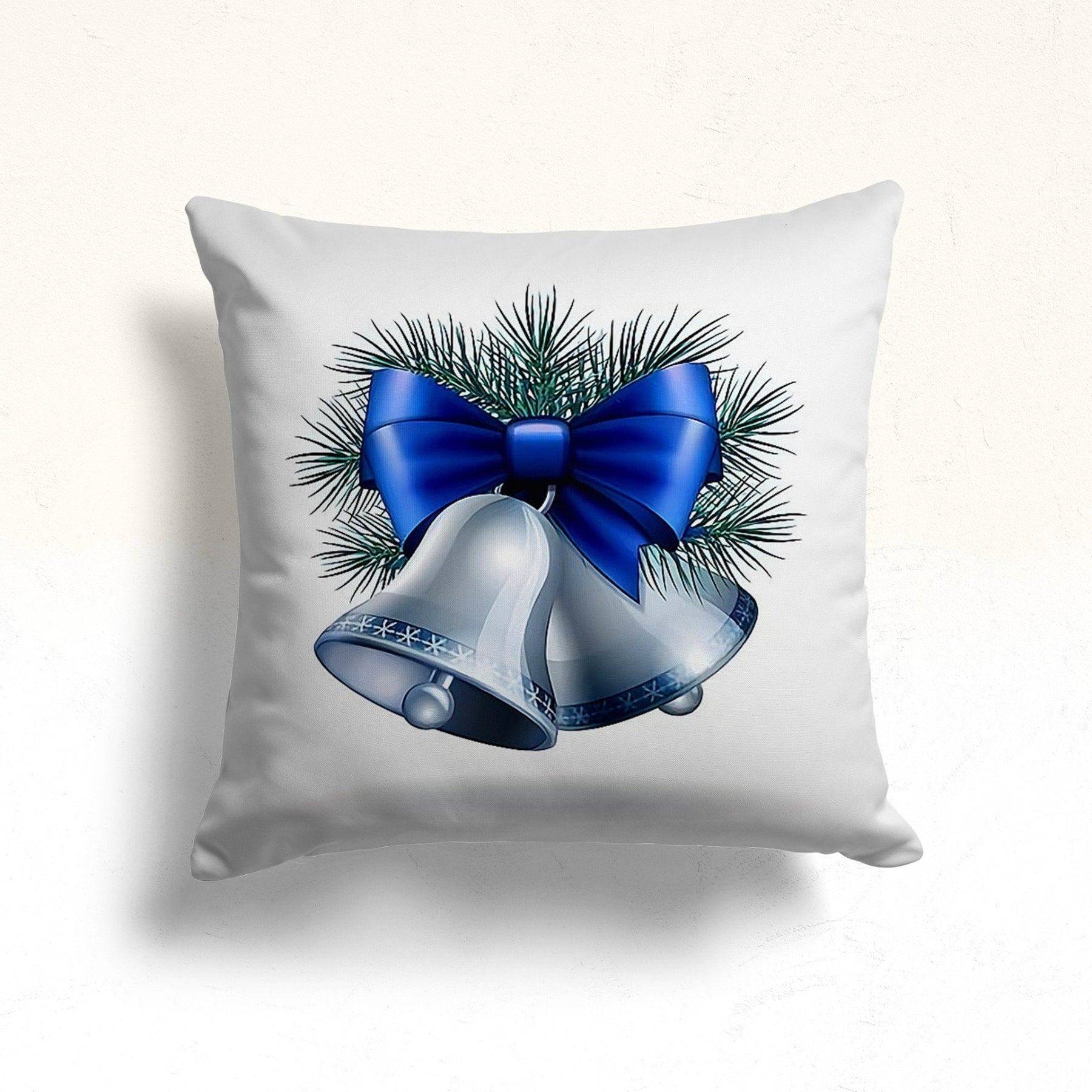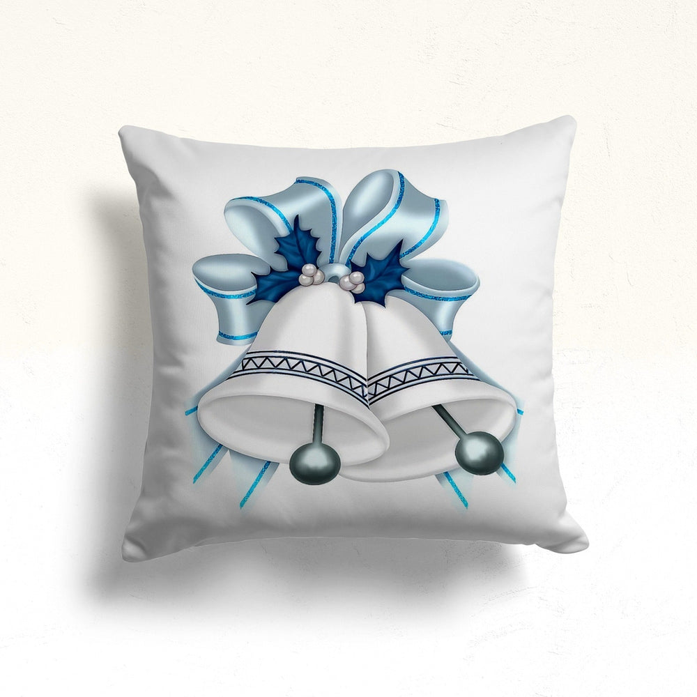 These elegant square decorative rustic farmhouse throw cushion covers with Xmas Bell and Ornament print;