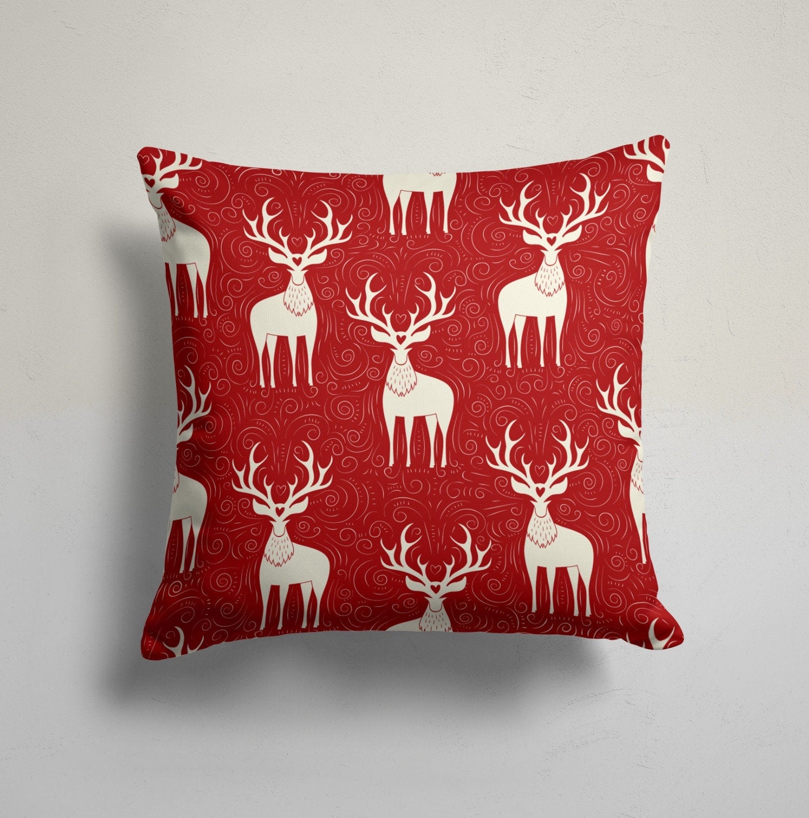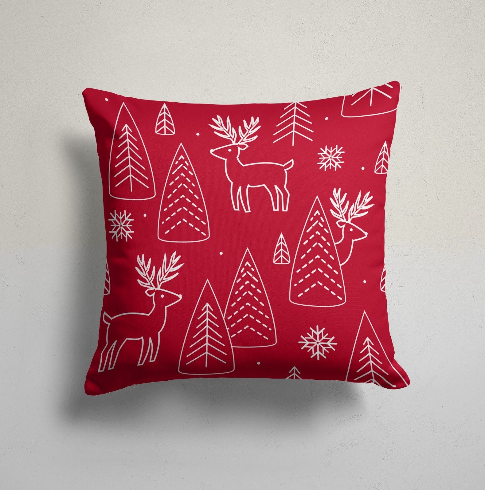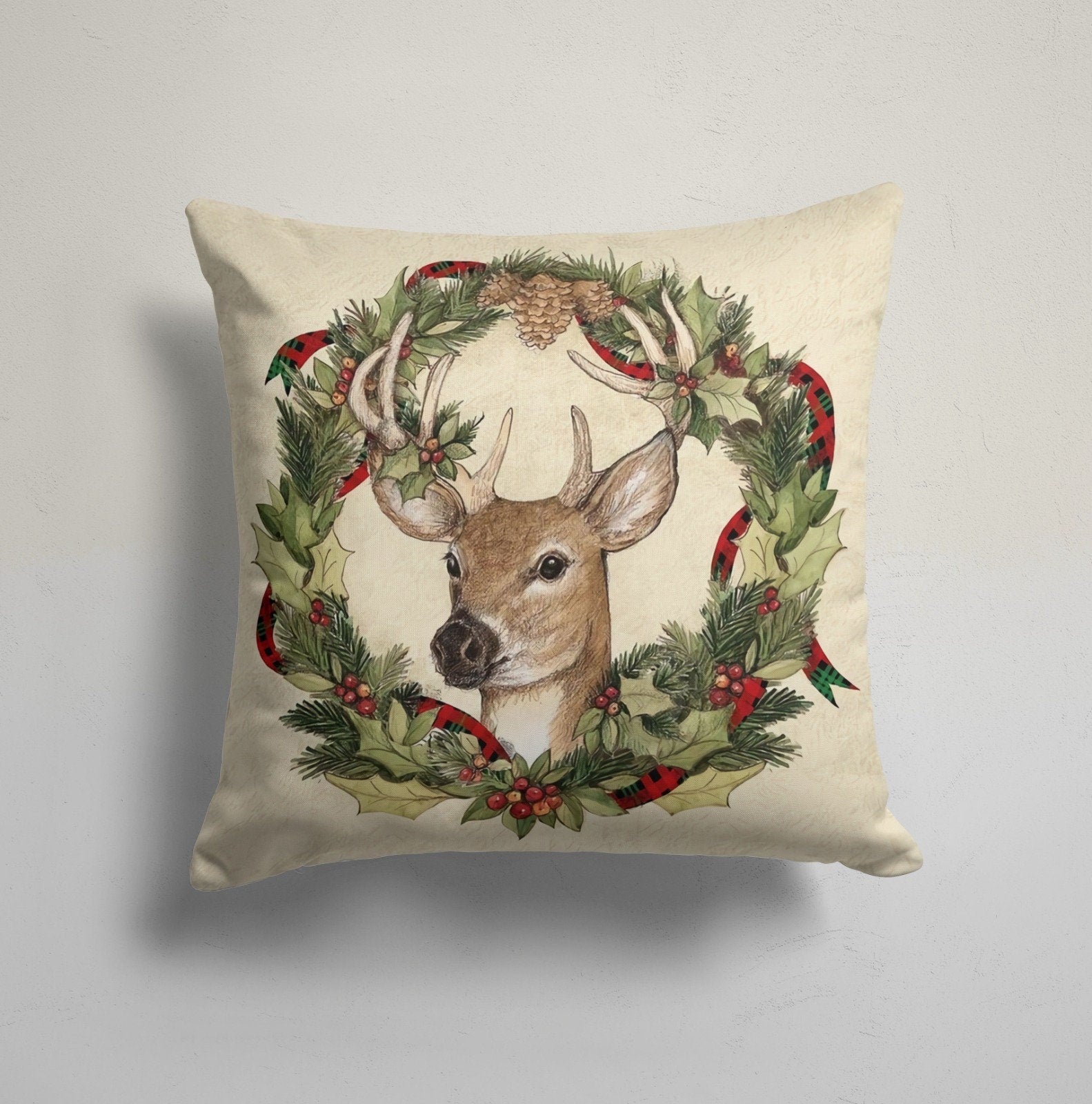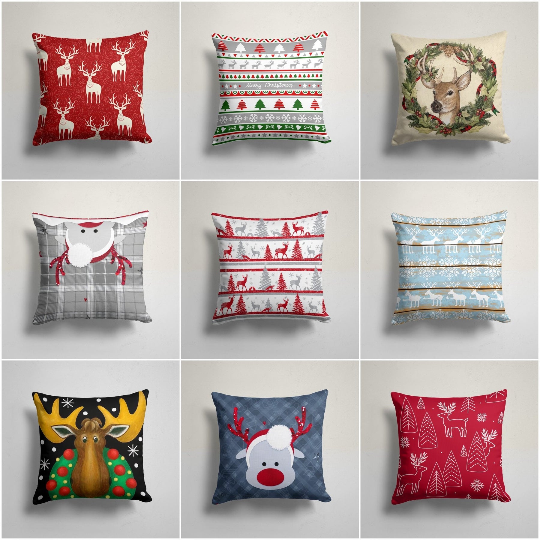 These decorative rustic home decor Xmas cushion covers with deer, floral design and pine tree prints;