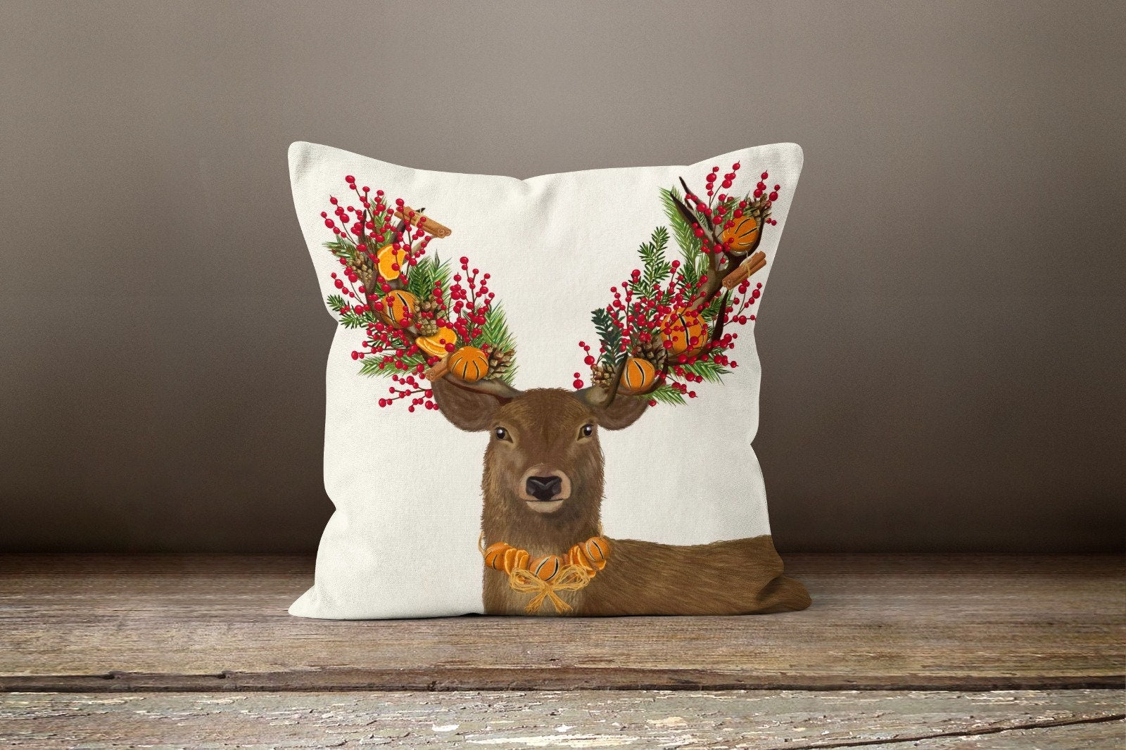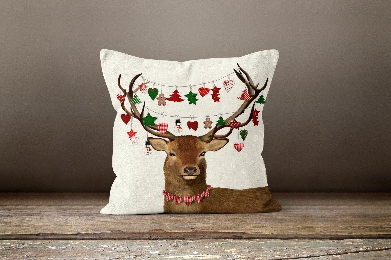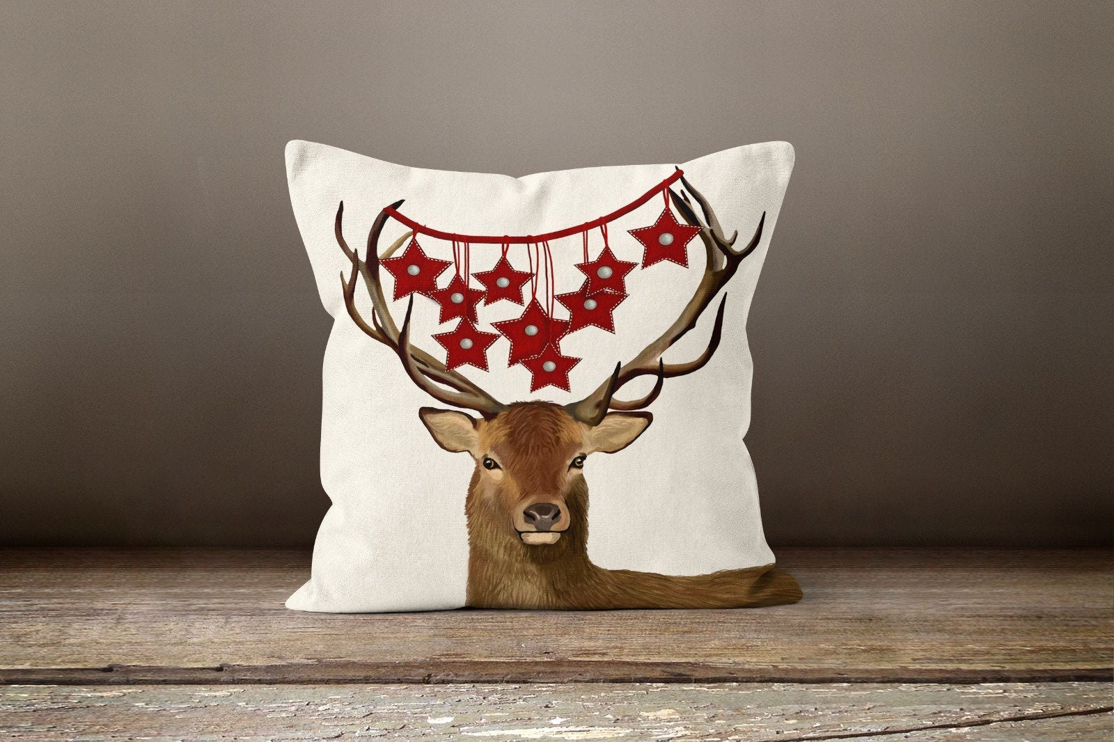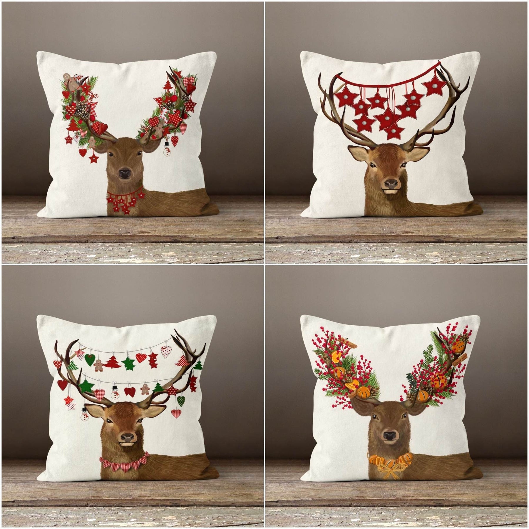 Christmas Pillow Cover|Xmas Deer Cushion Case|Winter Pillow Case|Xmas Home Decor|Xmas Gift Ideas|Deer Design Cover|Merry Xmas Gift Decor