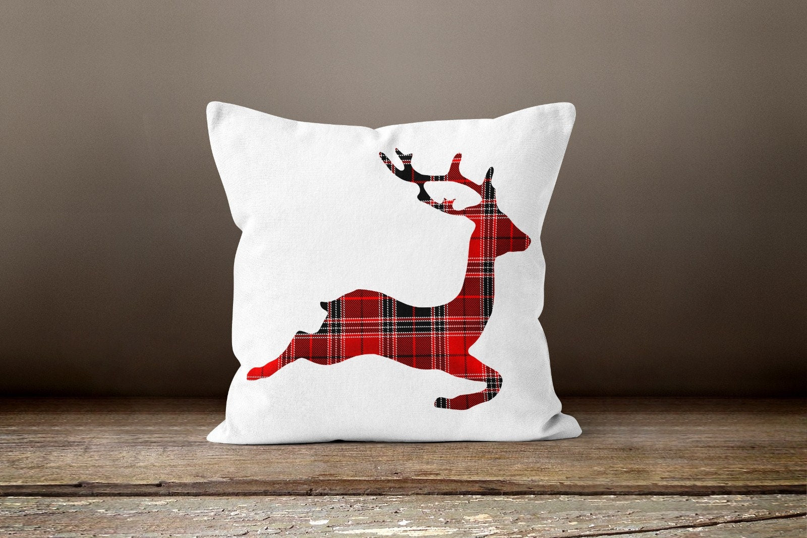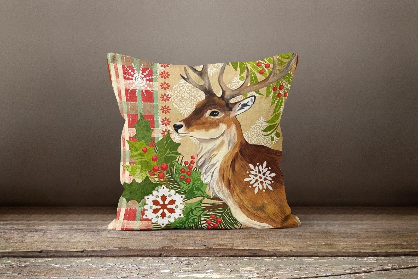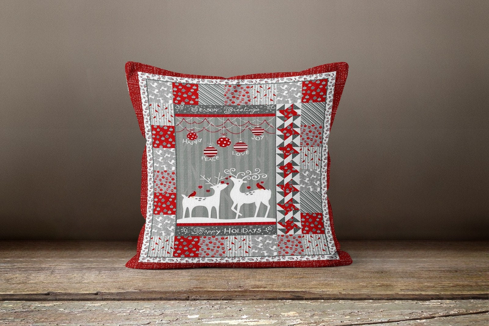 These decorative rustic home decor red Xmas cushion covers with deers and Merry Chrstmas print;