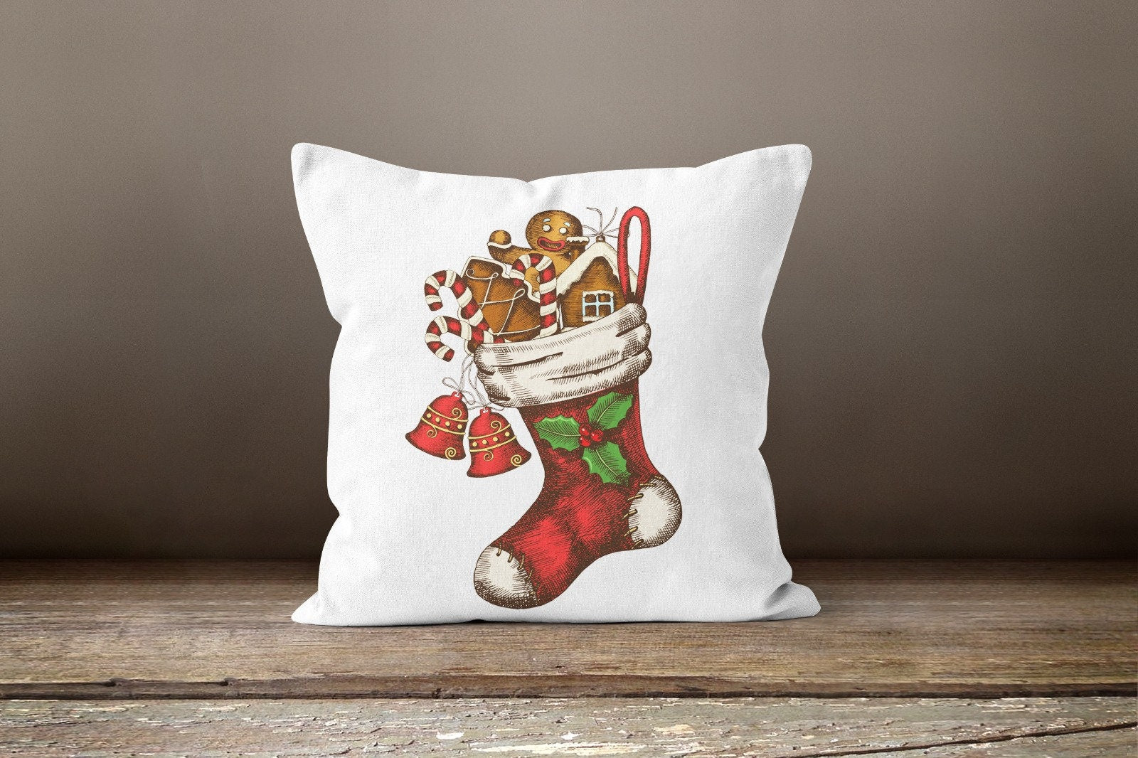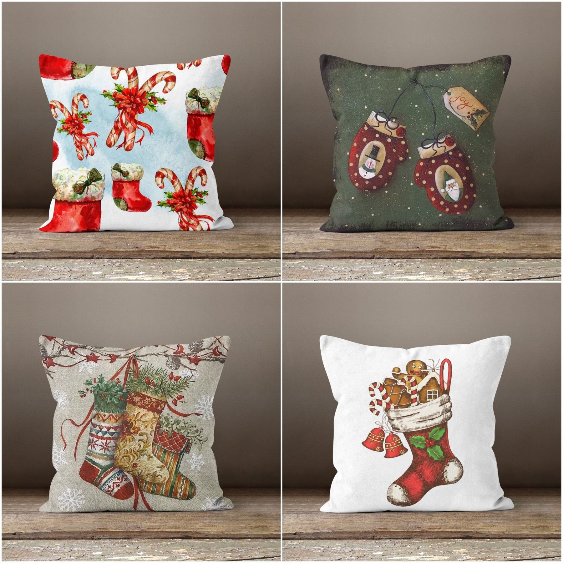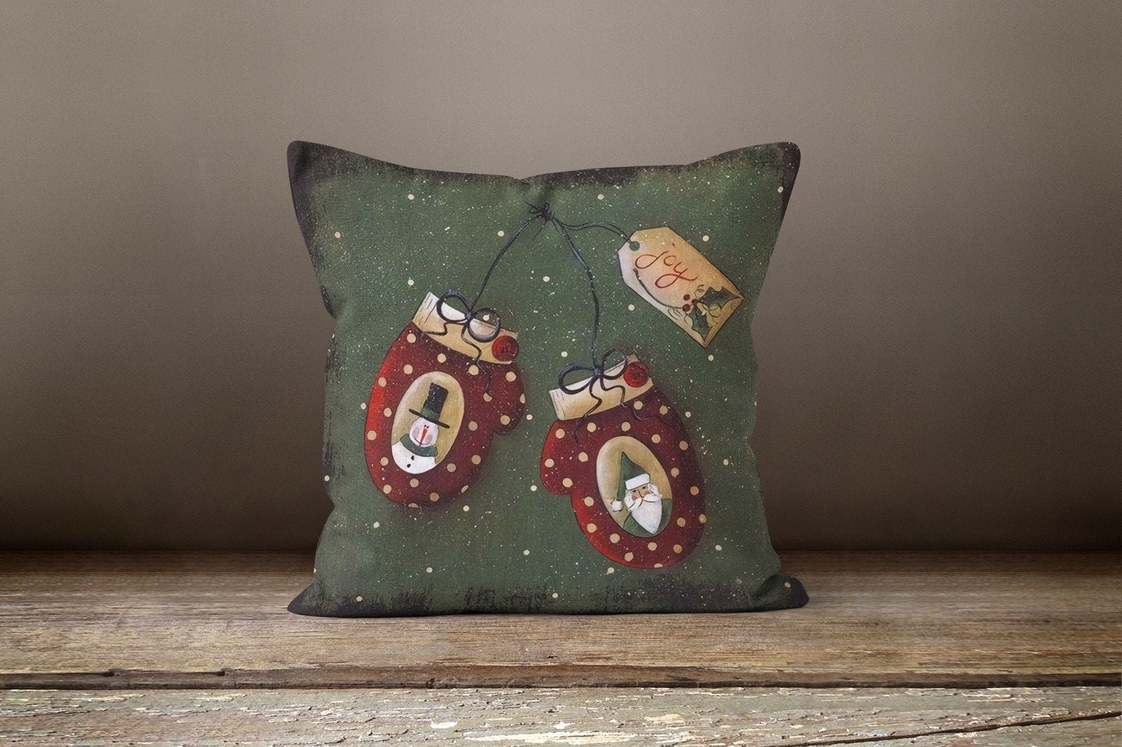 These elegant square decorative rustic farmhouse throw cushion covers with Xmas socks and gloves;
