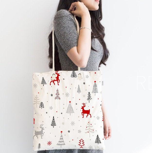 This elegant modern fabric bag with Xmas design, Xmas Tree, Xmas Deer;