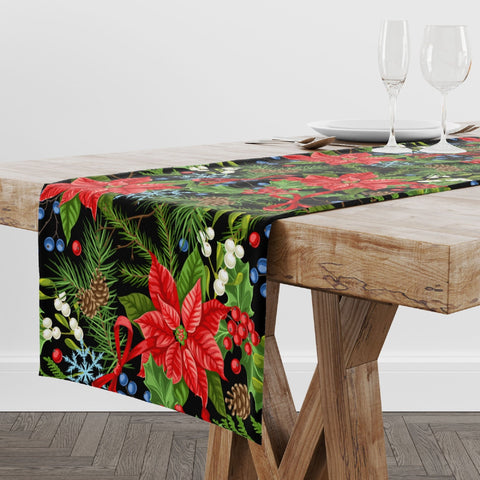 Poinsettia and Snowflake Print Runner