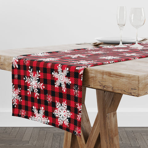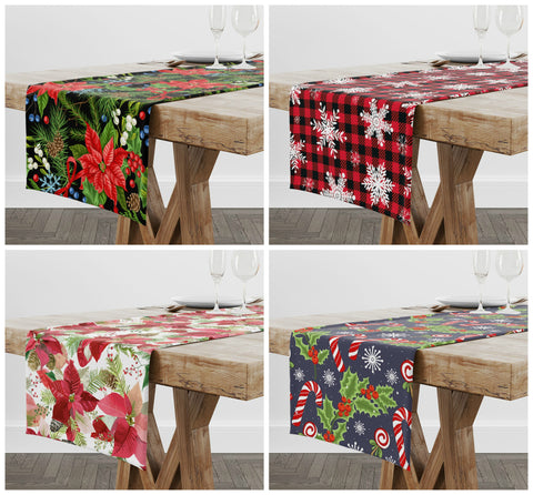 Christmas Table Runners|Xmas Flower Table Runner|Winter Trend Home Decor|Poinsettia Table Decor|Xmas Snowflake Decor|Plaid Runner Tablecloth