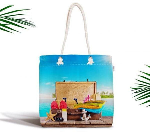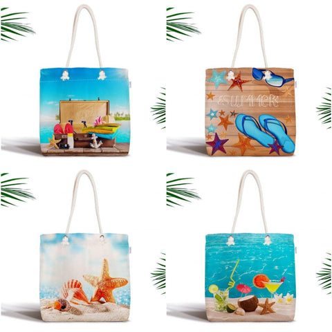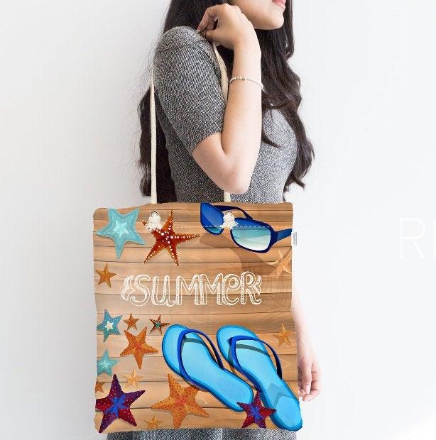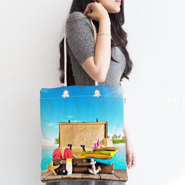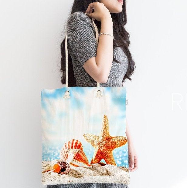 This elegant modern colorful coastal design digital printed fabric tote/messenger bag;