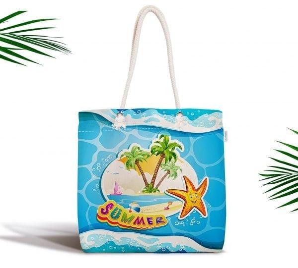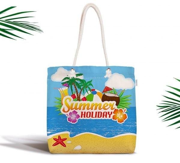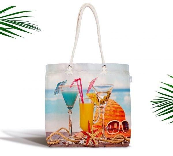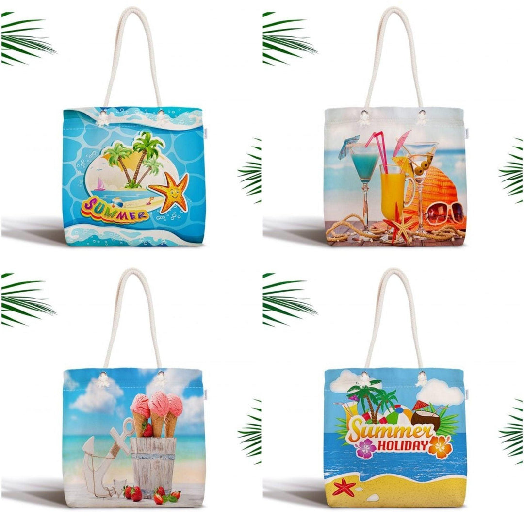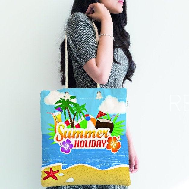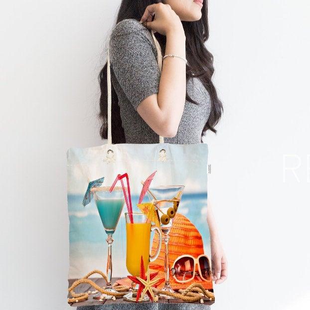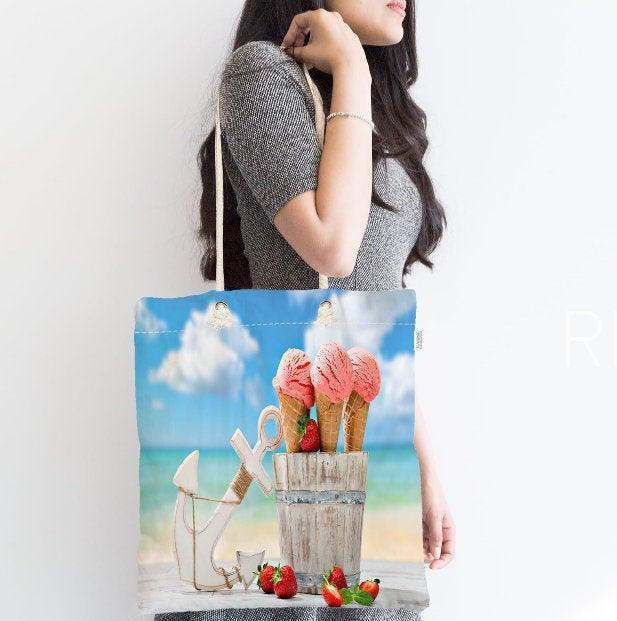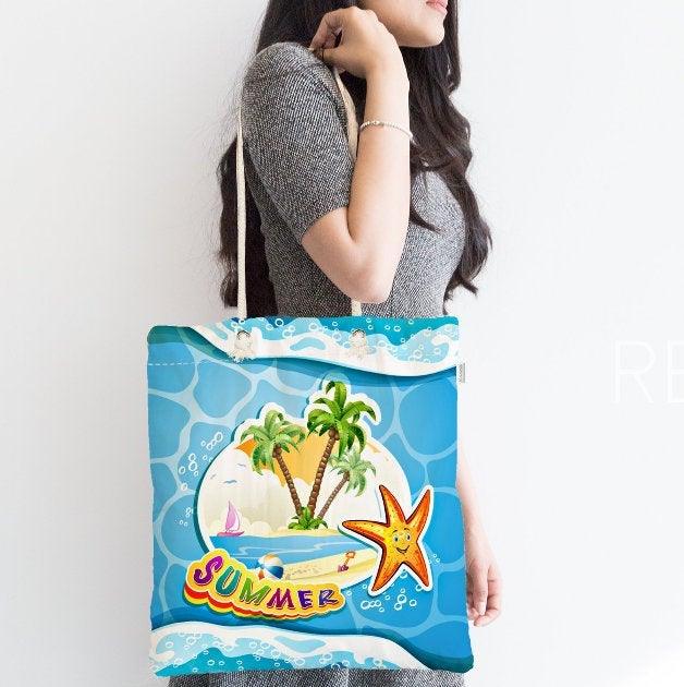 This elegant modern colorful coastal design digital printed fabric tote/messenger bag;