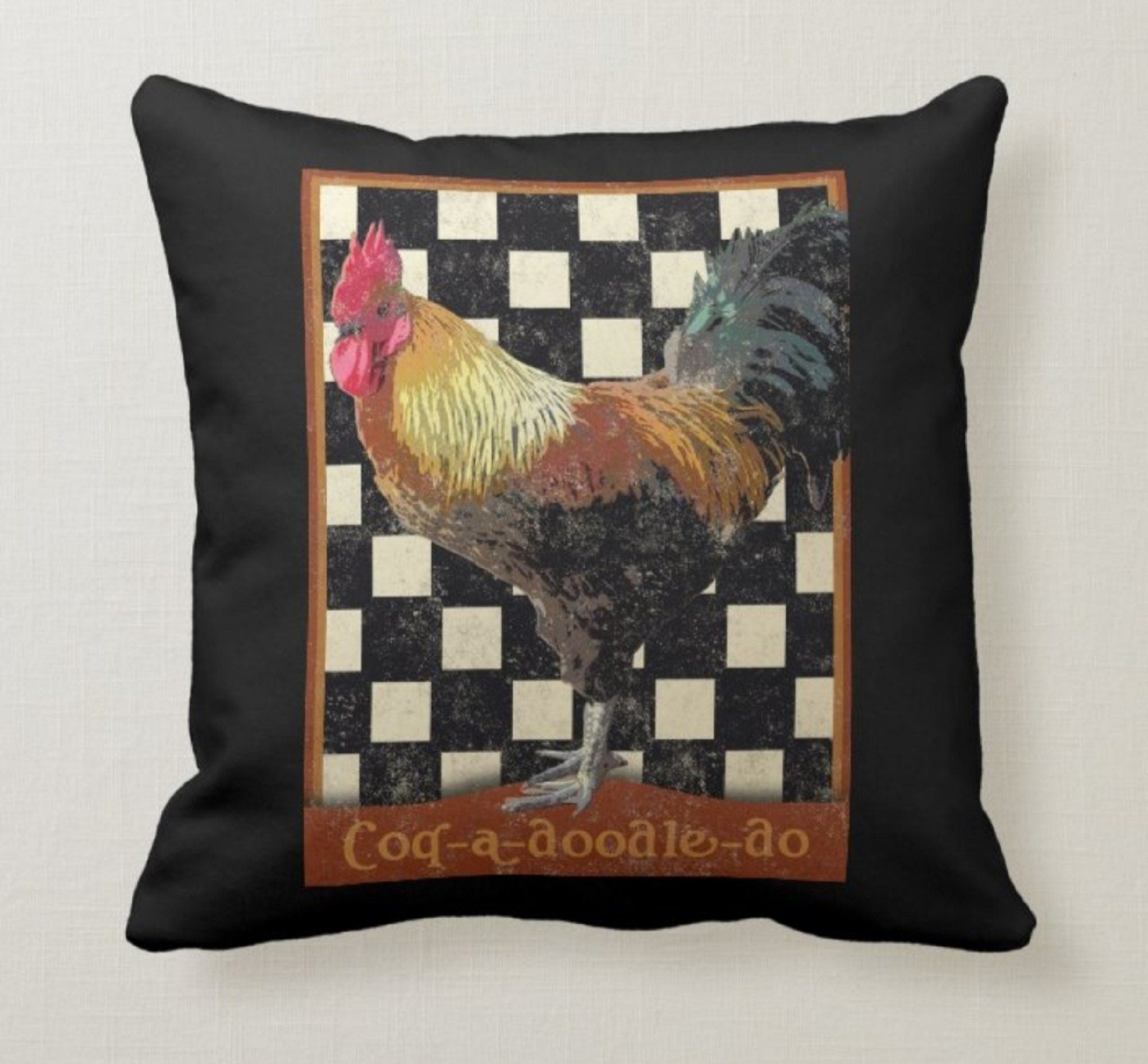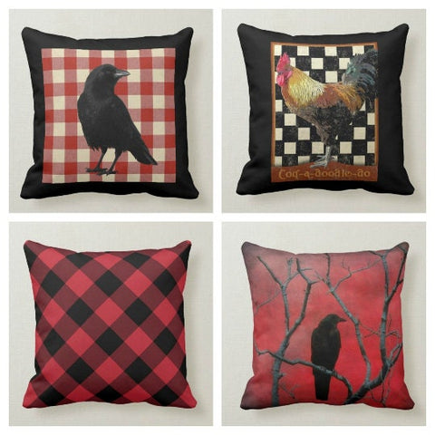 These elegant square decorative rustic farmhouse throw cushion covers with crows and rooster;