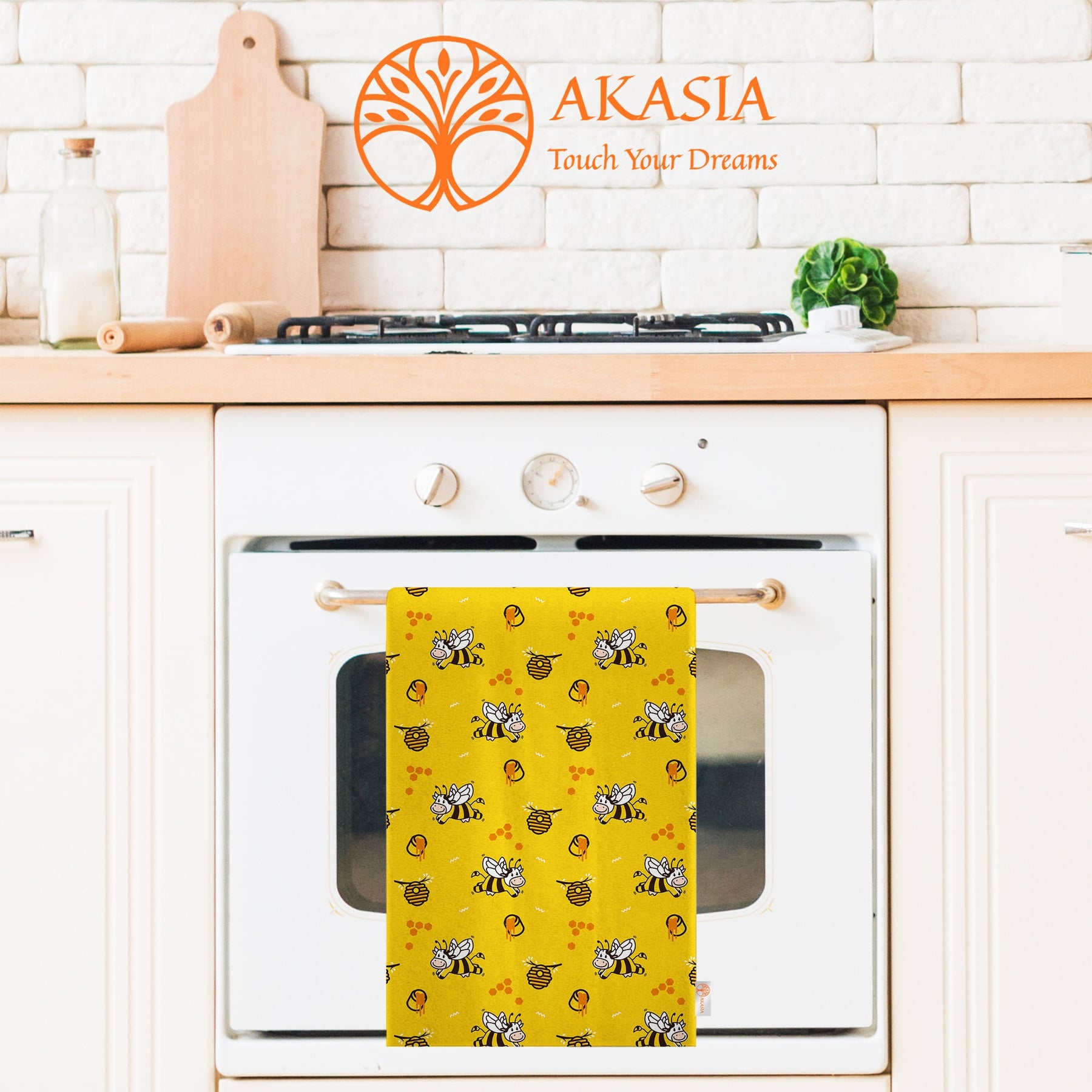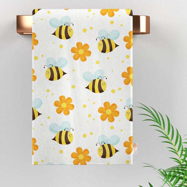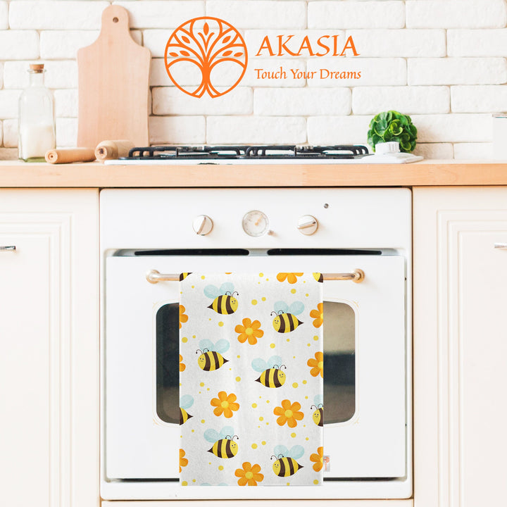 These elegant decorative rectangle kitchen/dish/hand/tea towels with bee and daisy print;
