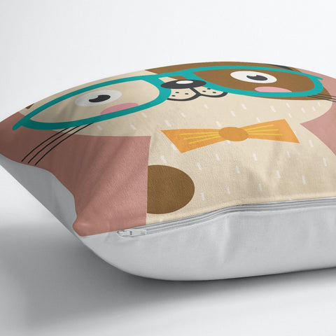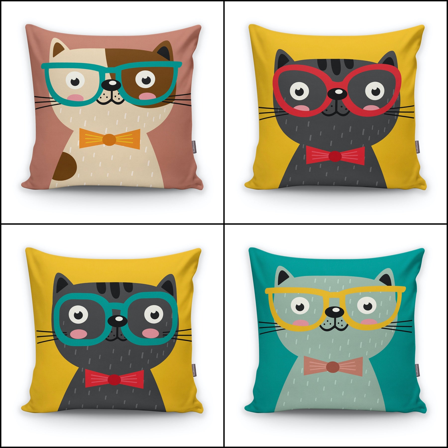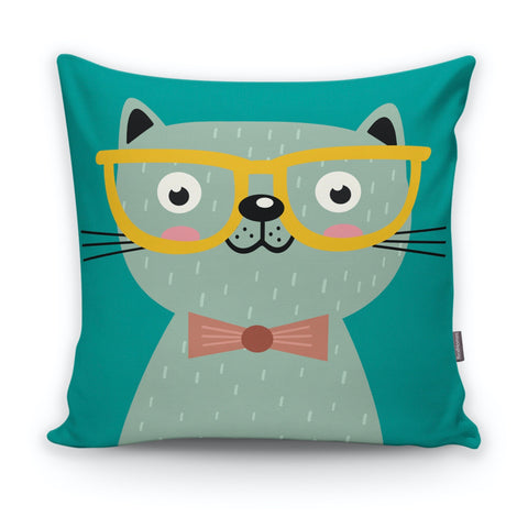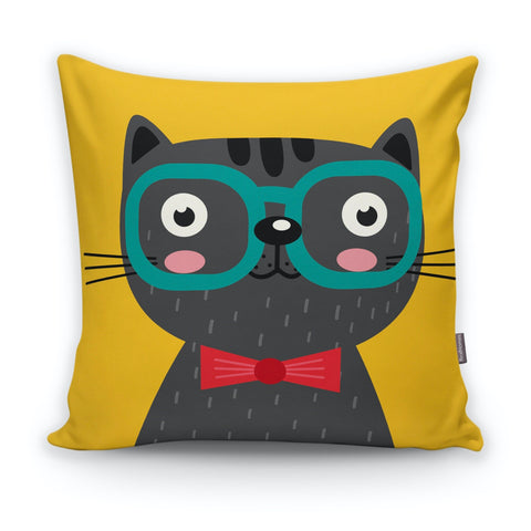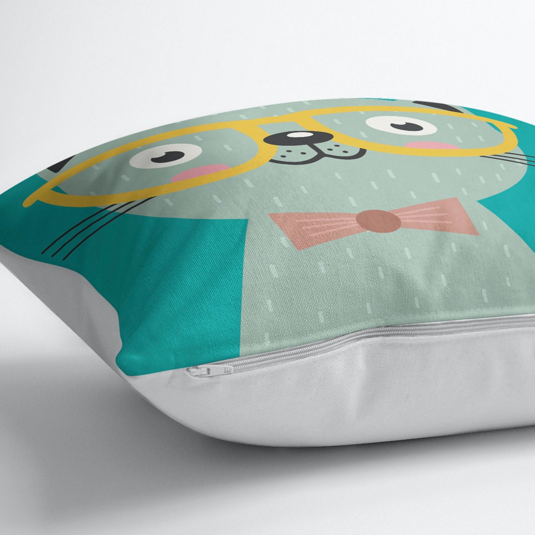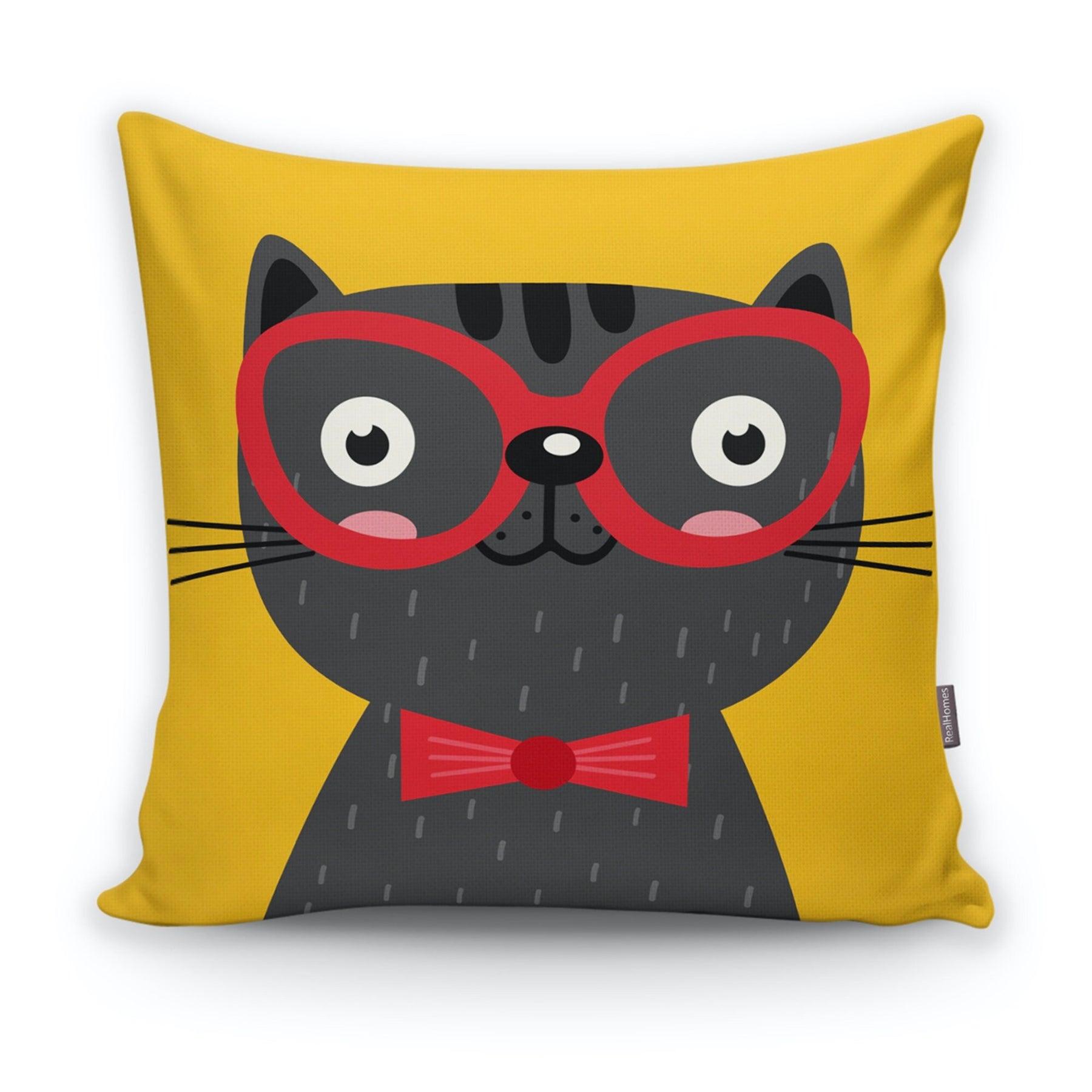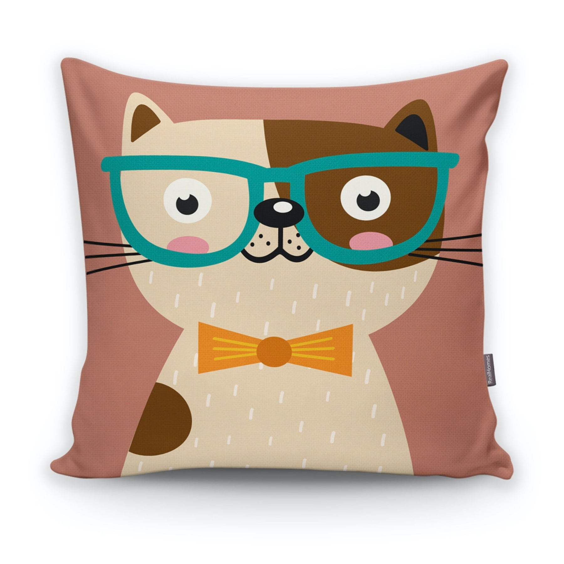 This children's throw cushion cover with digital print cartoon cat with eyeglasses;