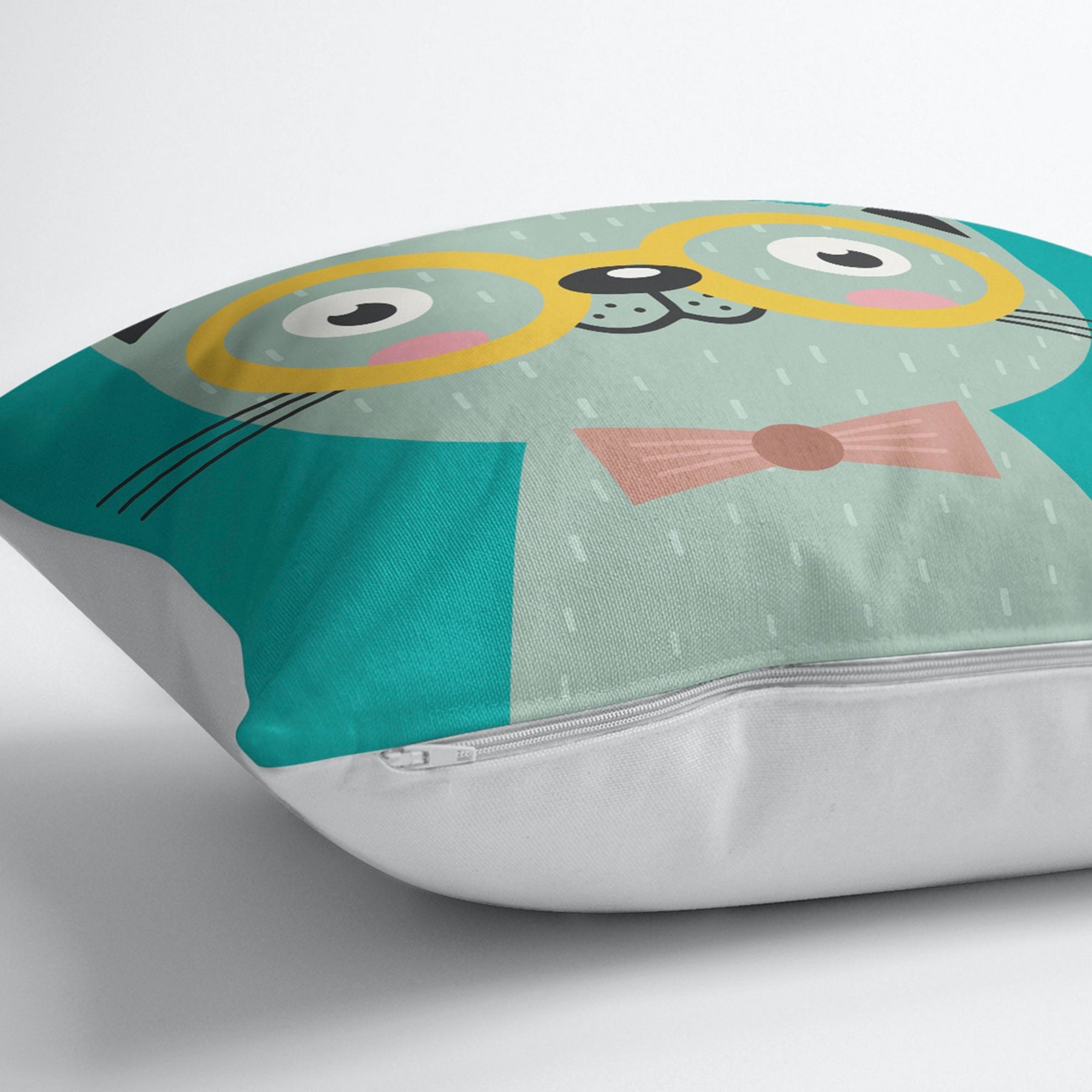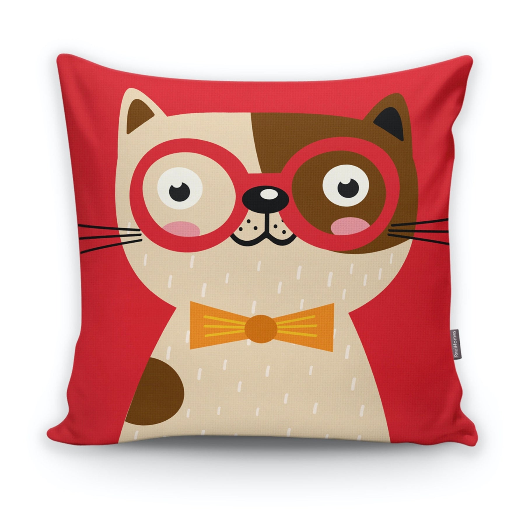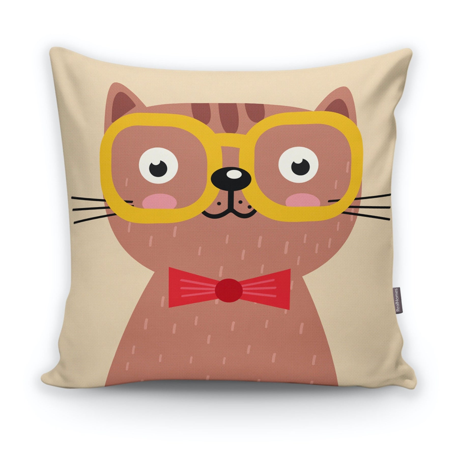 This children's throw cushion cover with digital print cartoon cat with eyeglasses;