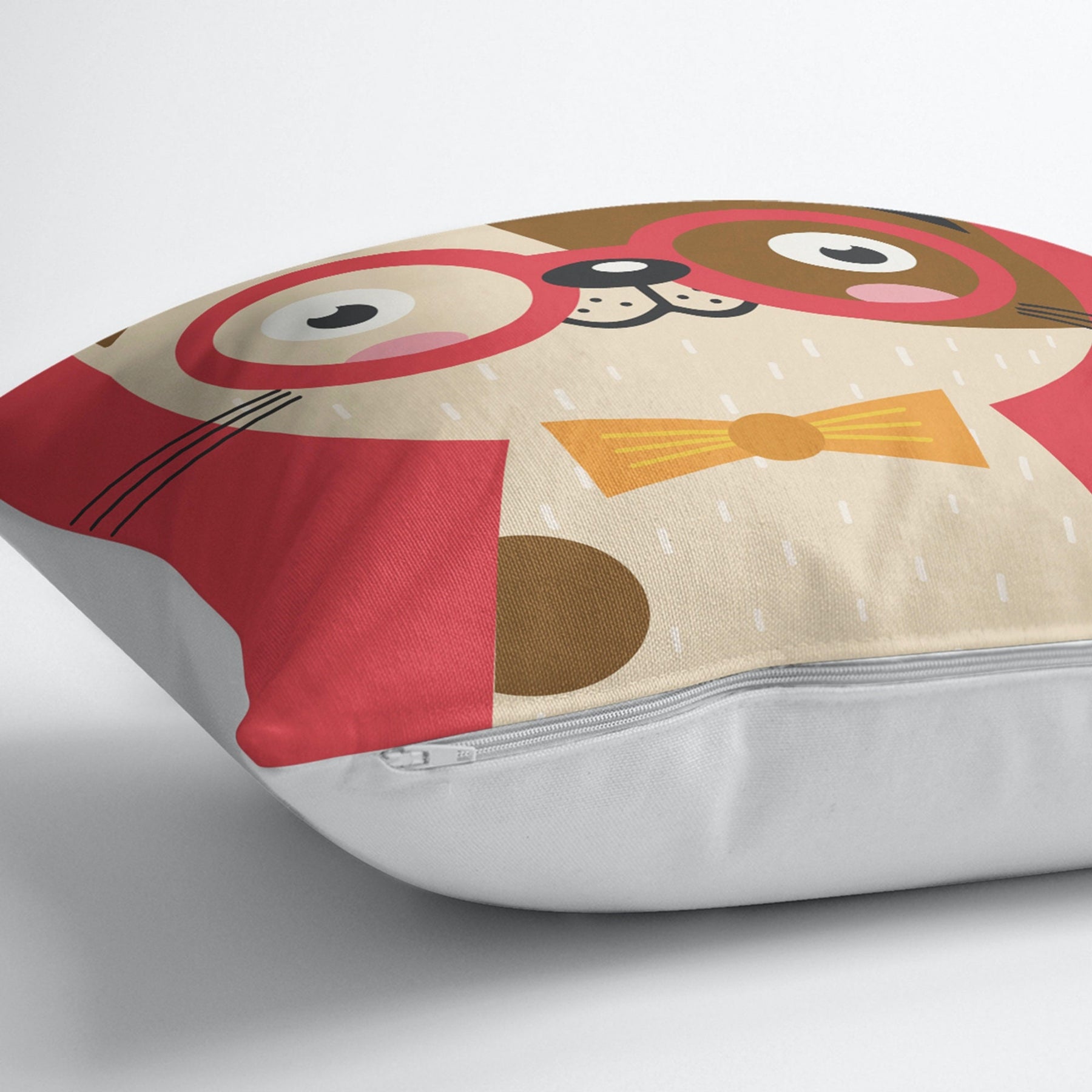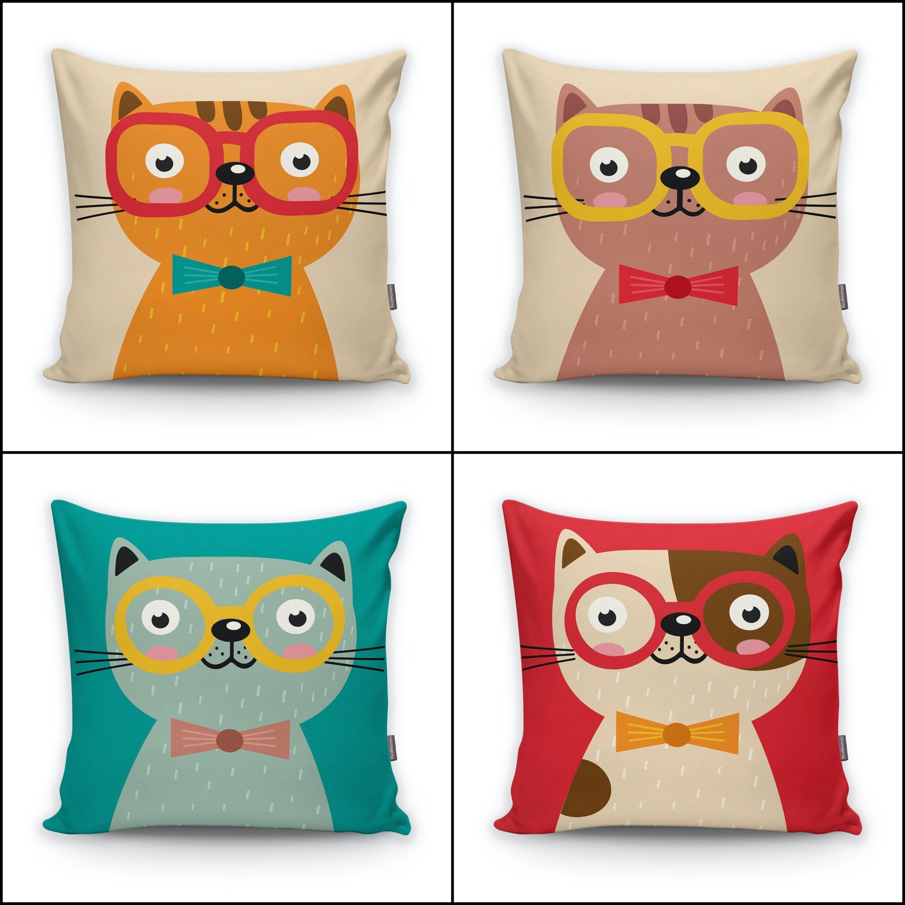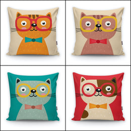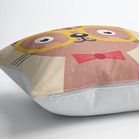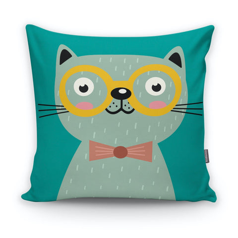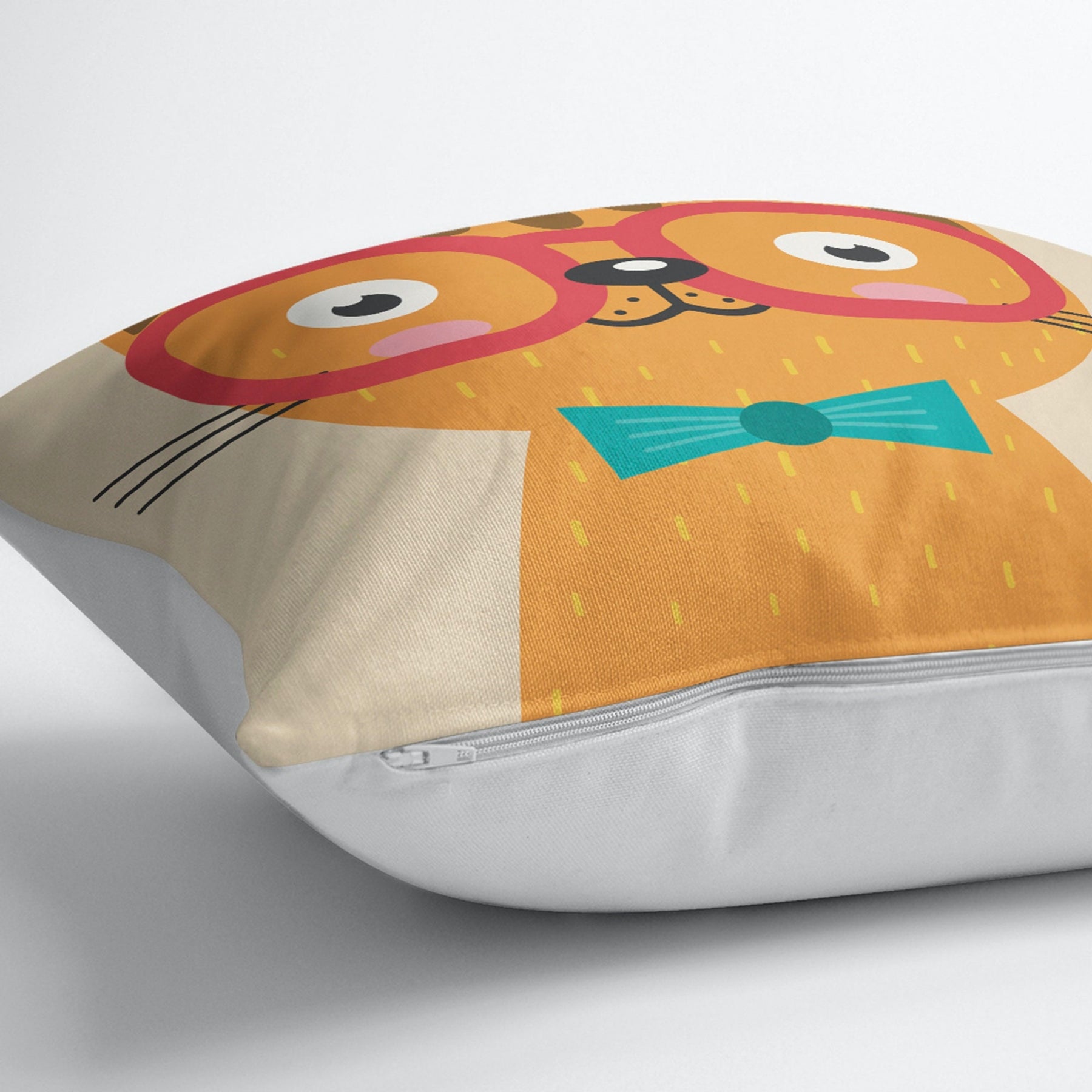 This children's throw cushion cover with digital print cartoon cat with eyeglasses;