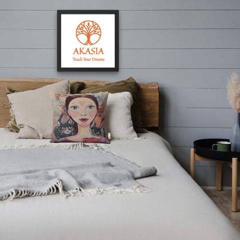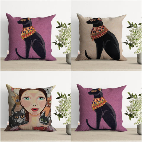 These elegant square throw pillow covers with colorful cute cats and pretty girl;