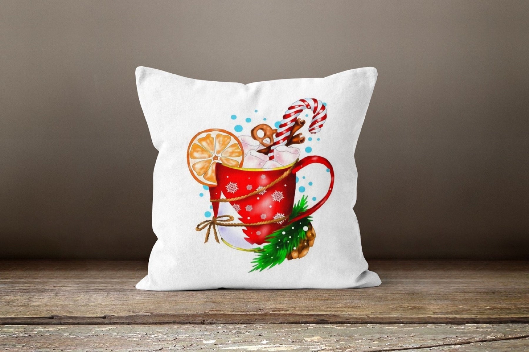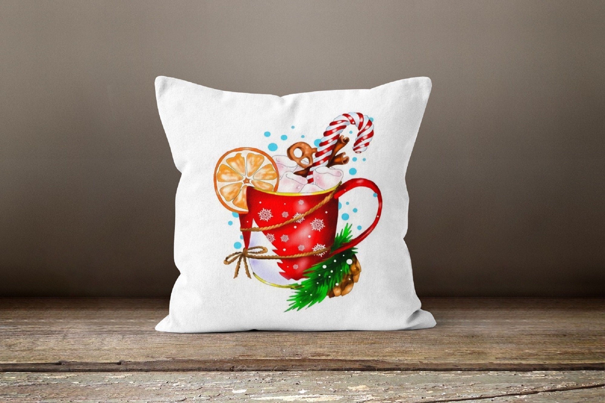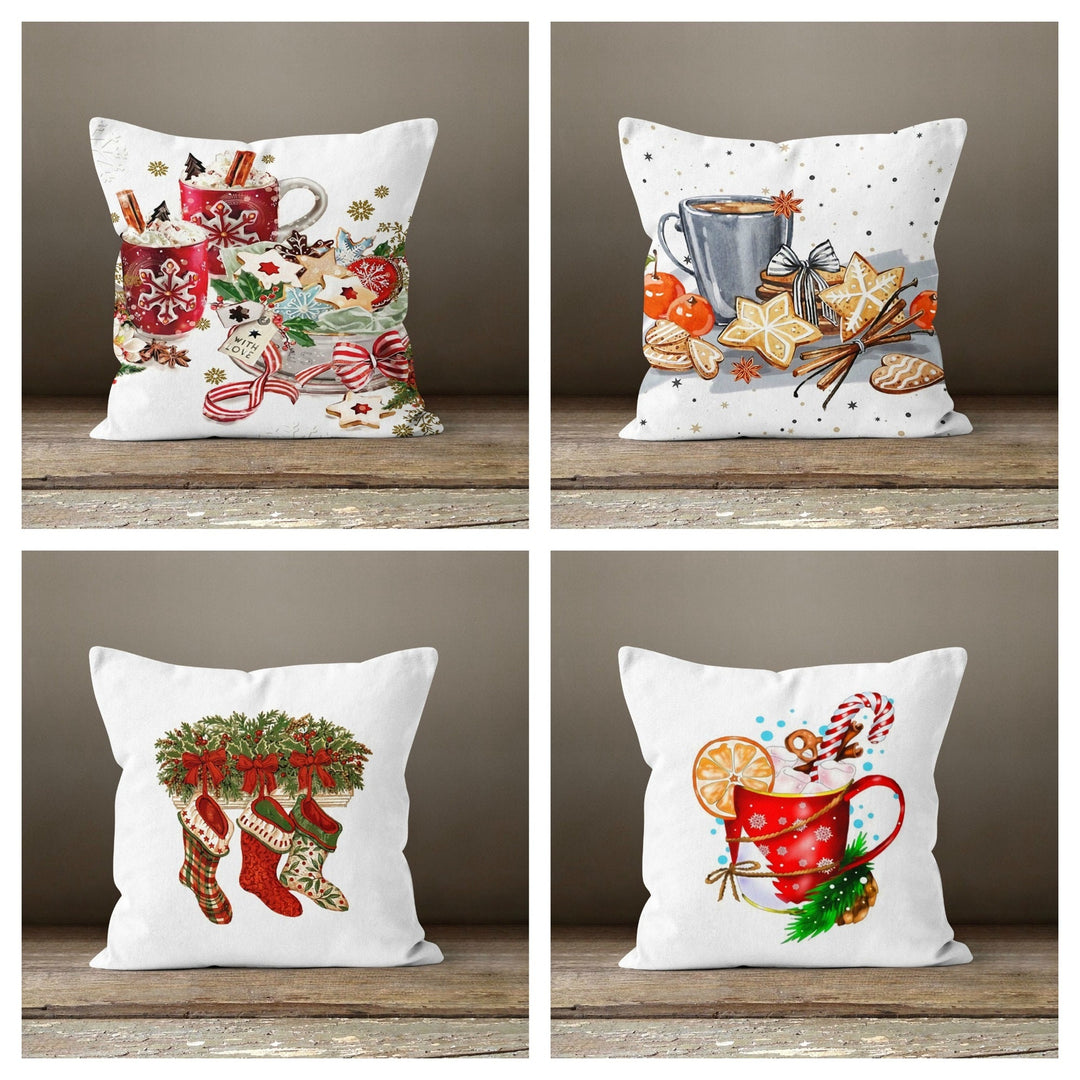 These elegant square decorative rustic farmhouse throw cushion covers with cup and socks;