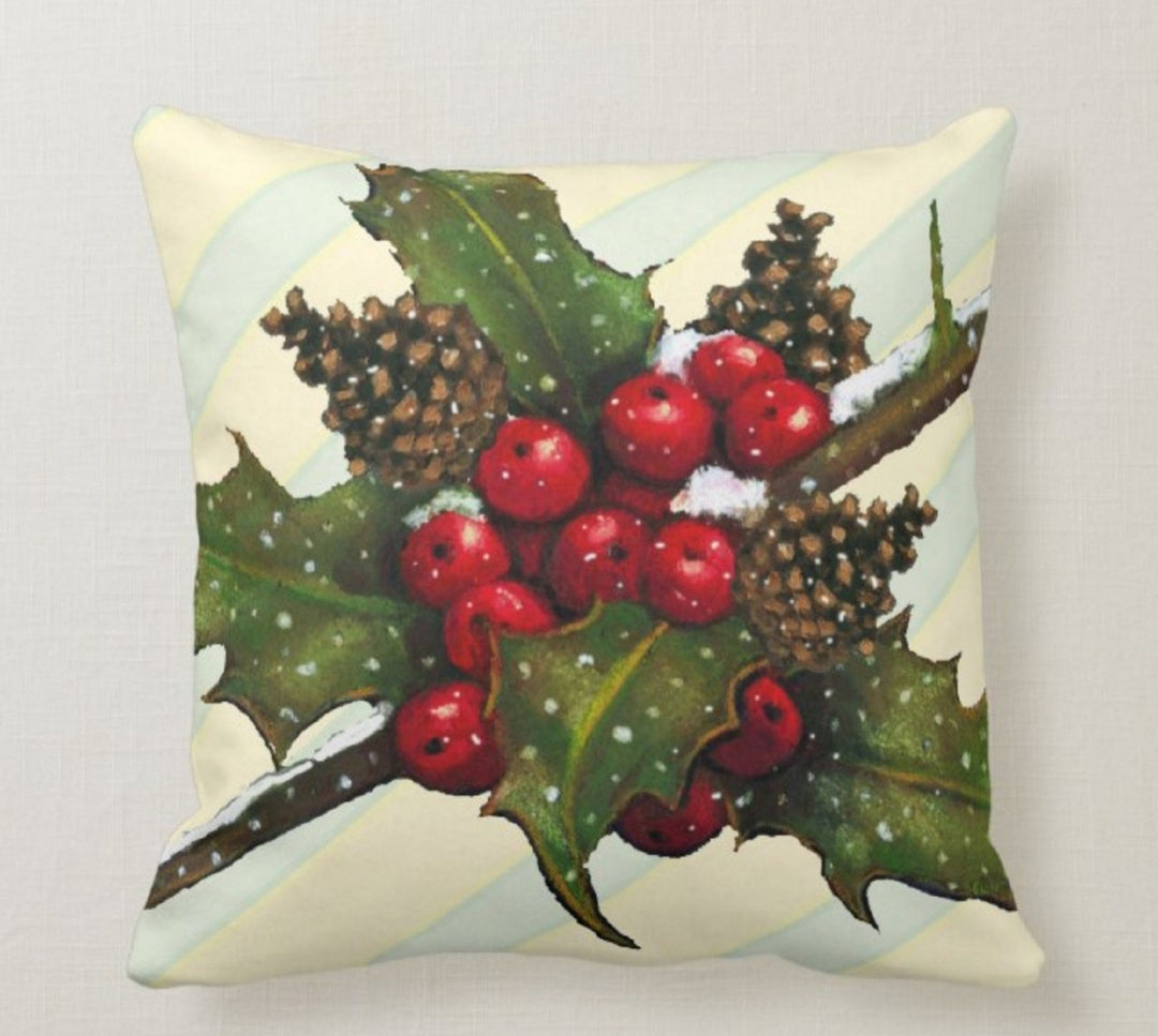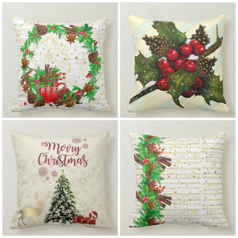 Christmas Pillow Covers|Merry Xmas Decor|Winter Pillow Case|Xmas Gift Ideas|Red Berry Pillow Cover|Housewarming Gift|Xmas Pinecones Decor