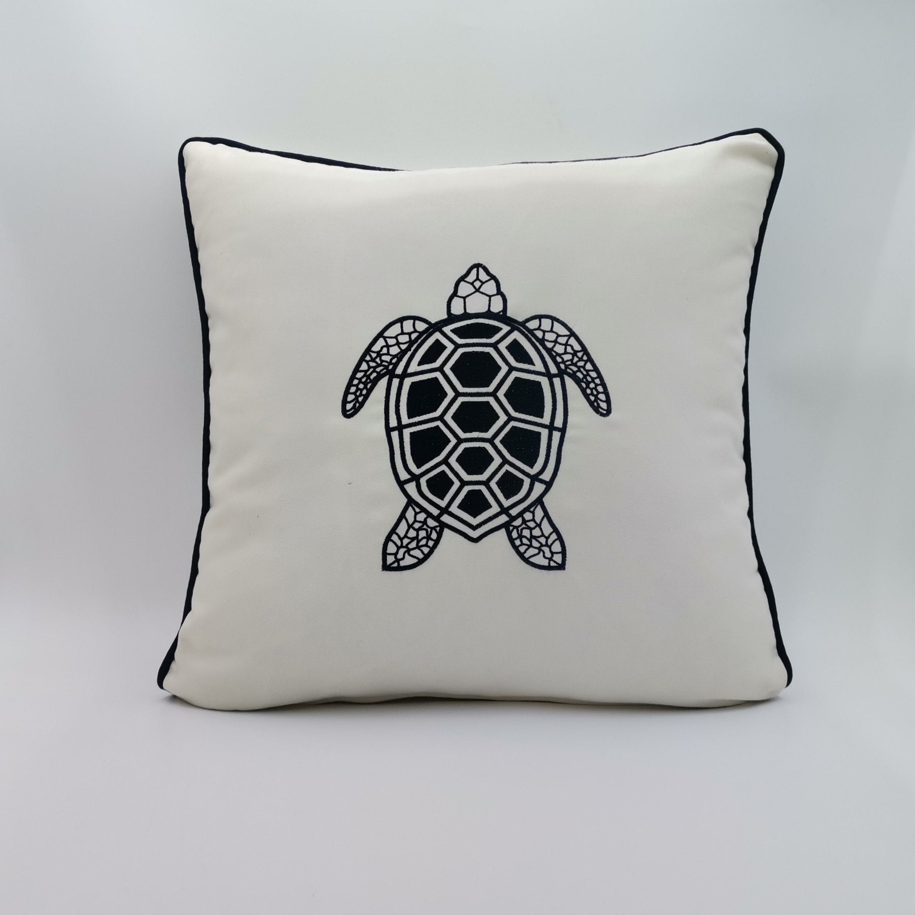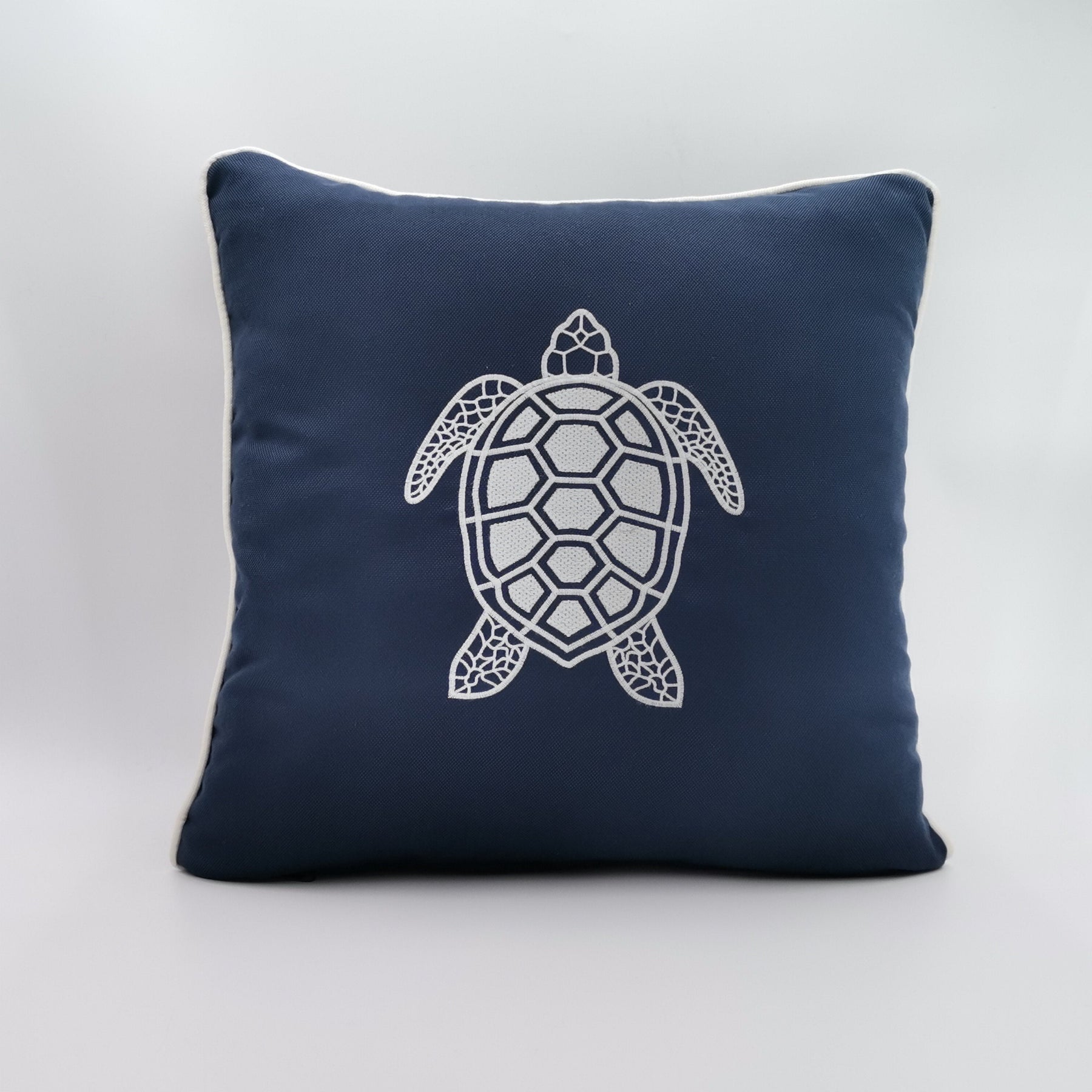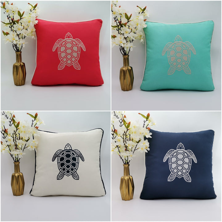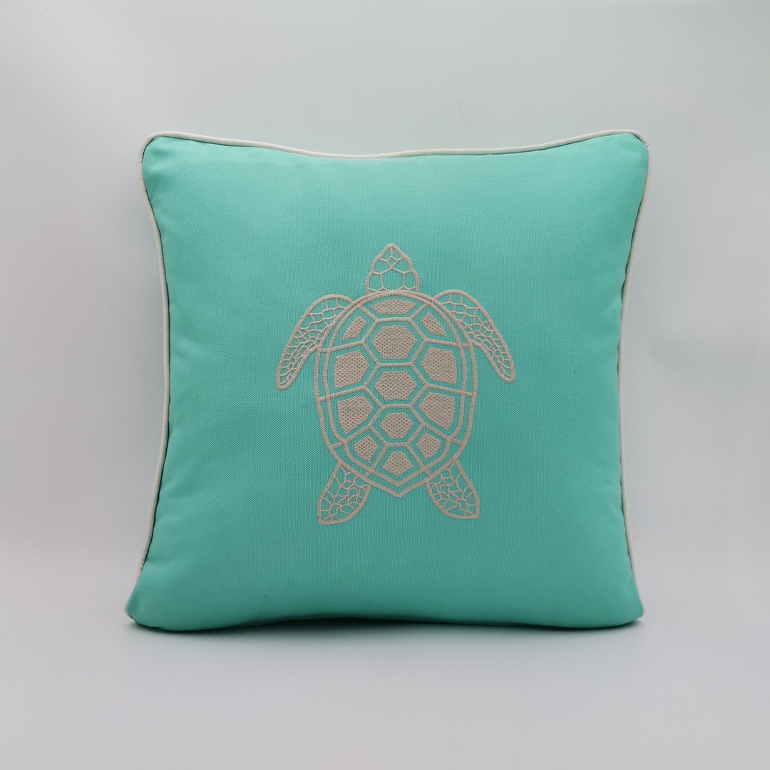 These elegant stylish and high quality embroidered square outdoor/indoor throw pillow covers with special hand-sewn sea turtle;