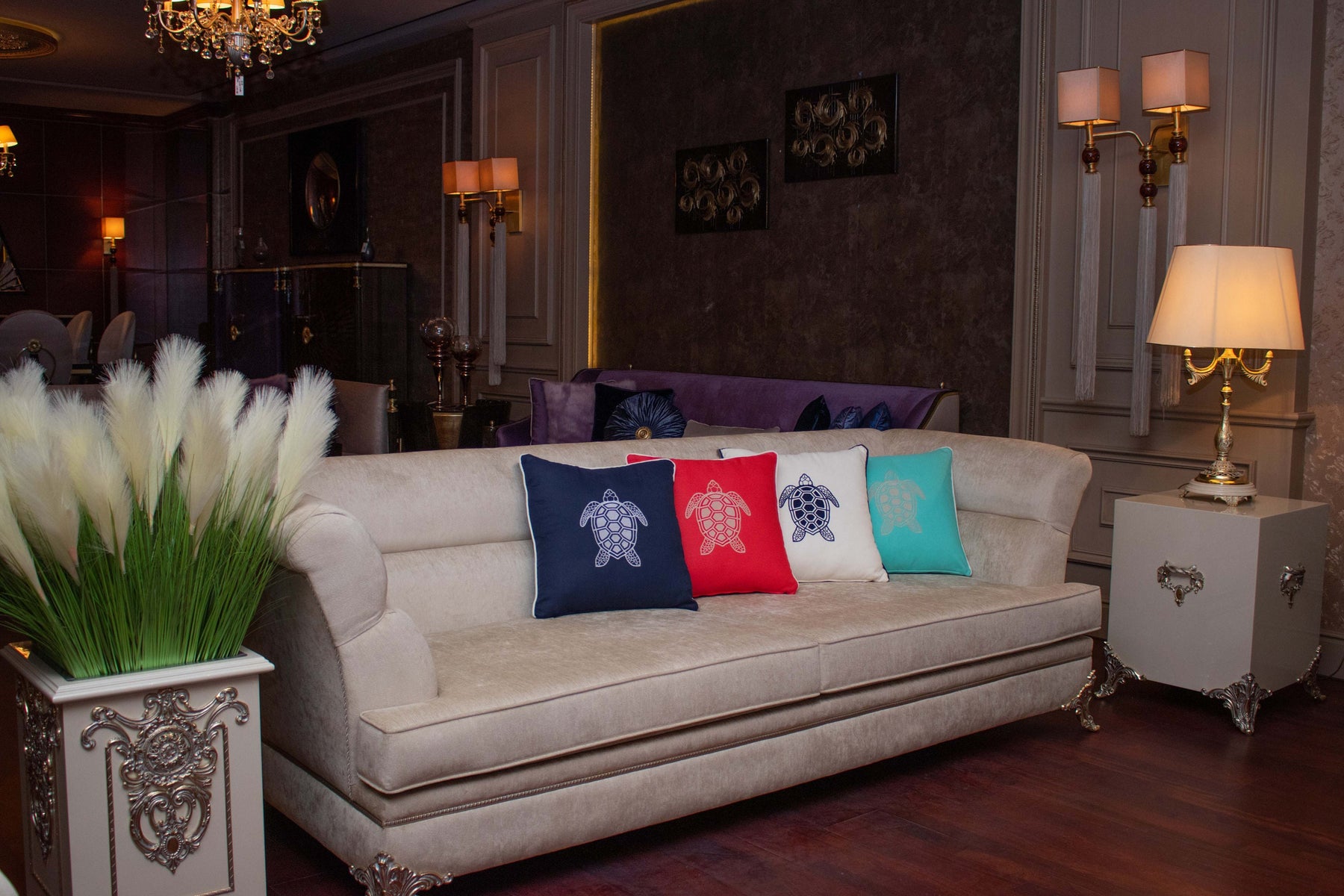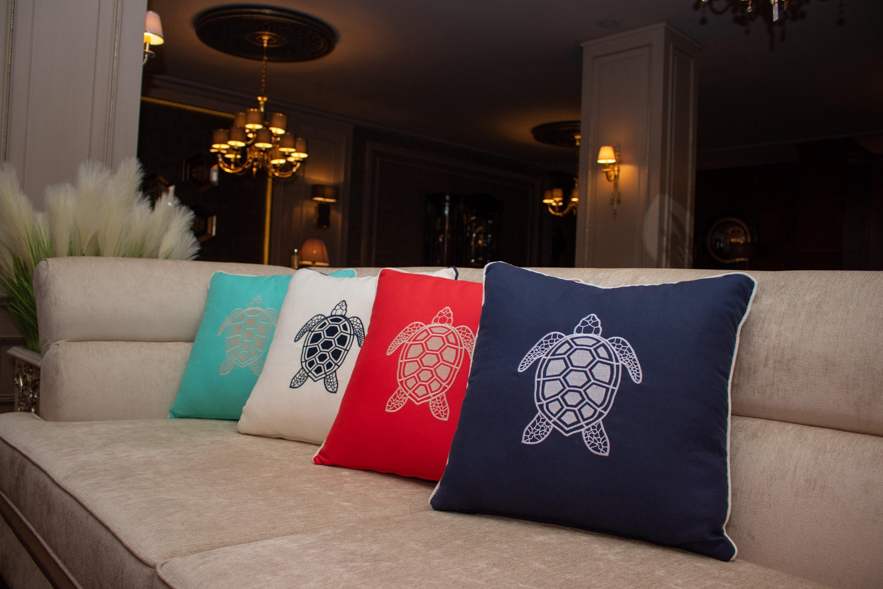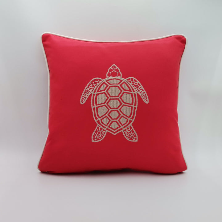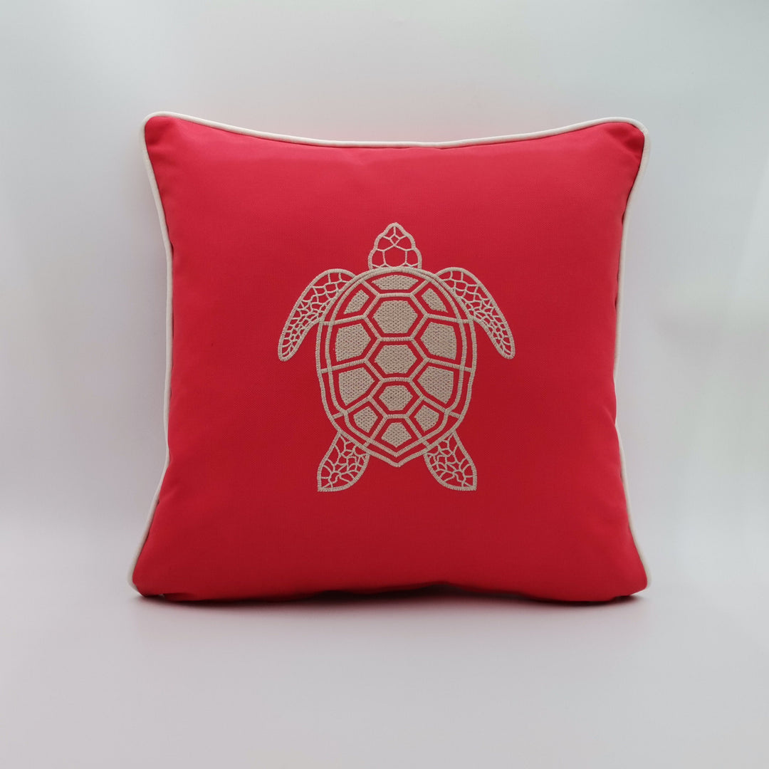 These elegant stylish and high quality embroidered square outdoor/indoor throw pillow covers with special hand-sewn sea turtle;