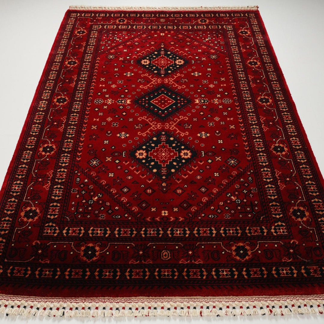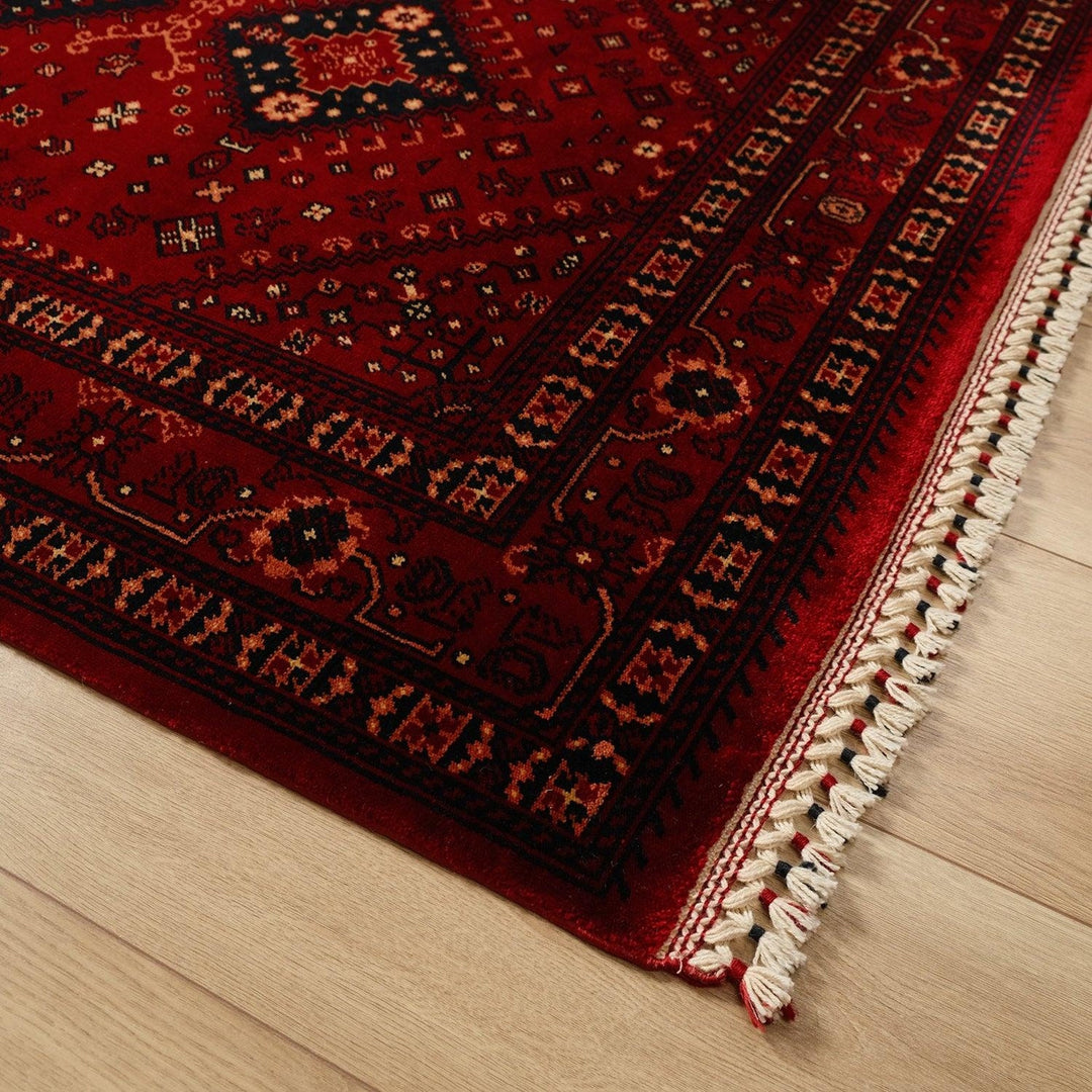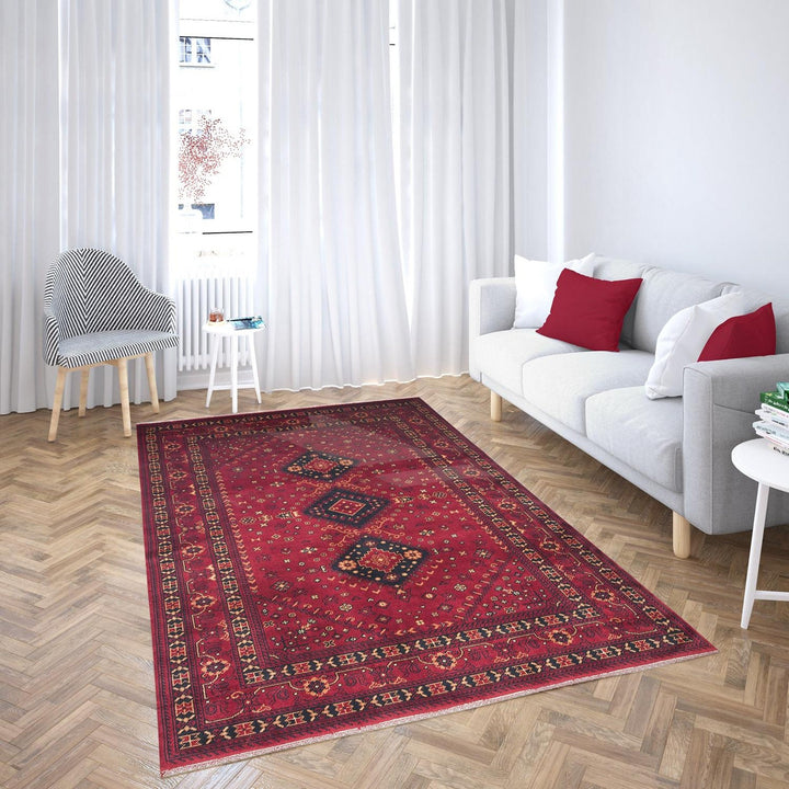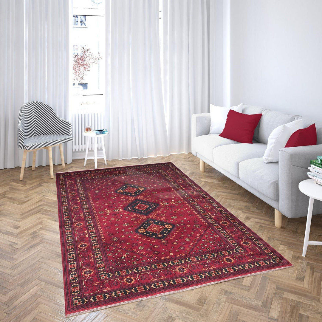 This elegant Machine Woven and Machine-Washable floor rug with Afghan Pattern;