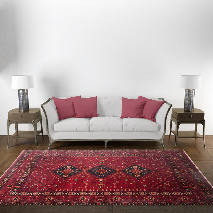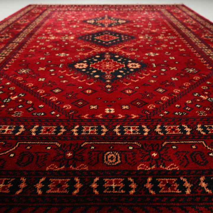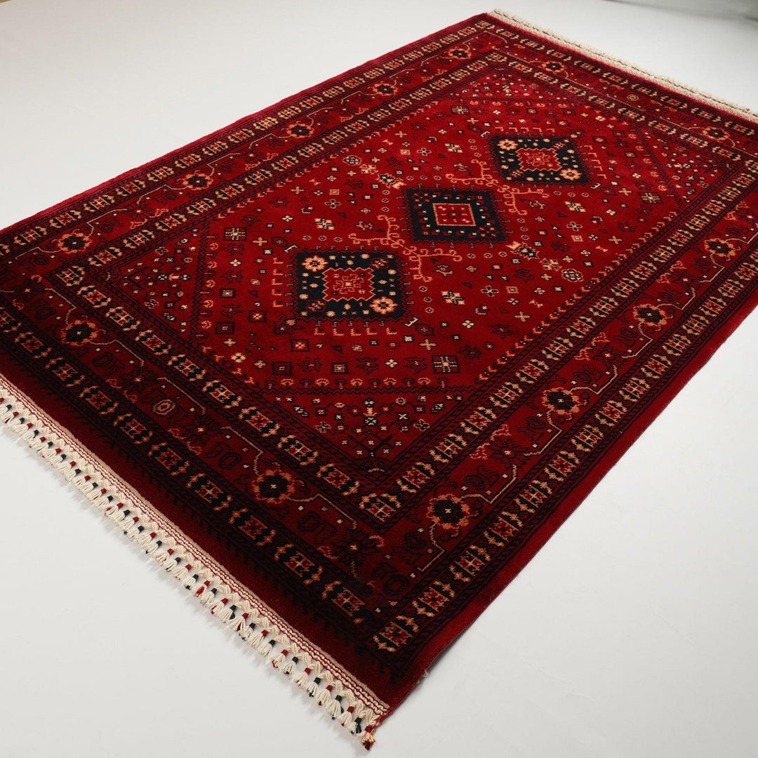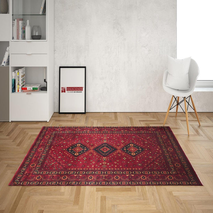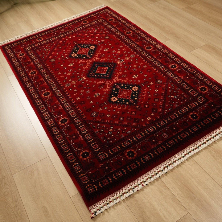 This elegant Machine Woven and Machine-Washable floor rug with Afghan Pattern;
