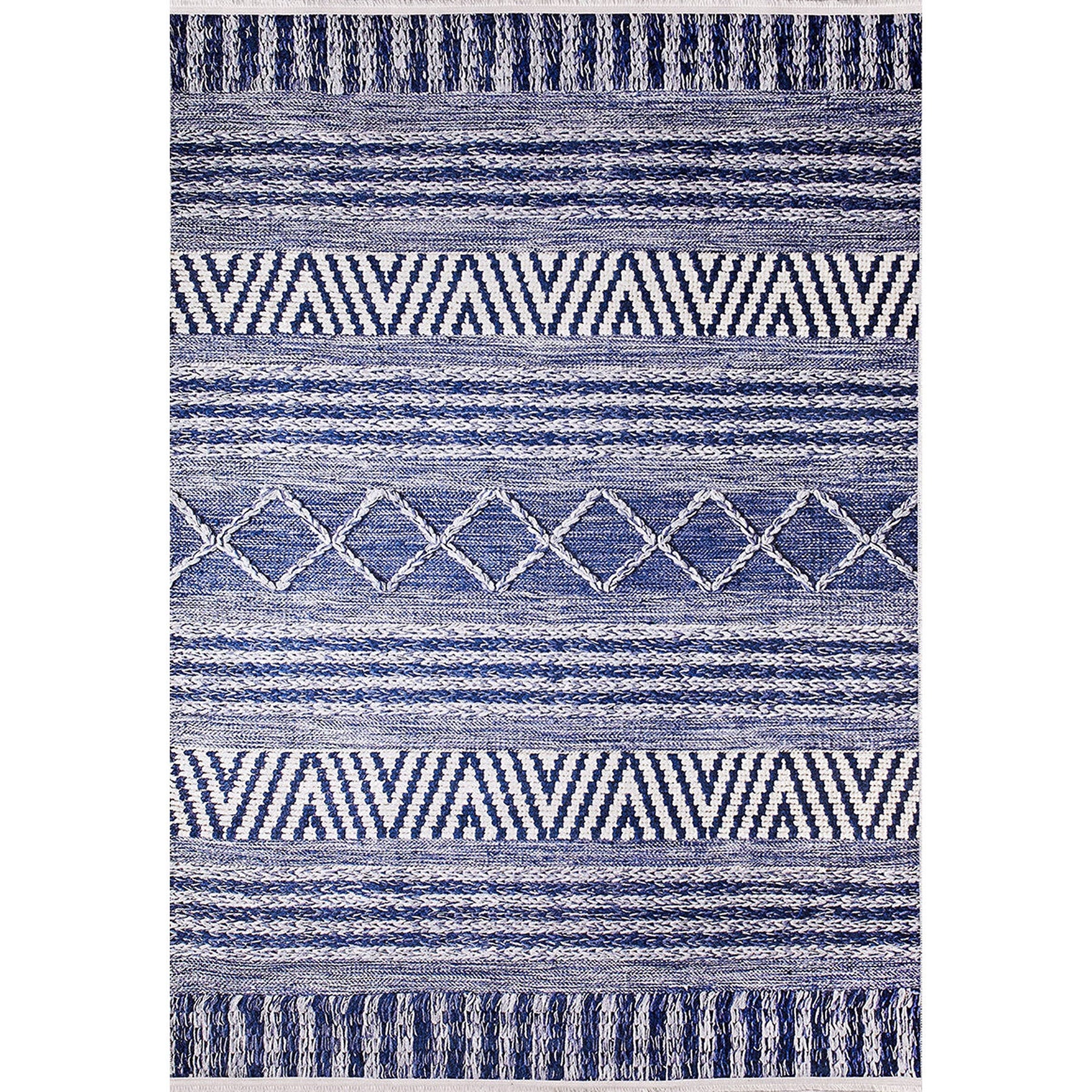 • There are fringes on the short sides of these rectangular rugs and on the two edges of the square rugs in accordance with the pattern. Round rugs do not have fringes.